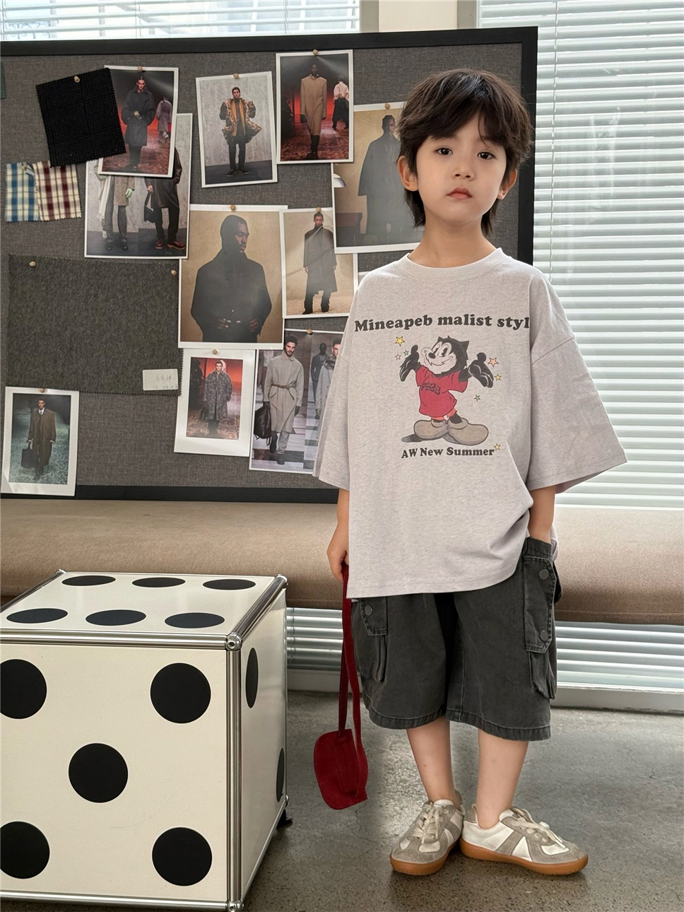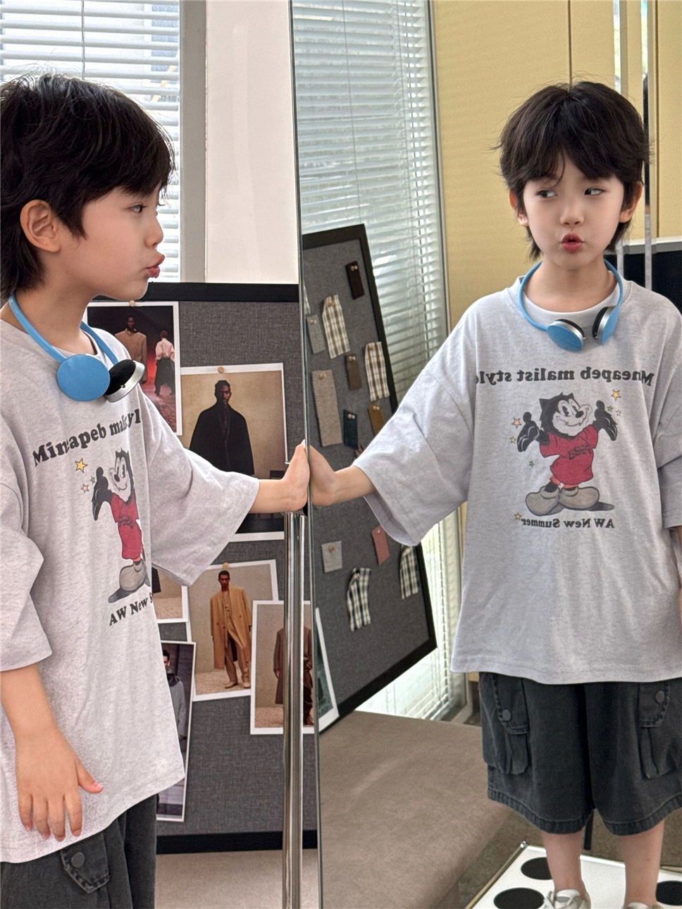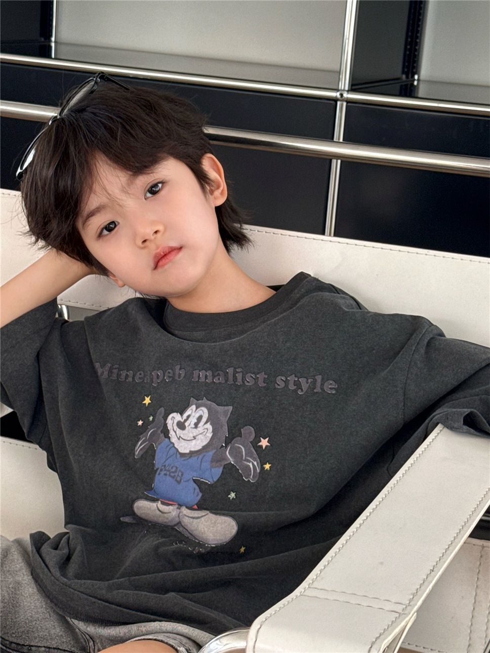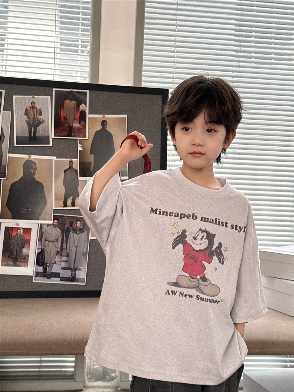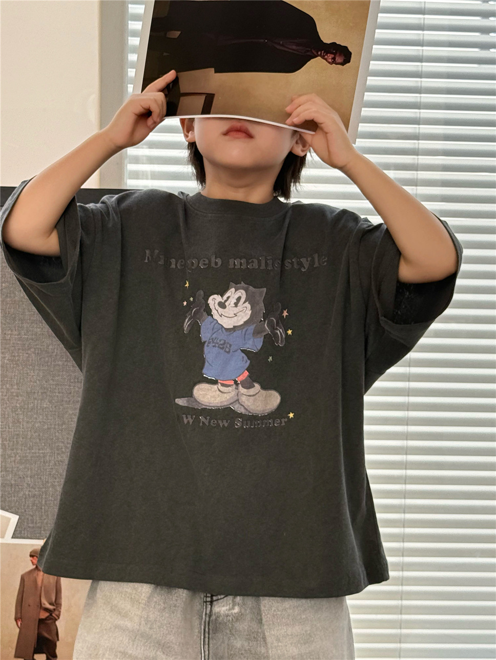キャラクタープリント半袖Tシャツは、可愛らしいデジタルカートゥーンのキャラクタープリントが目を引く半袖Tシャツです。韓国ファッションのトレンドを取り入れたゆったりとしたシルエットで、お子様の個性を際立たせます。