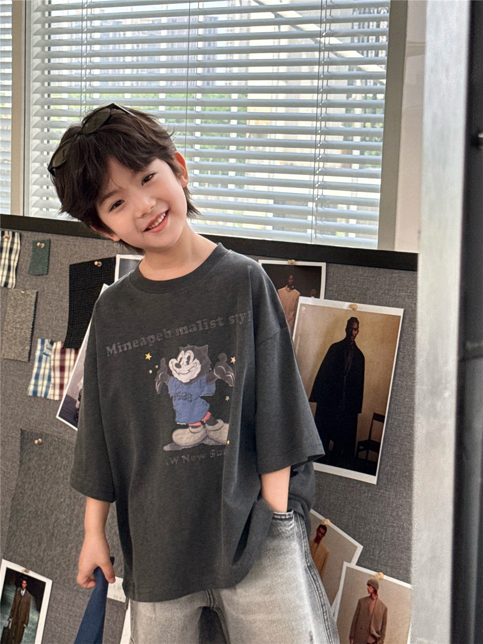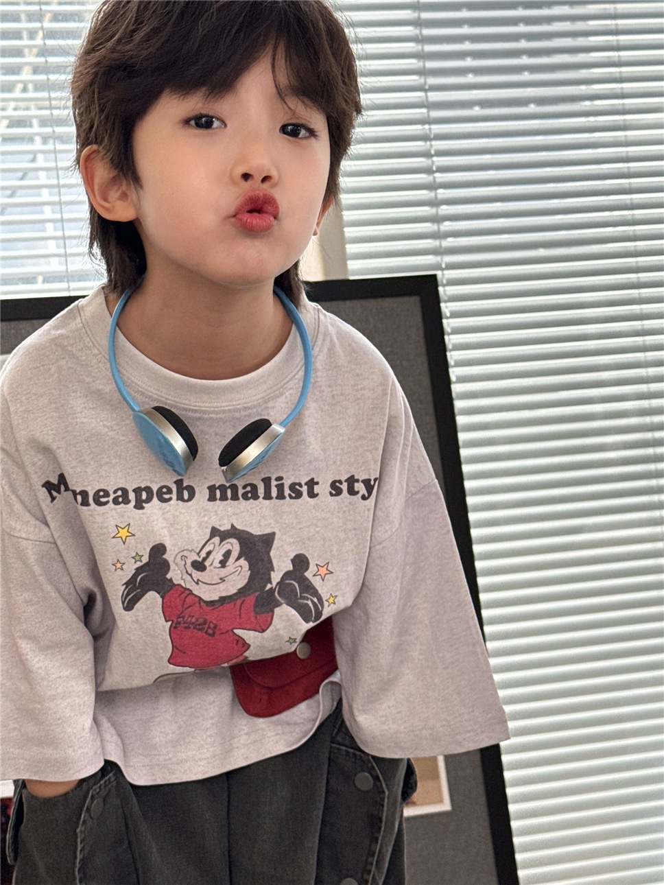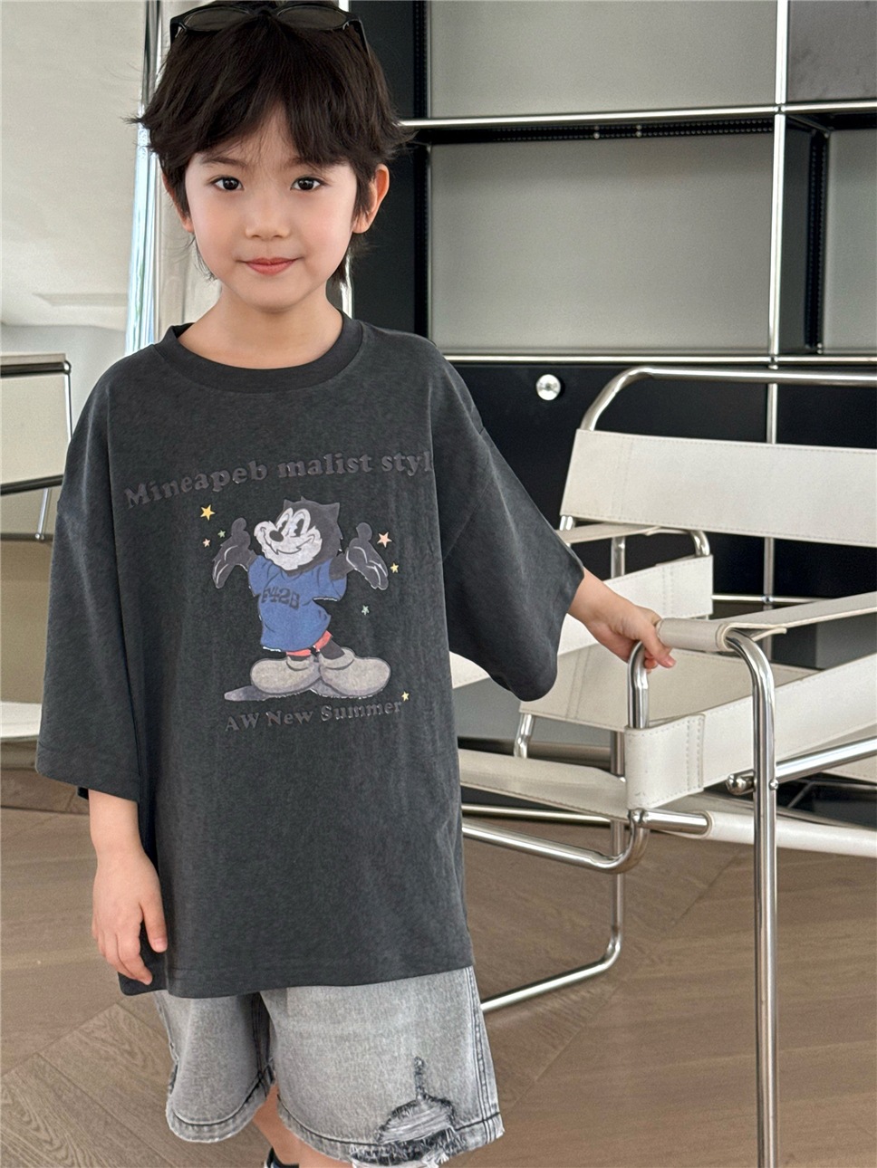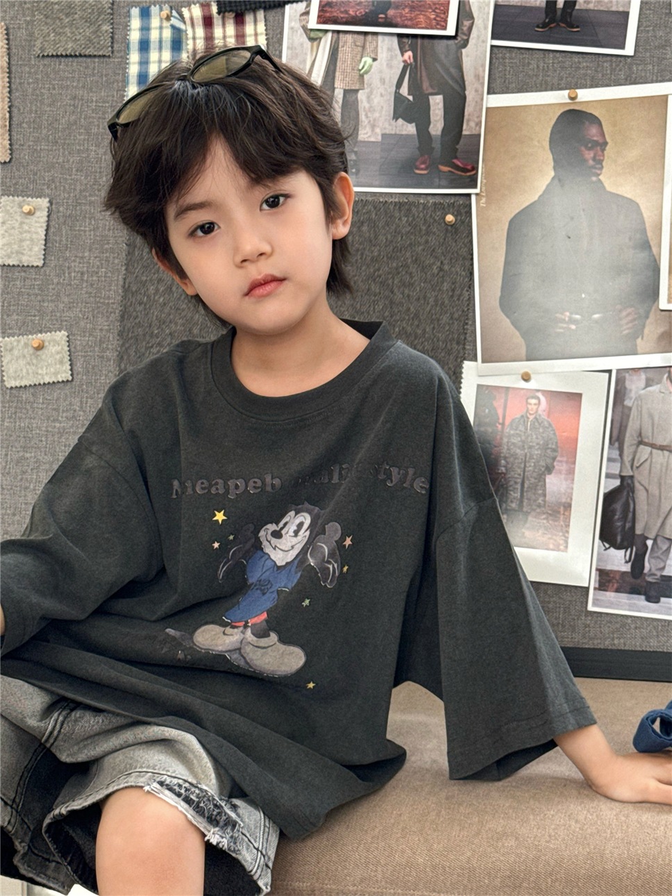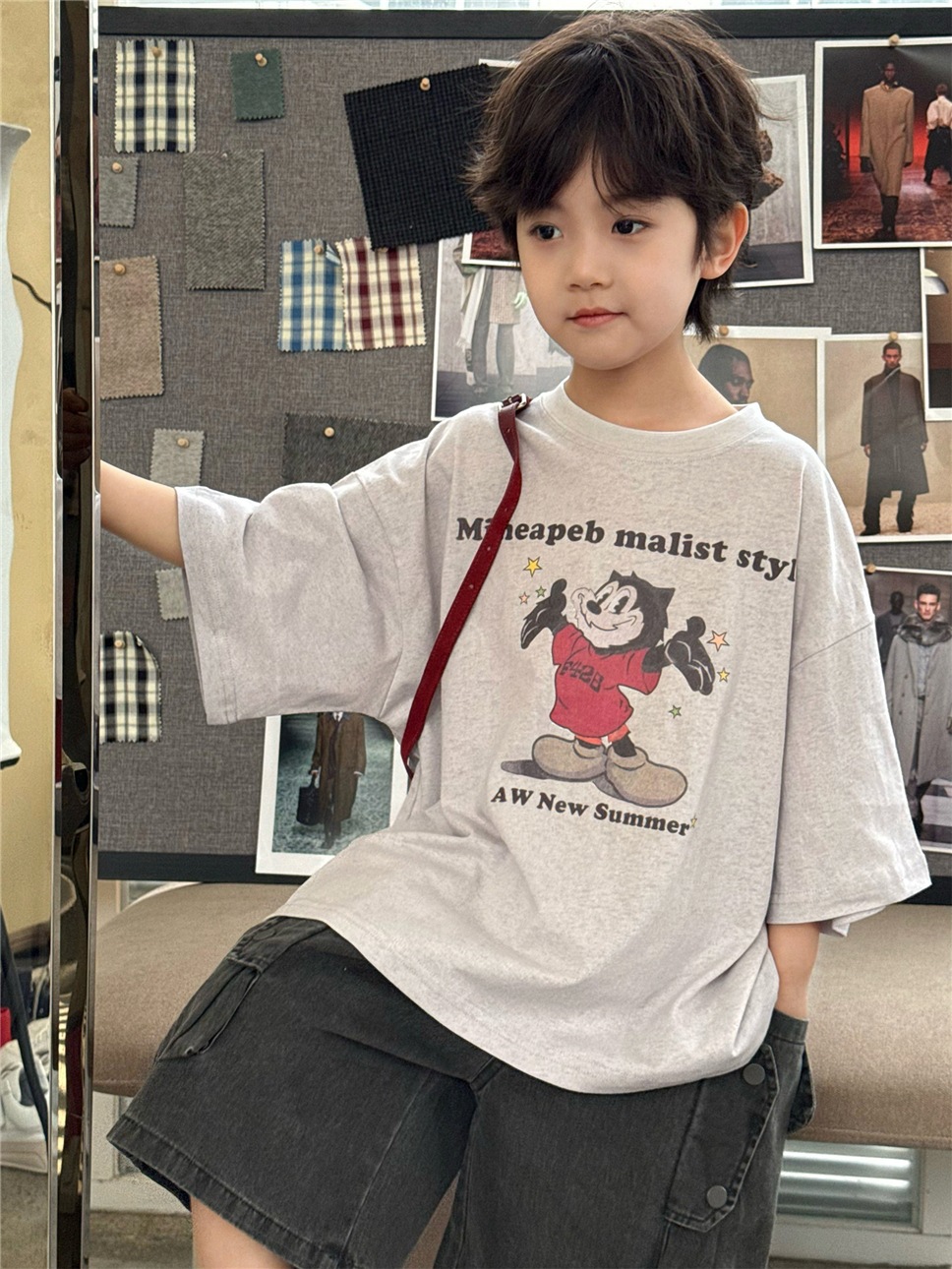 キャラクタープリント半袖Tシャツは、可愛らしいデジタルカートゥーンのキャラクタープリントが目を引く半袖Tシャツです。韓国ファッションのトレンドを取り入れたゆったりとしたシルエットで、お子様の個性を際立たせます。