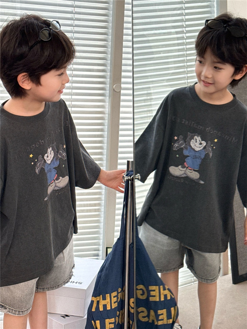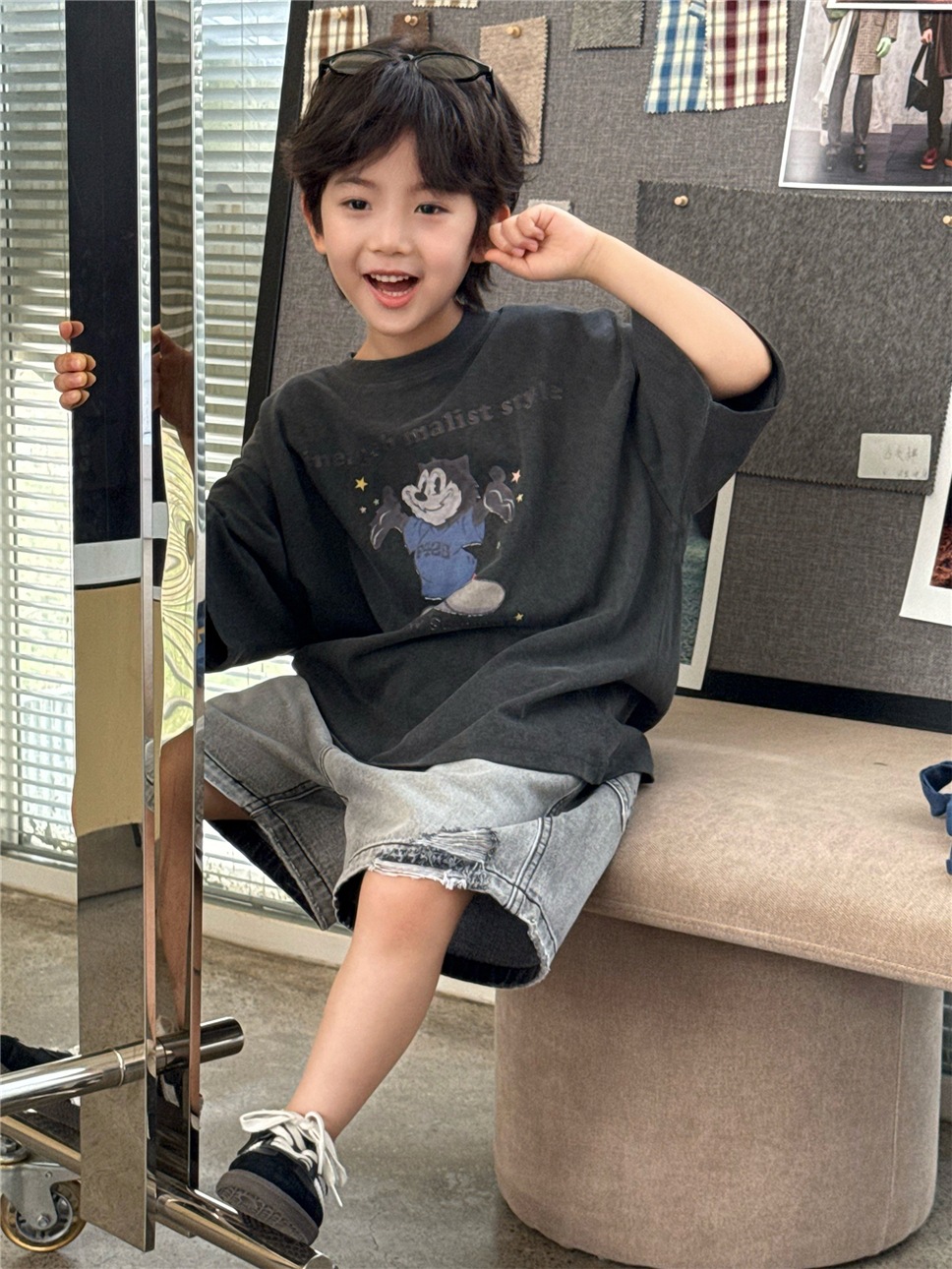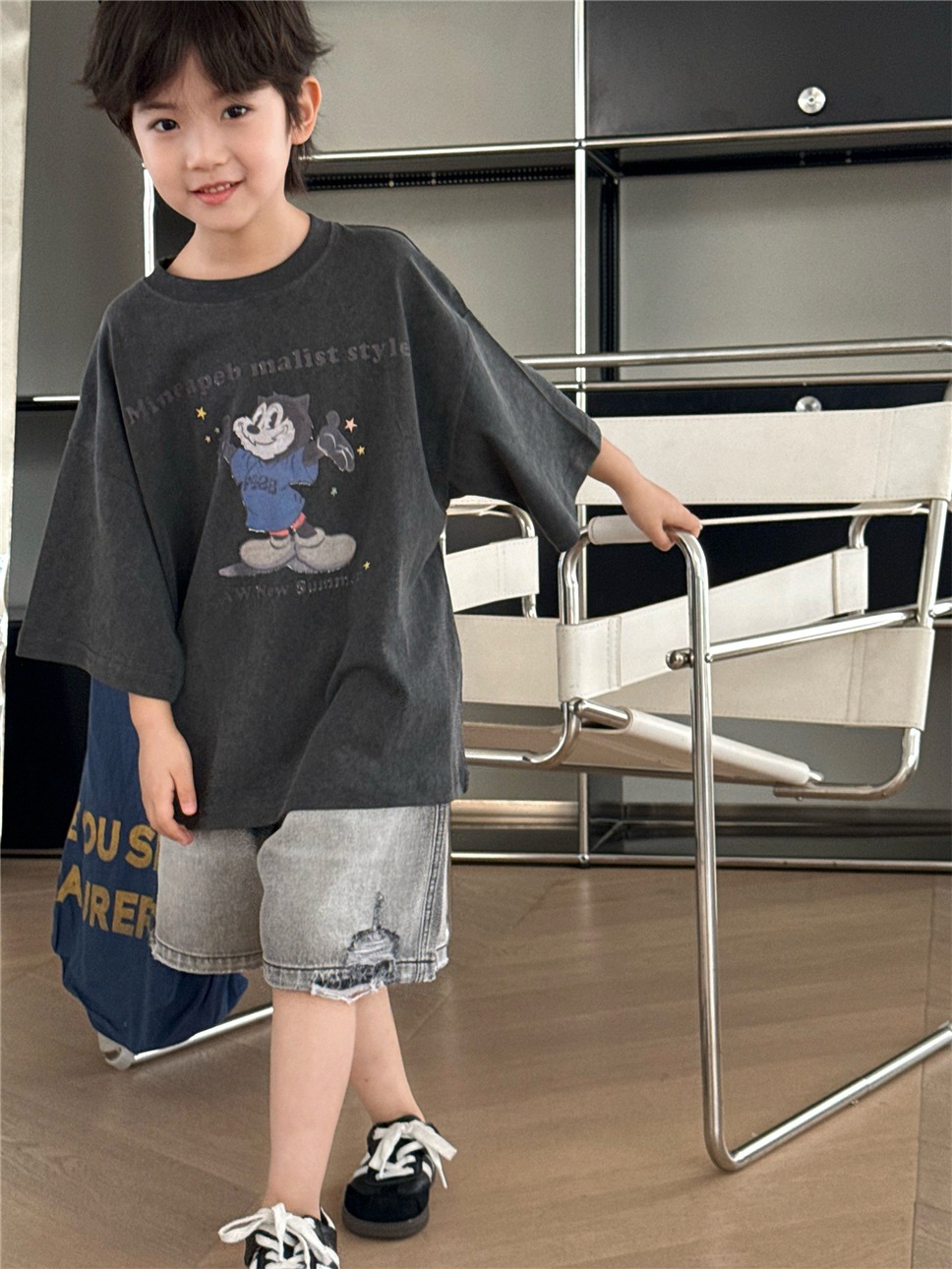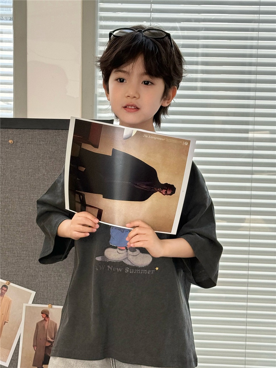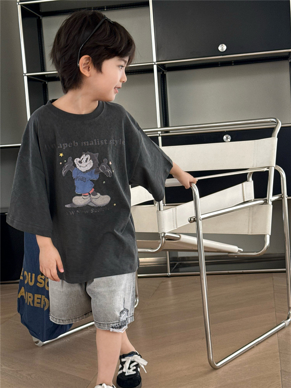 キャラクタープリント半袖Tシャツは、可愛らしいデジタルカートゥーンのキャラクタープリントが目を引く半袖Tシャツです。韓国ファッションのトレンドを取り入れたゆったりとしたシルエットで、お子様の個性を際立たせます。