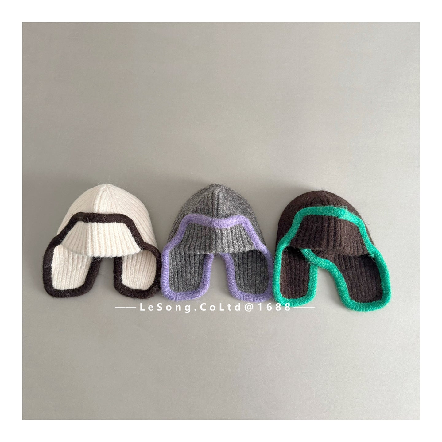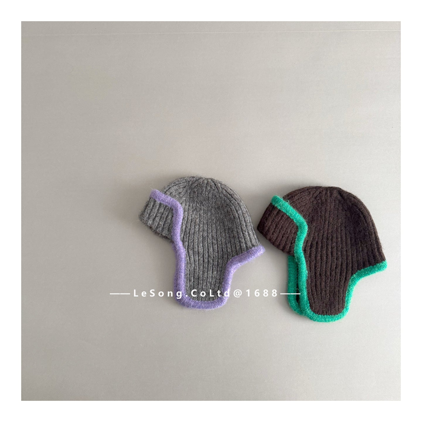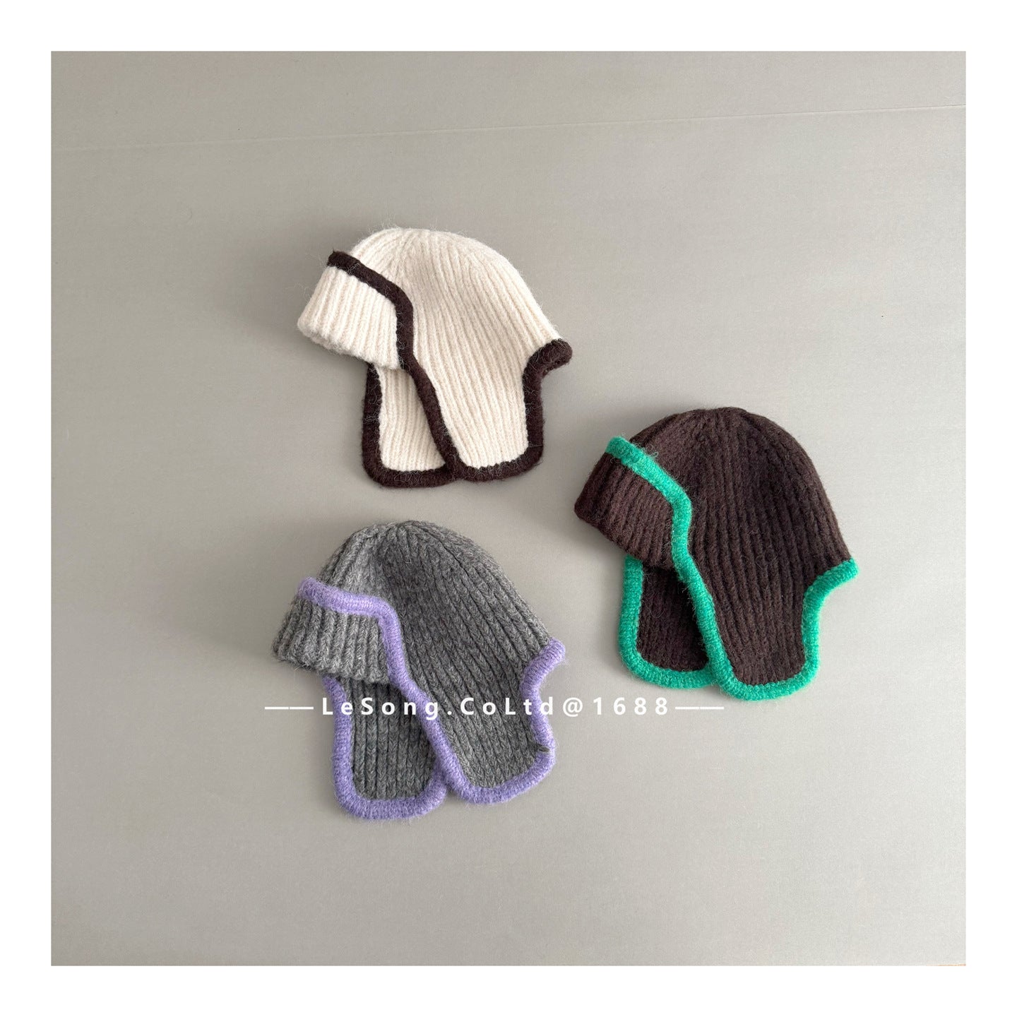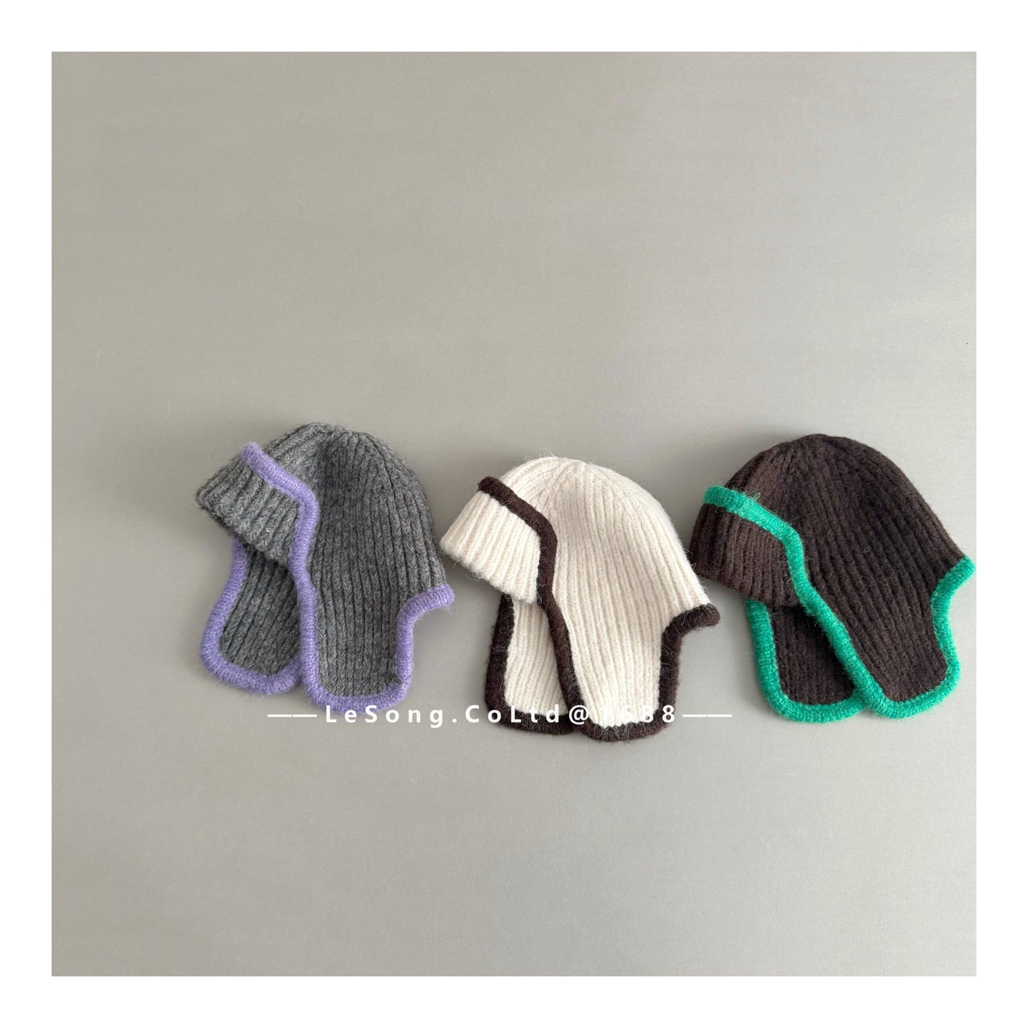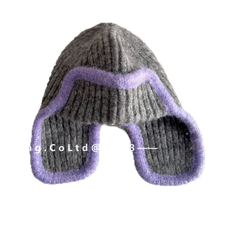 ジュニア ニット帽 バイカラーイピング 耳当て付き ビーニー 韓国風【mh0011594】