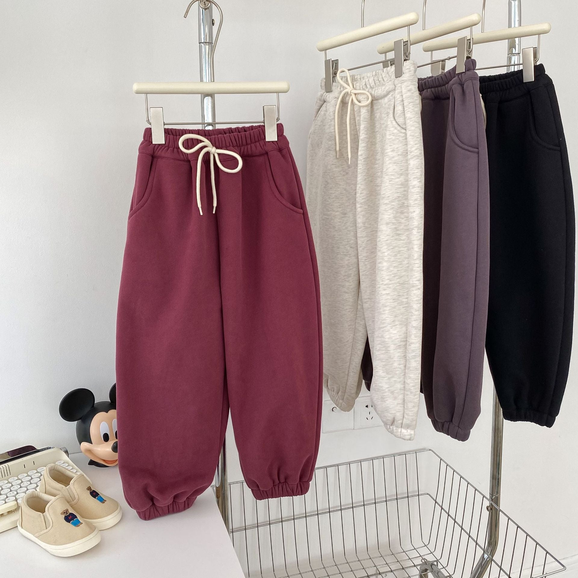 寒い季節に心地よい裏起毛が魅力のスウェットパンツは、お子様を暖かく包み込む厚手のジョガーパンツです。ゆったりとしたシルエットで動きやすく、活発なベビーやキッズのデイリーウェアとして最適なデザインです。ベーシックな色合いと洗練されたデザインは、どんなトップスにも合わせやすい着回し力を持ち、防寒対策をしながらおしゃれなカジュアルスタイルを完成させる温かいボトムスです。