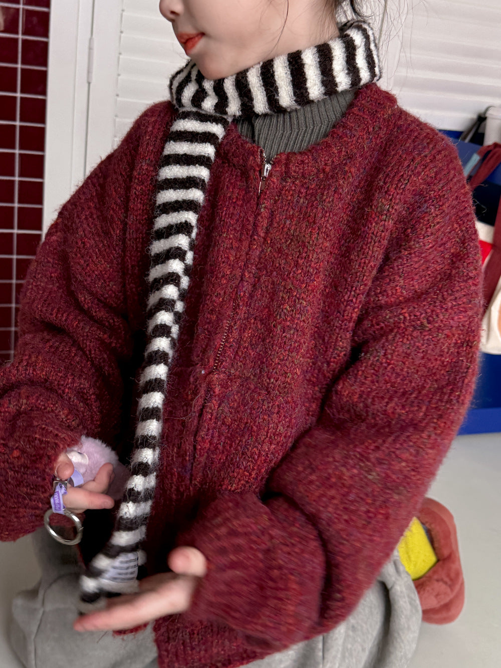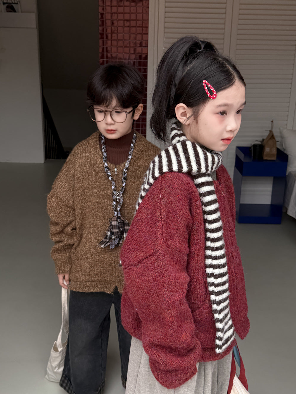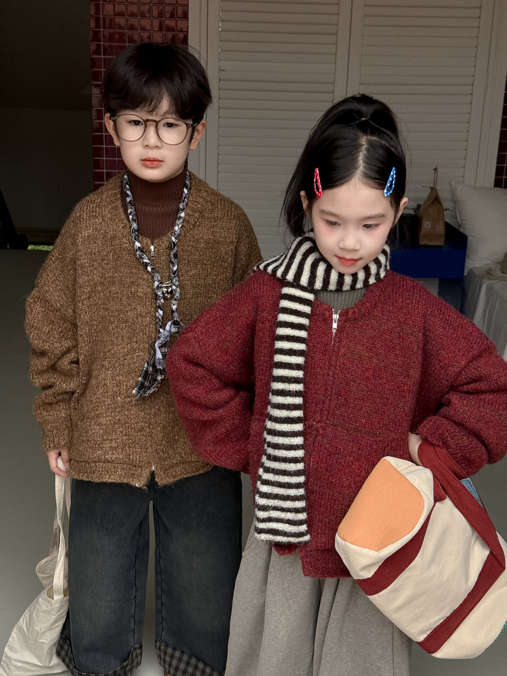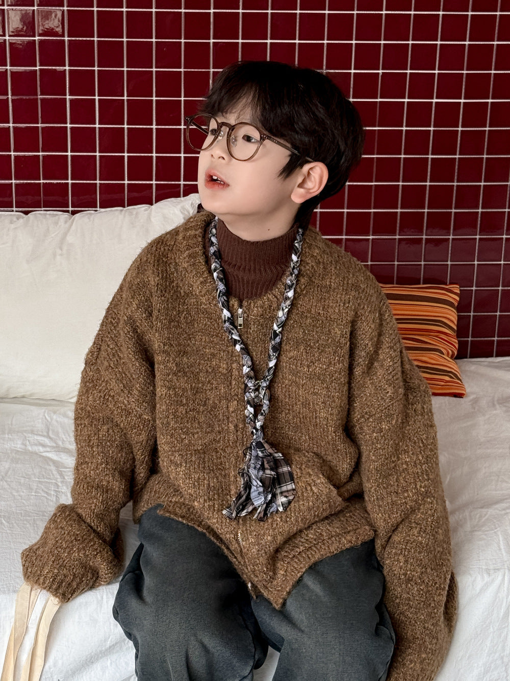 ニットカーディガン キッズ 裏起毛 厚手 無地 ジップアップ カジュアル【mh0011682】