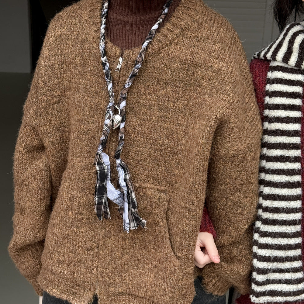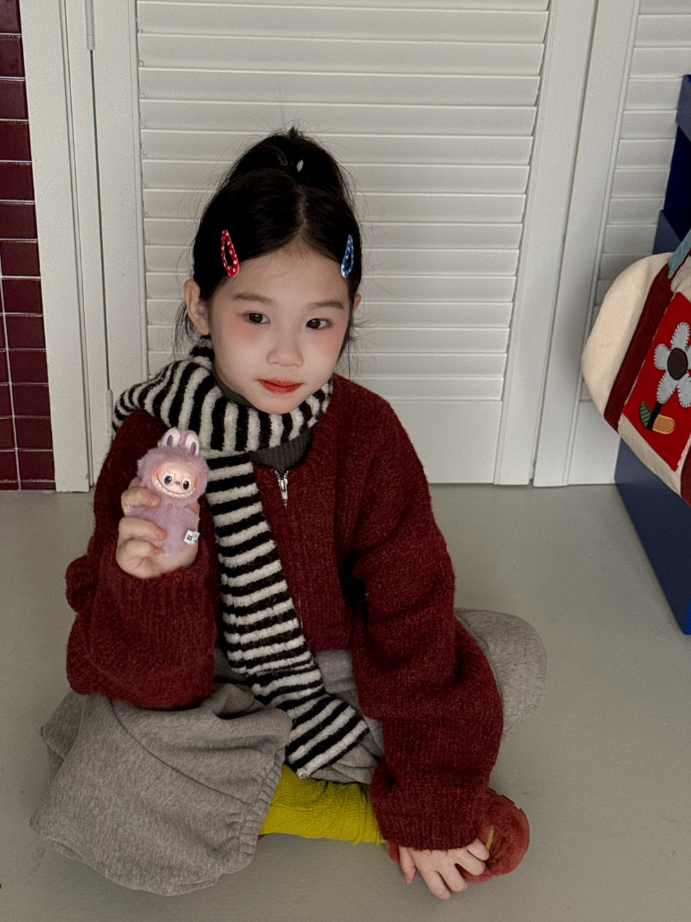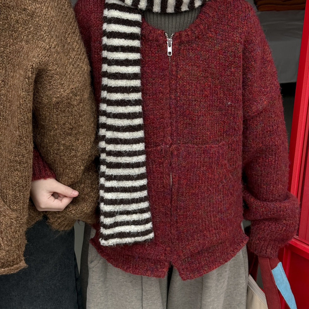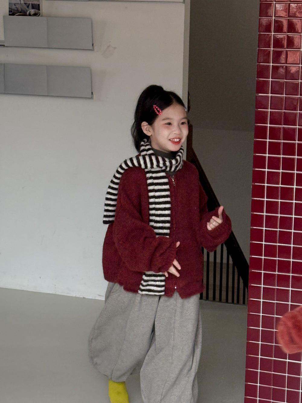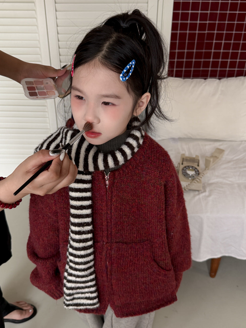 ニットカーディガン キッズ 裏起毛 厚手 無地 ジップアップ カジュアル【mh0011682】
