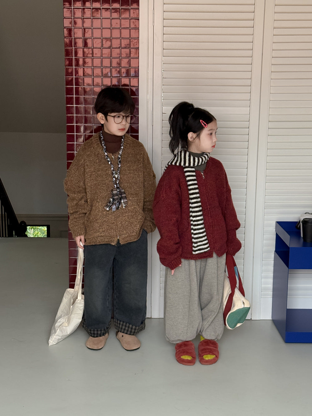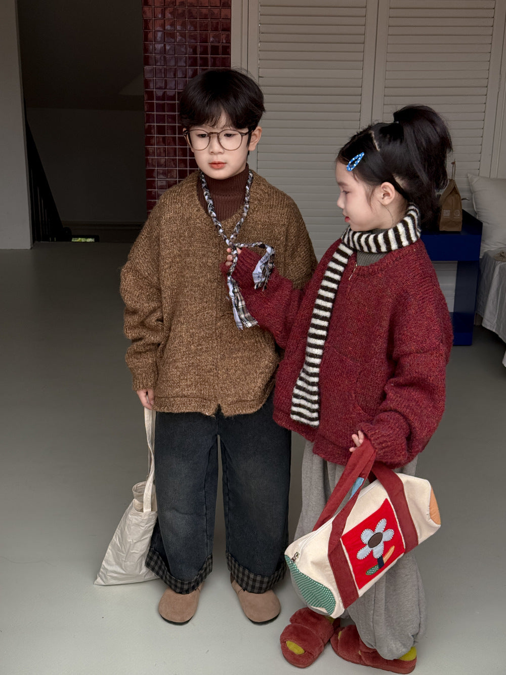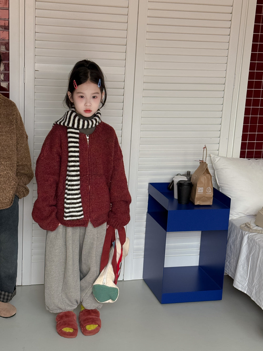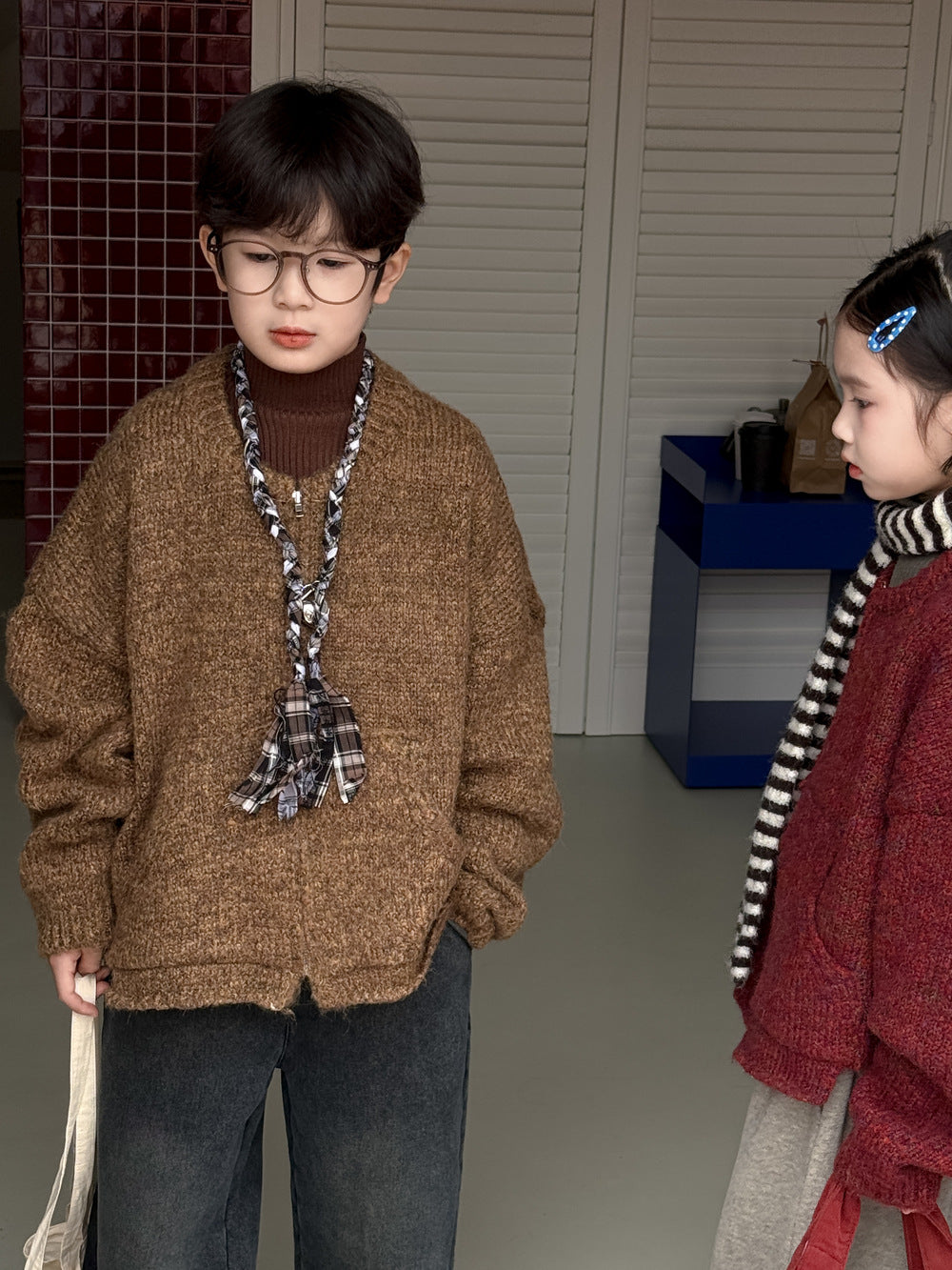 裏起毛素材で暖かく、肌触りの良いキッズ用ニットカーディガンです。シンプルな無地デザインとジップアップ仕様が、カジュアルながらもスタイリッシュな雰囲気を演出します。厚手のしっかりとした生地で、肌寒い日のアウターとしても活躍。クルーネックのデザインは、Tシャツやブラウスなど、どんなトップスとも合わせやすい万能な子ども服です。男の子にも女の子にもマッチするユニセックスなデザインで、デイリーユースに自然と馴染む一着です。
