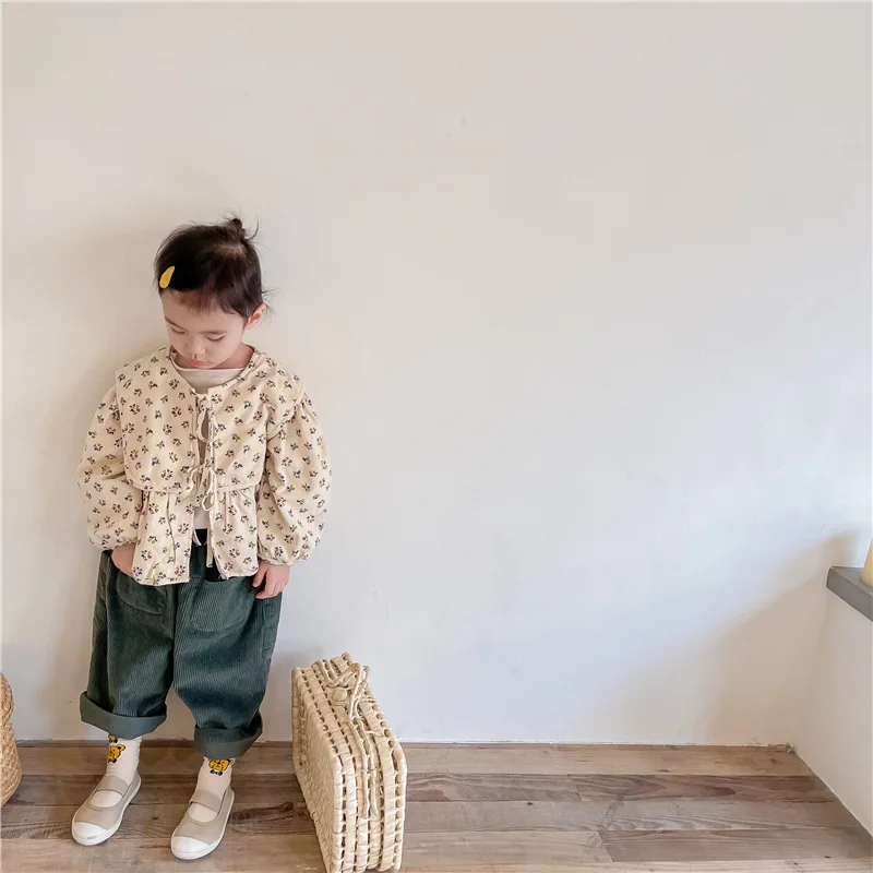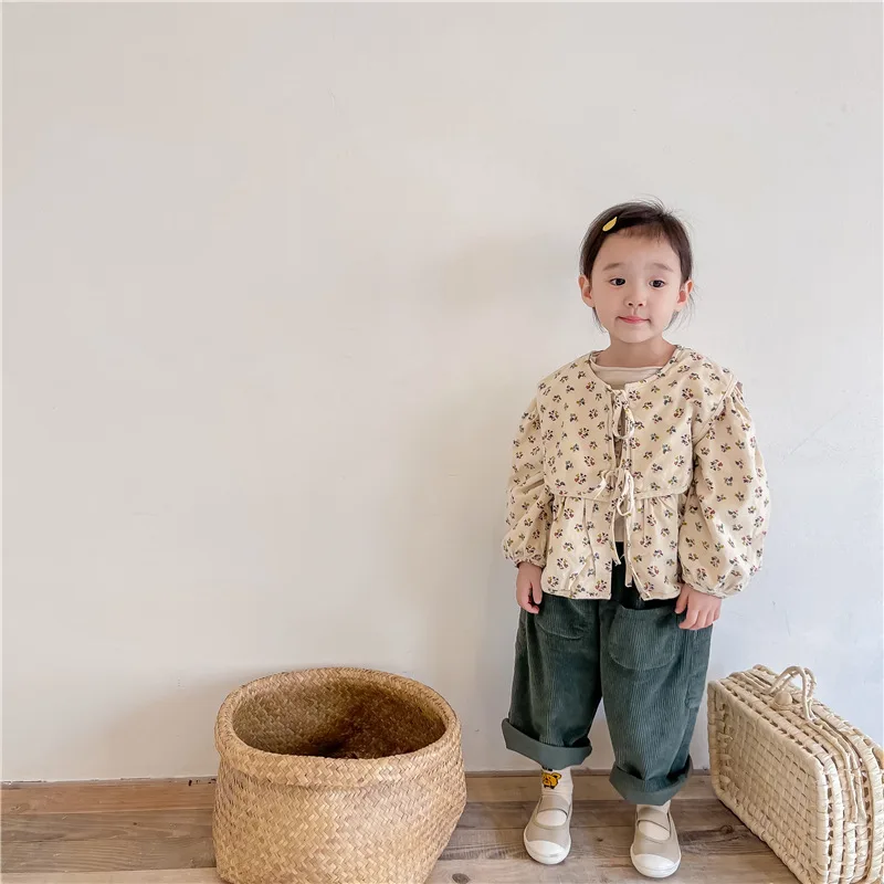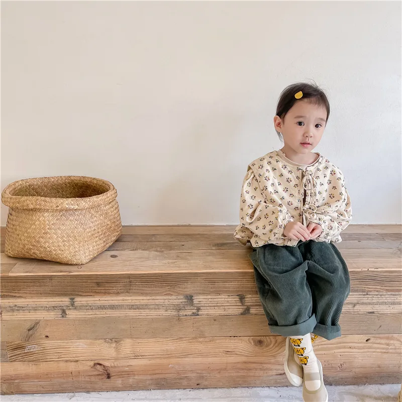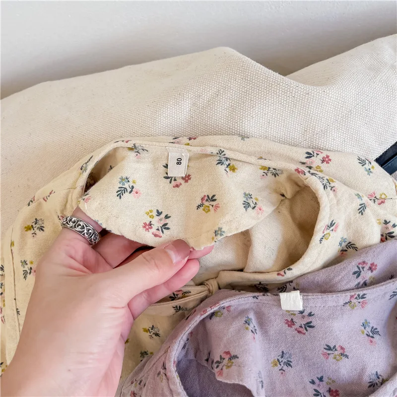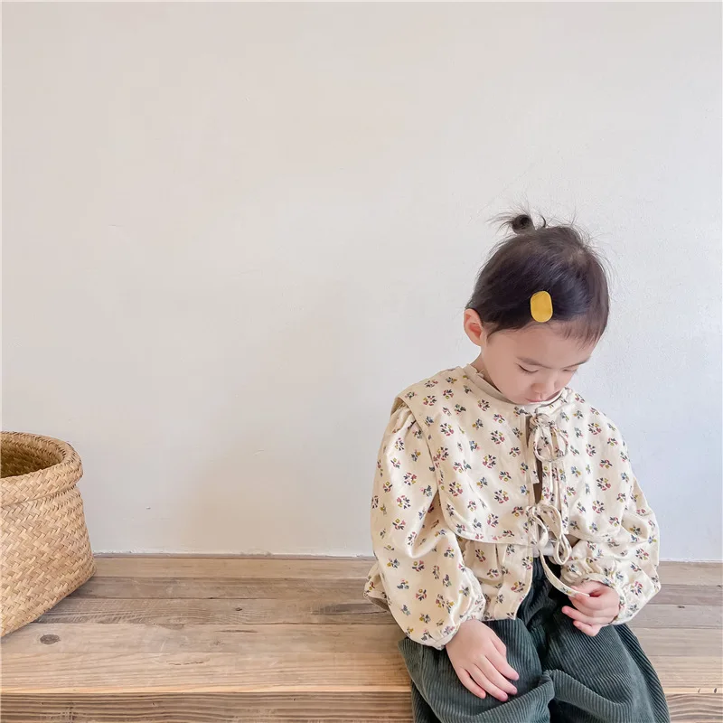 キッズ服 長袖 ブラウス シャツ カーディガン ジャケット フラワー 花柄 ビッグ襟 ベージュ 紫 2色 女の子