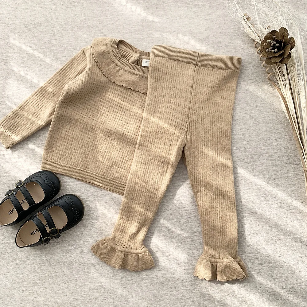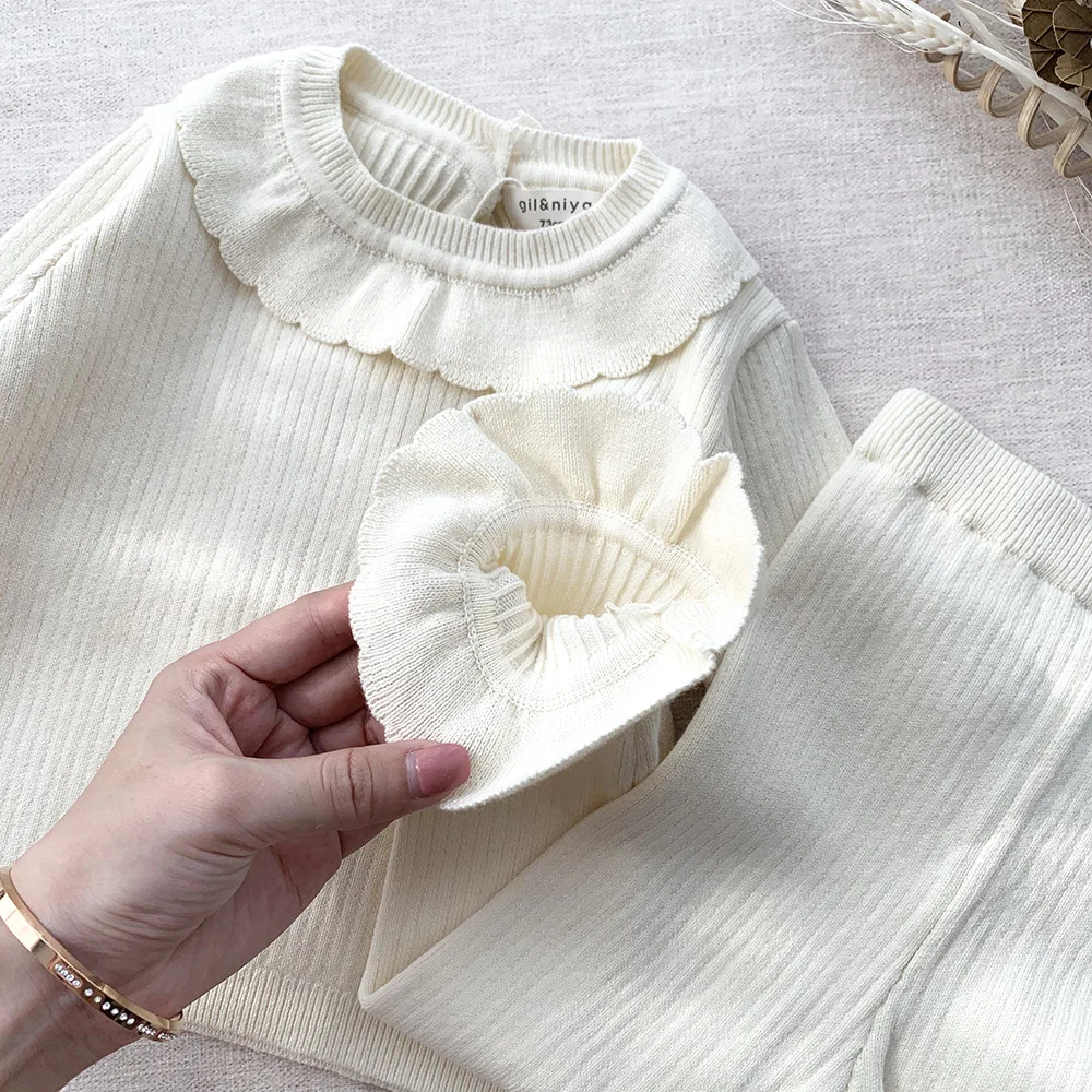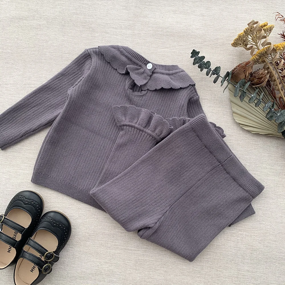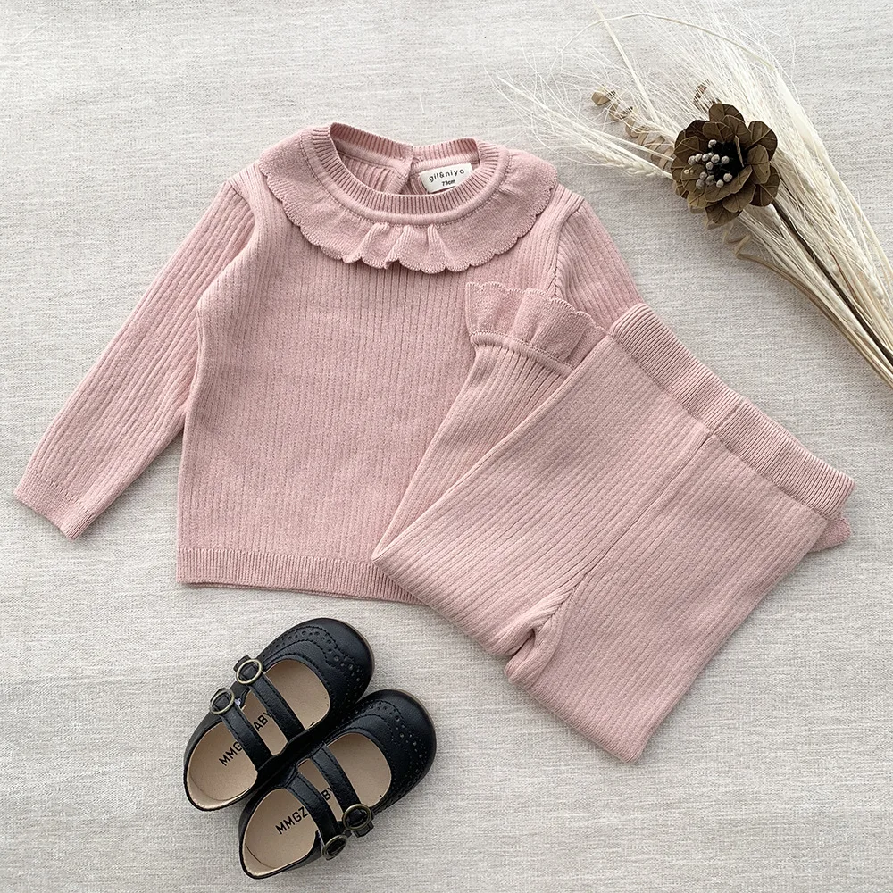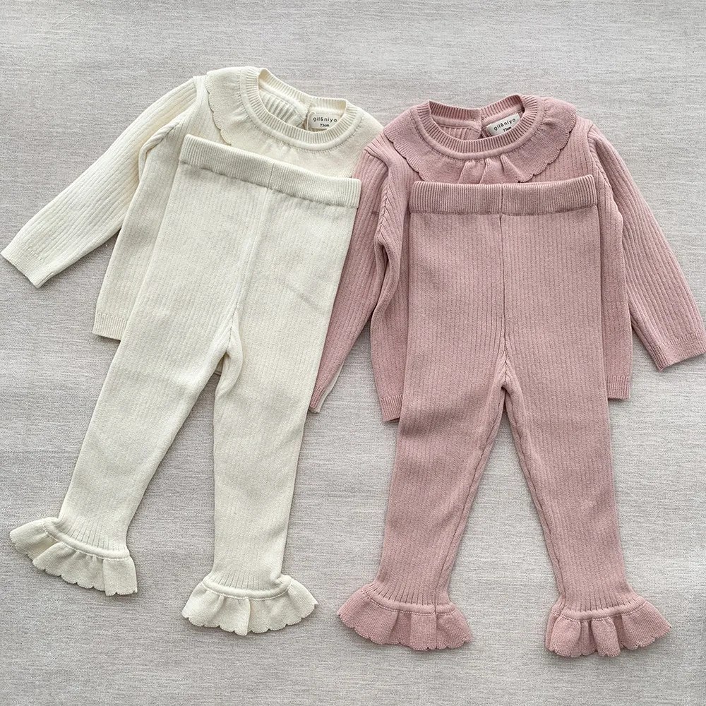 ベビー キッズ ニット セットアップ フリル セーター トップス パンツ 4カラー ガールズ