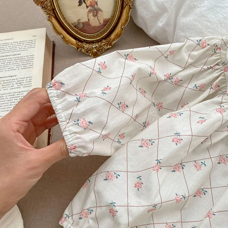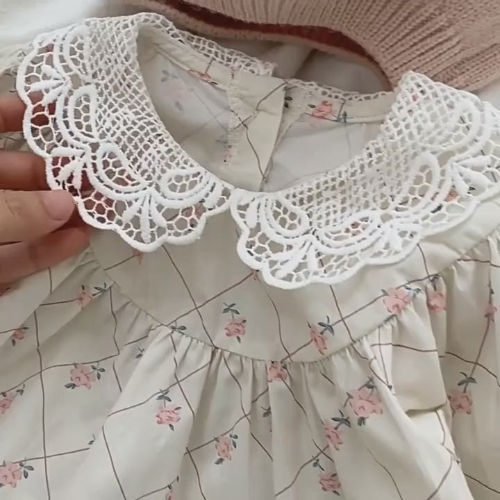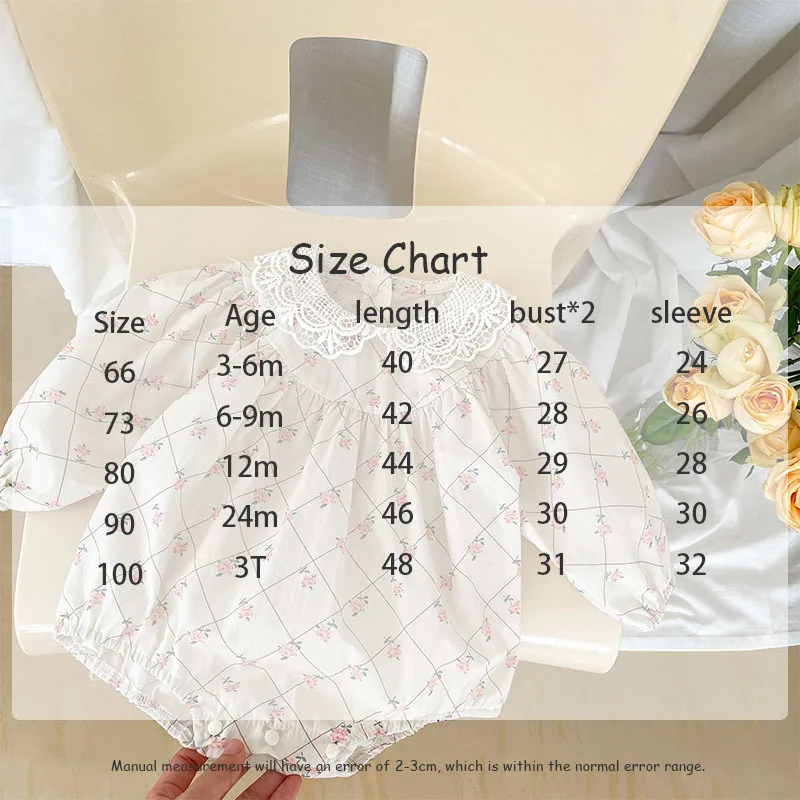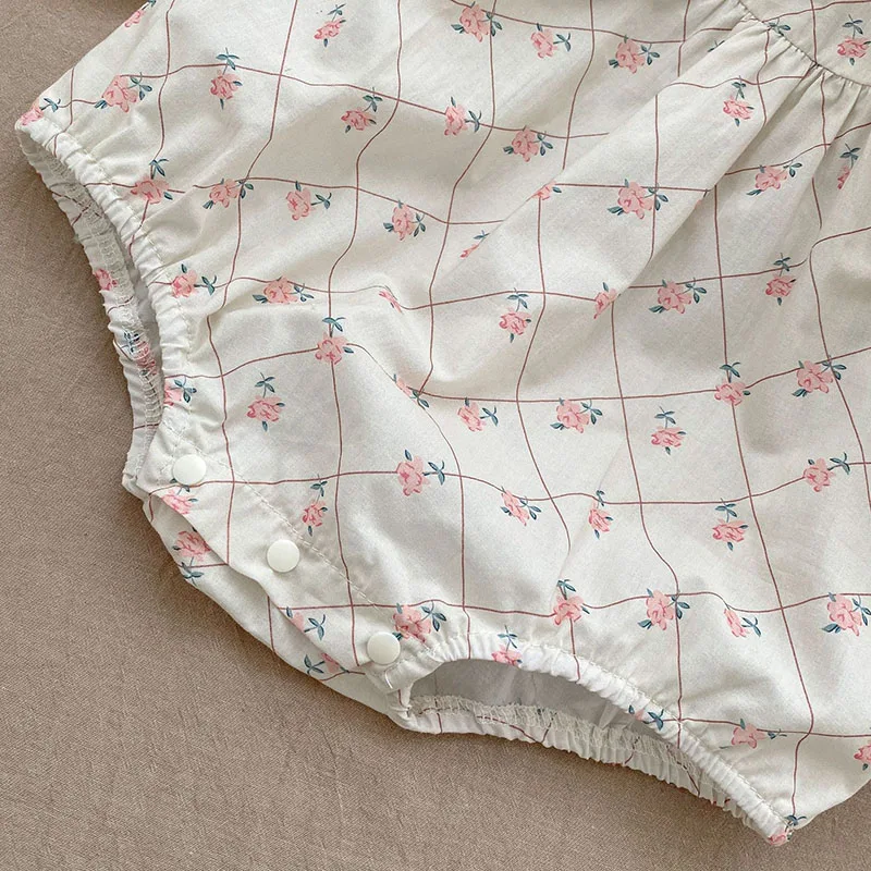 ベビー レース襟 フラワー チェック 長袖 ロンパース