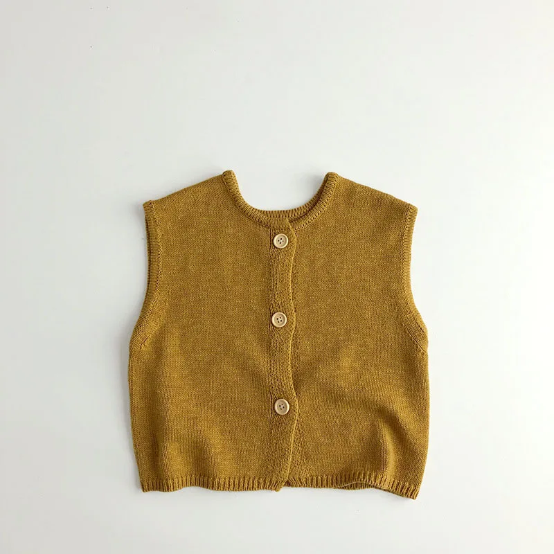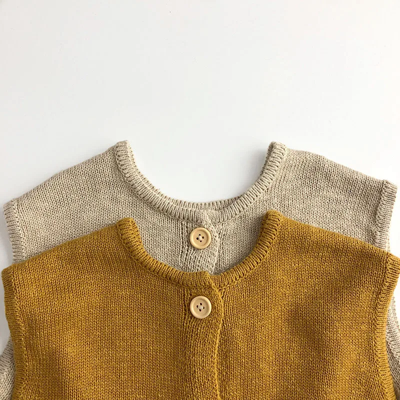 心地よい季節にぴったりな、キッズ向けのニットベストが新登場しました。シンプルでベーシックなデザインで、コーディネートのアクセントになること間違いなし。前あきのデザインがおしゃれさを引き立てます。ベージュとイエローの2カラーからお選びいただけます。