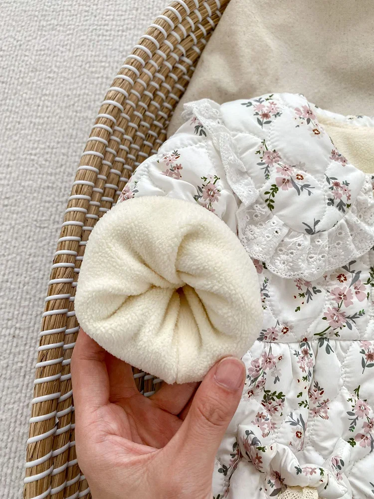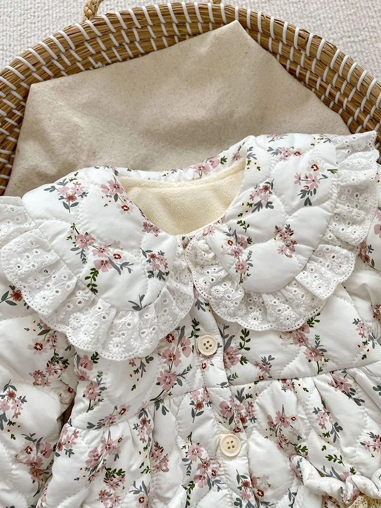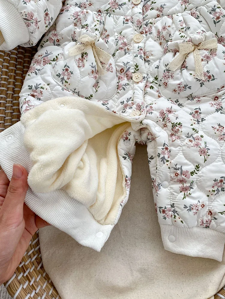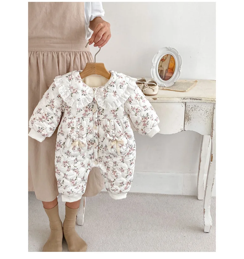 #子供服 #ベビーアウター #冬のおでかけ #可愛いジャンプスーツ #フラワープリント #優雅なガールズコーデ