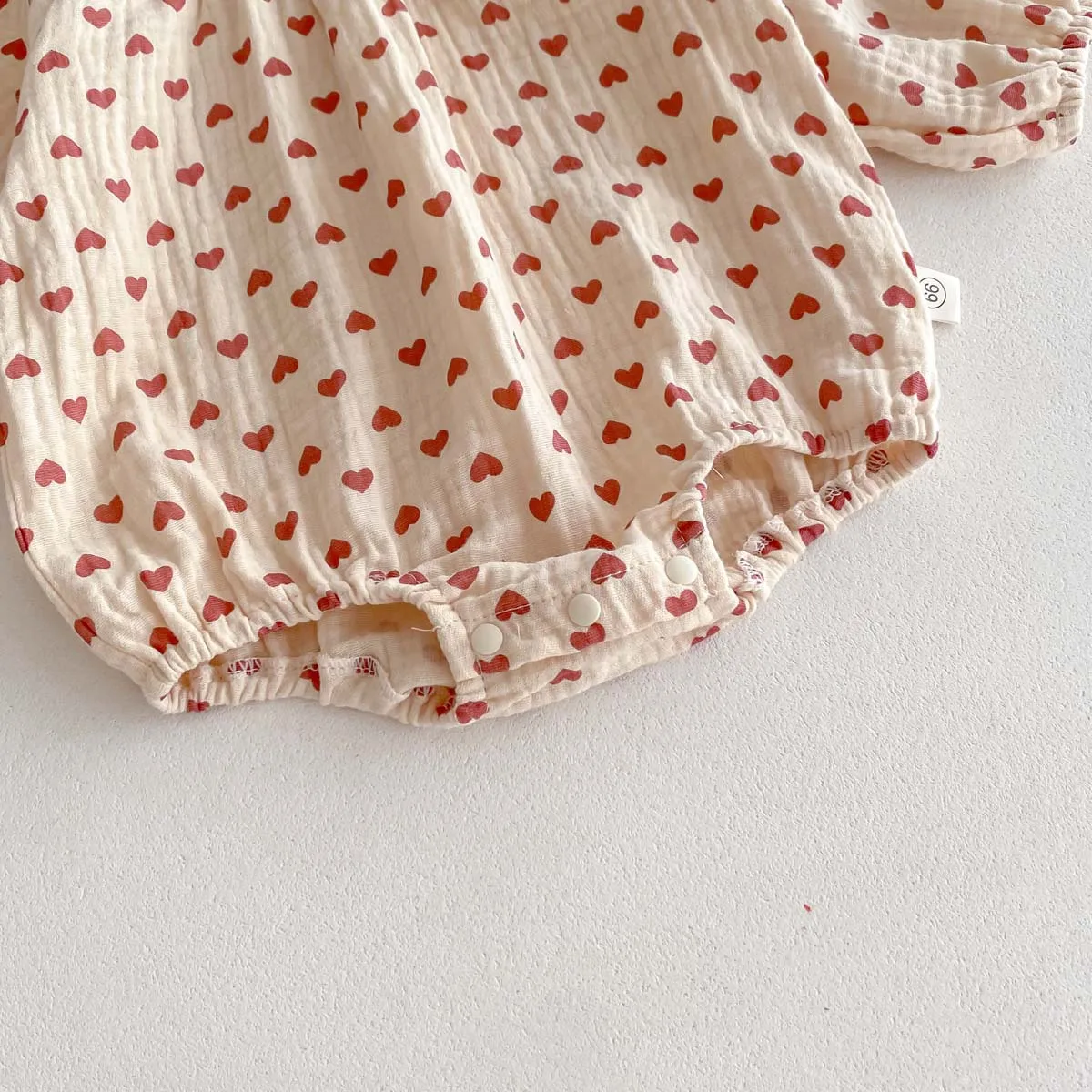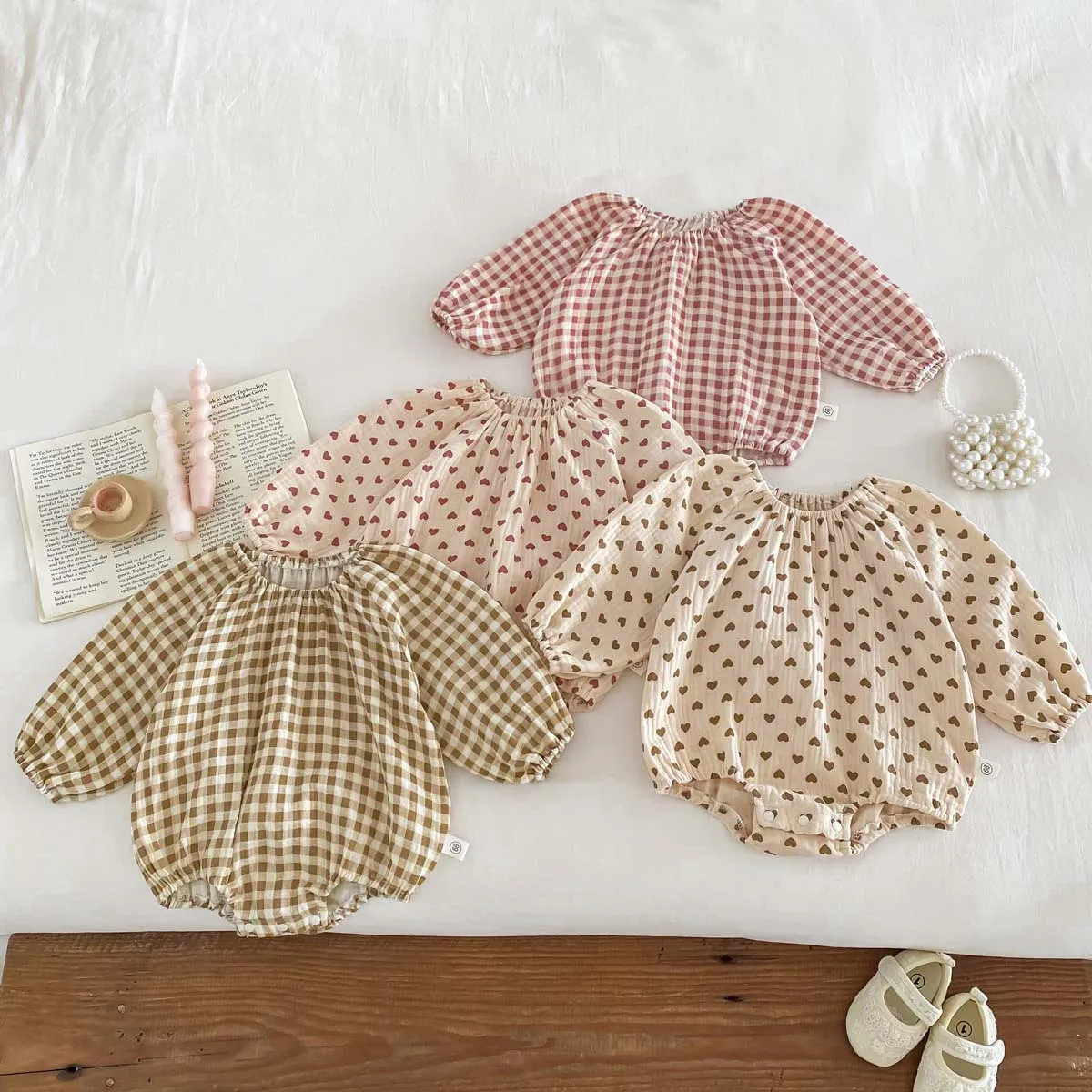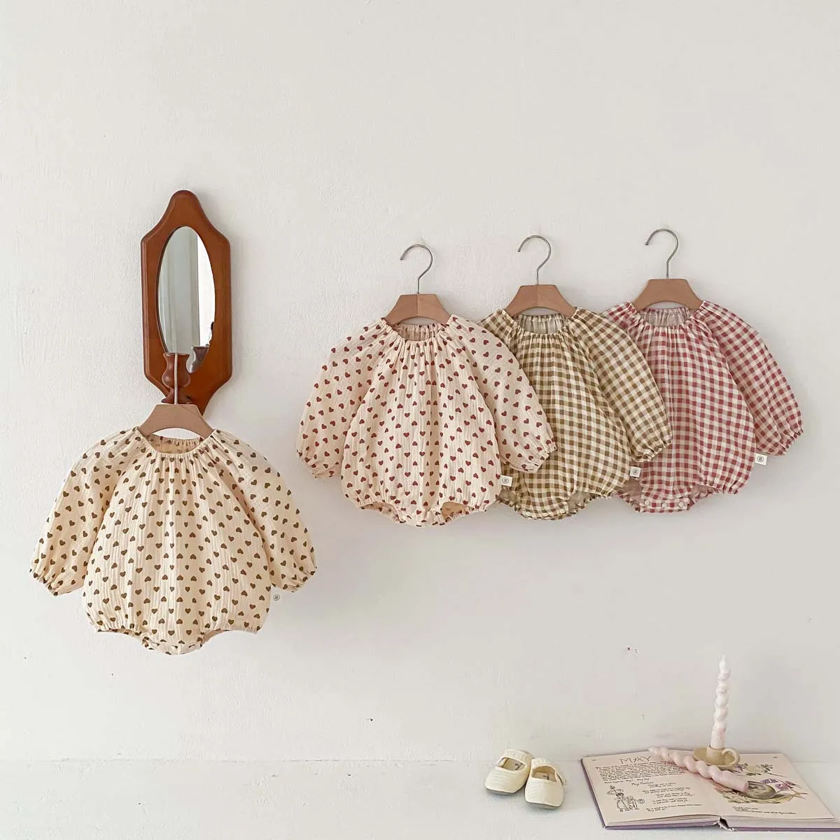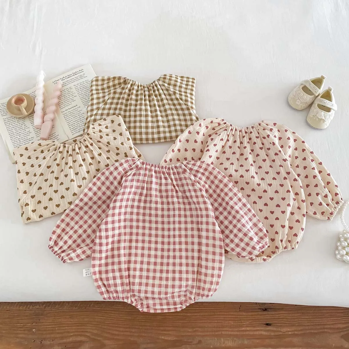 ベビーロンパース 長袖ルーズボディスーツ ハート チェックプリント柄【mh0004240】