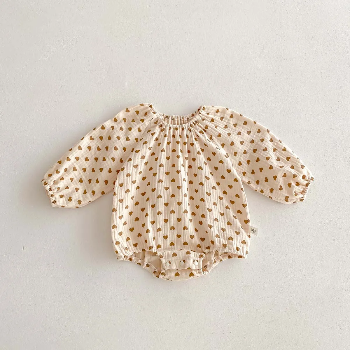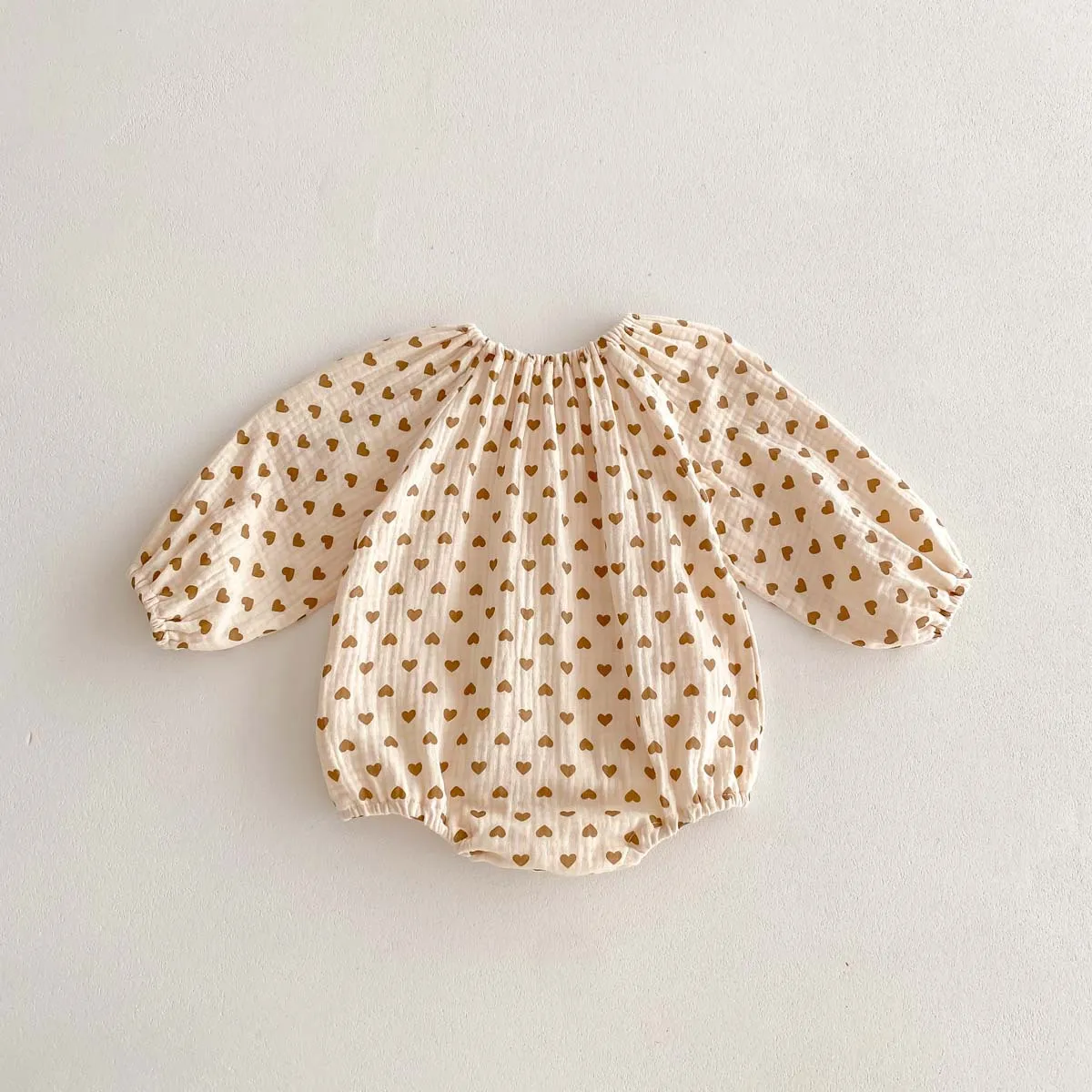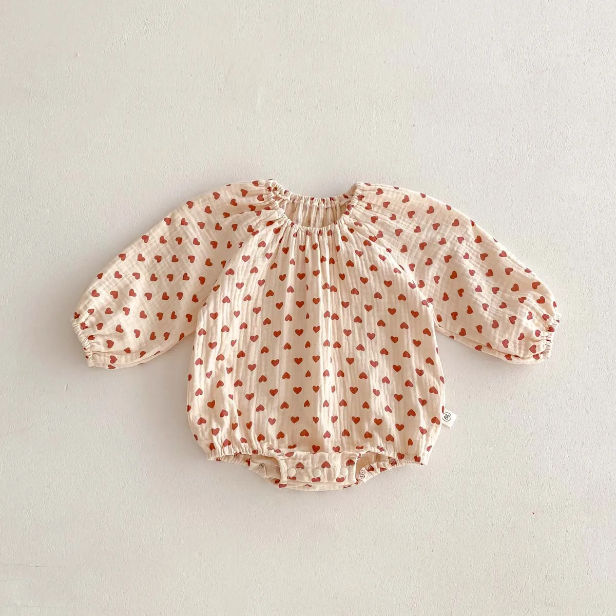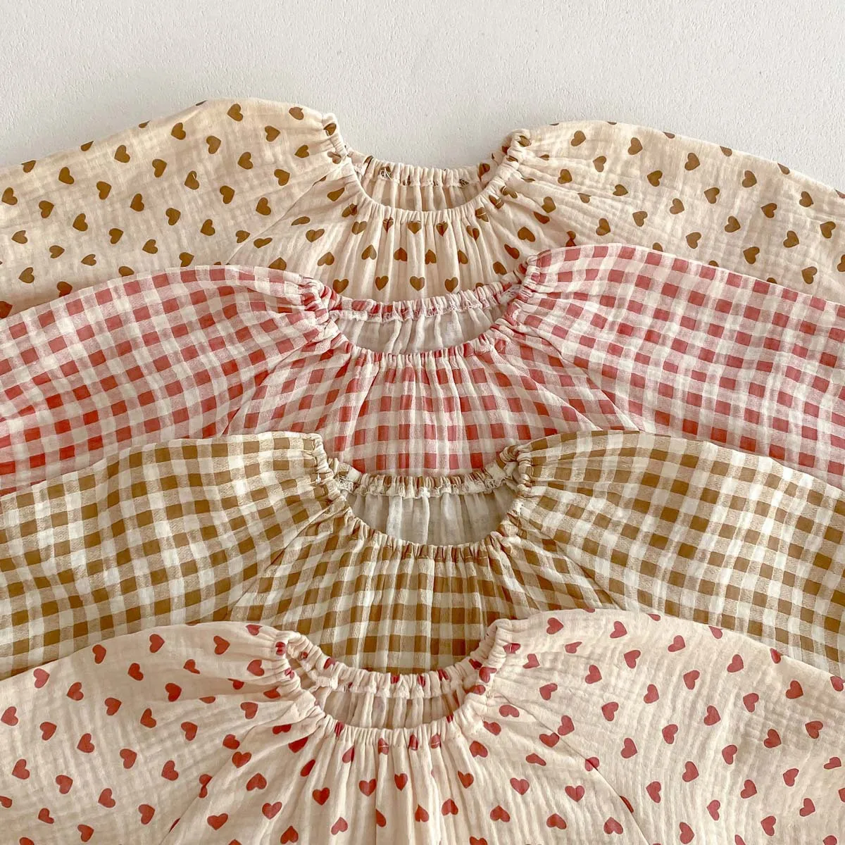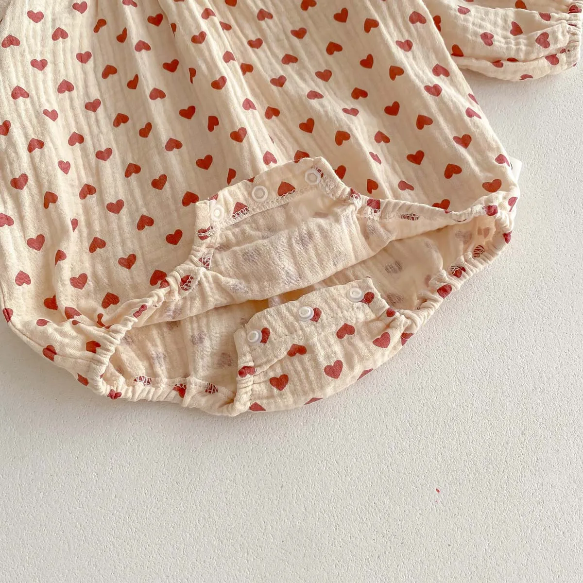 ベビーロンパース 長袖ルーズボディスーツ ハート チェックプリント柄【mh0004240】