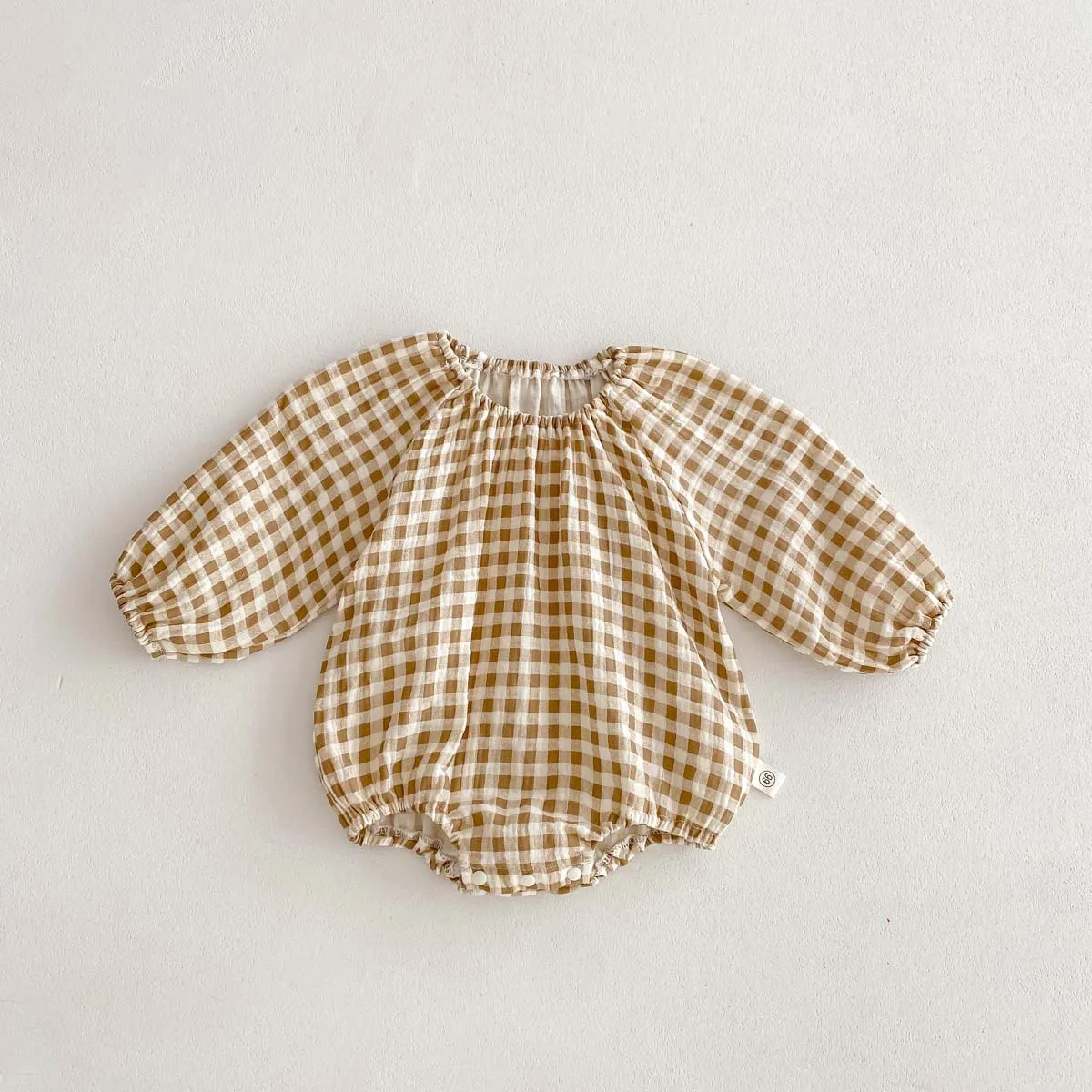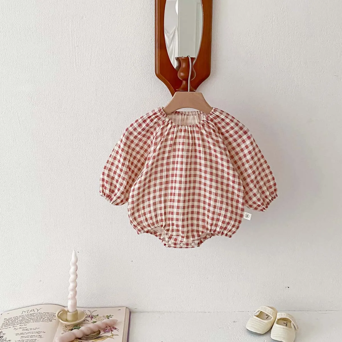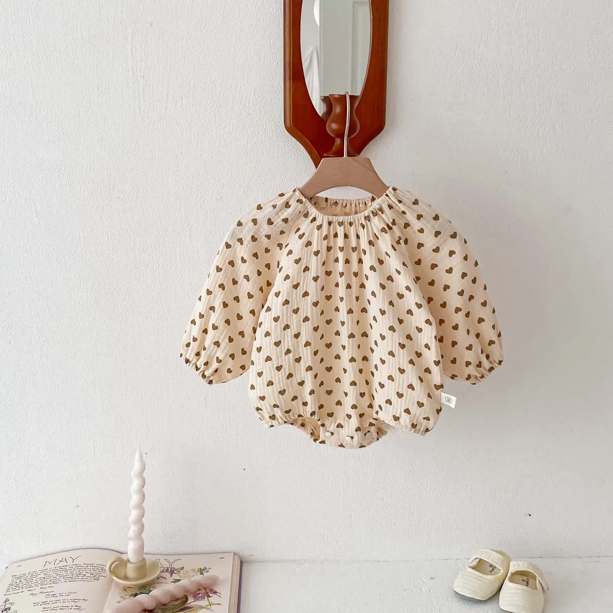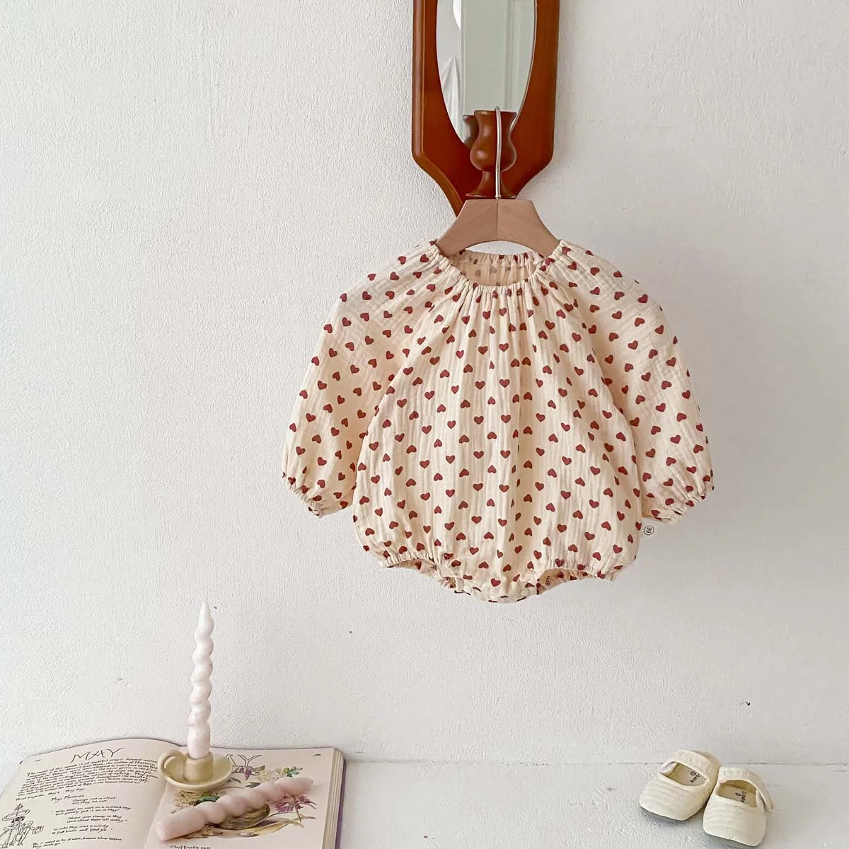 ベビーロンパース 長袖ルーズボディスーツ ハート チェックプリント柄【mh0004240】