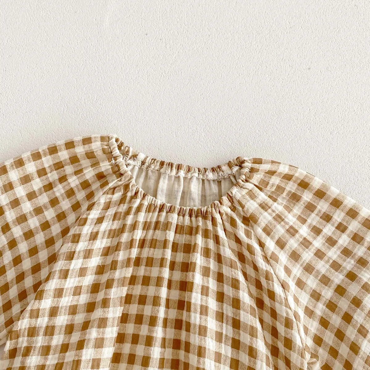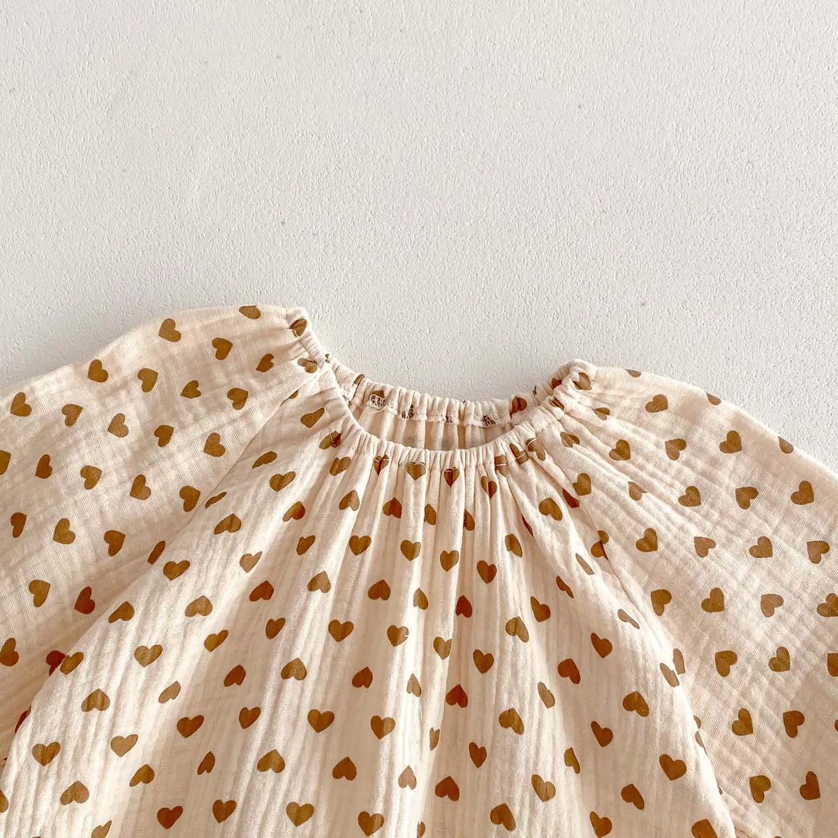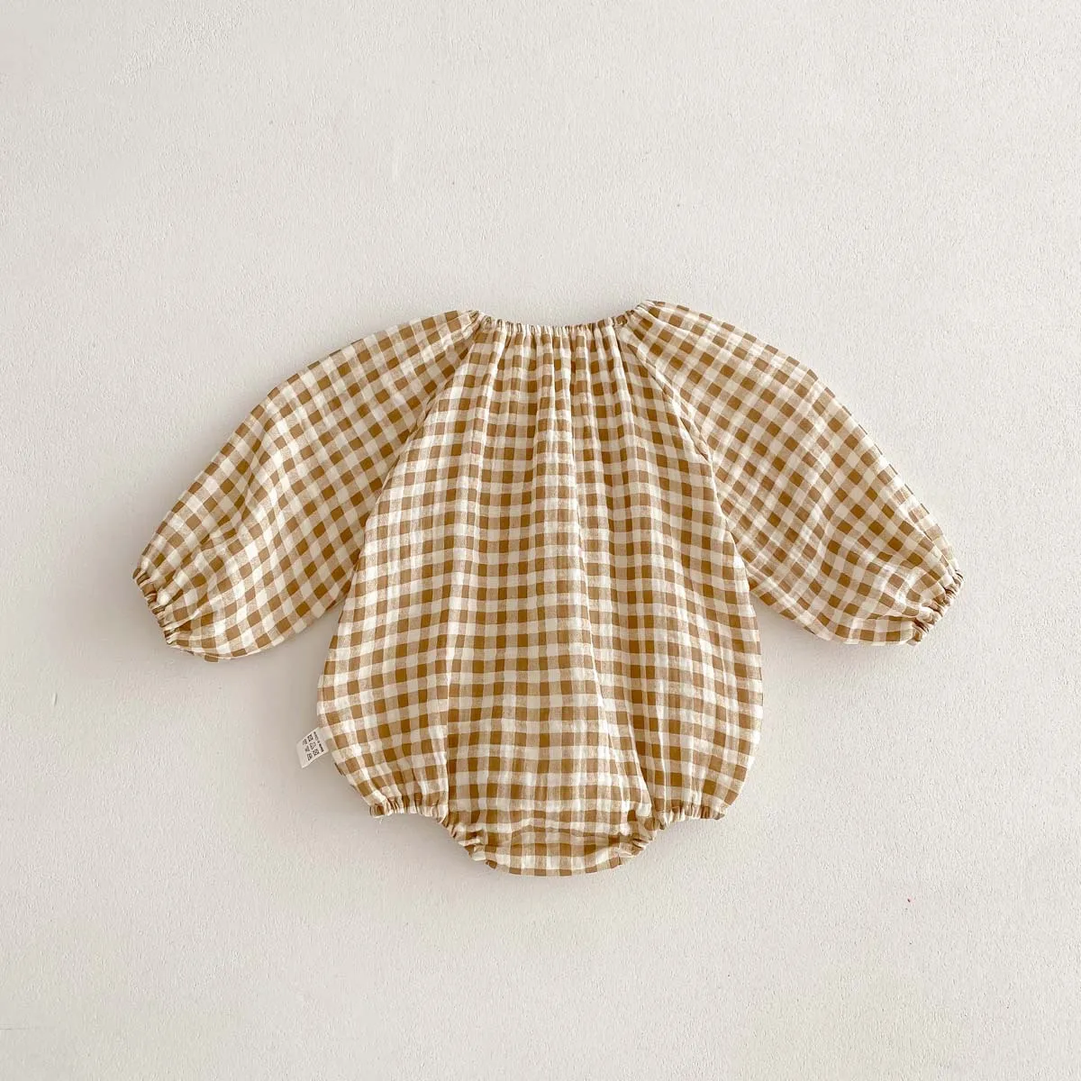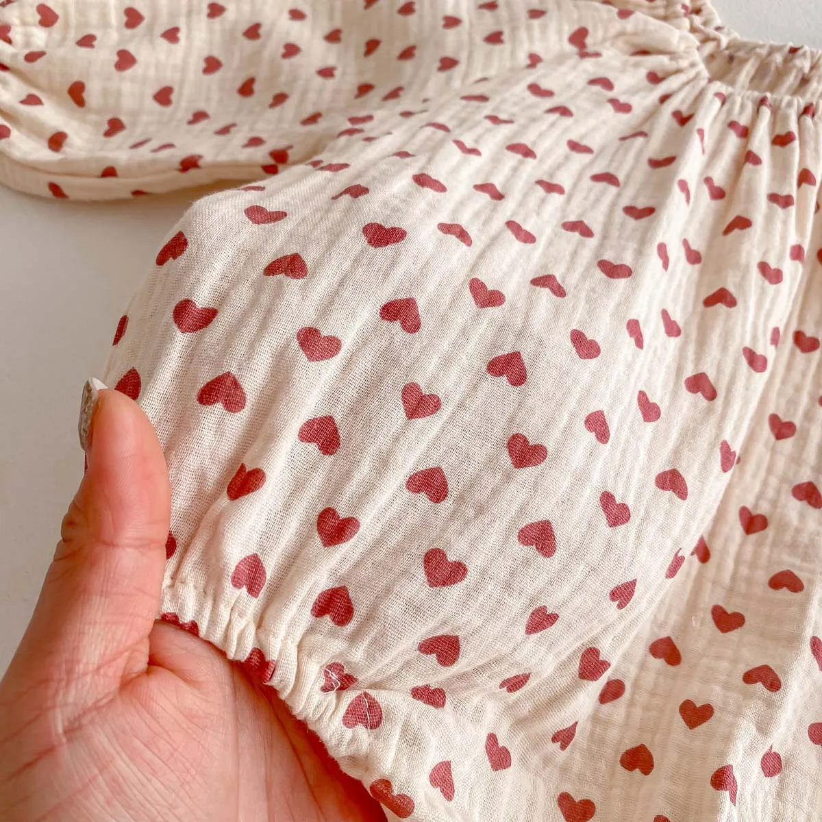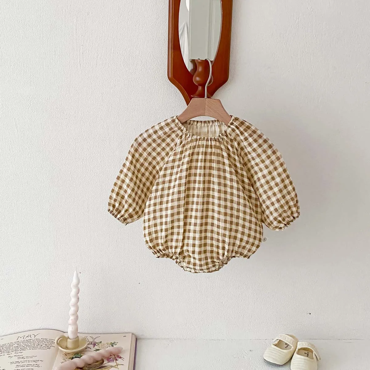 ベビーロンパース 長袖ルーズボディスーツ ハート チェックプリント柄【mh0004240】