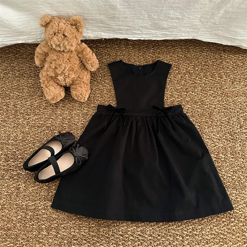 暖かな季節にぴったりの、おしゃれで可愛いノースリーブのキッズワンピースが新登場しました。シックなブラックドレスは、どんな場面でもお子様を一層引き立ててくれます。ノースリーブデザインで動きやすく、ジャンパースカートが可愛らしさをプラス。特別な日のお出かけや普段使いにもぴったりです。
