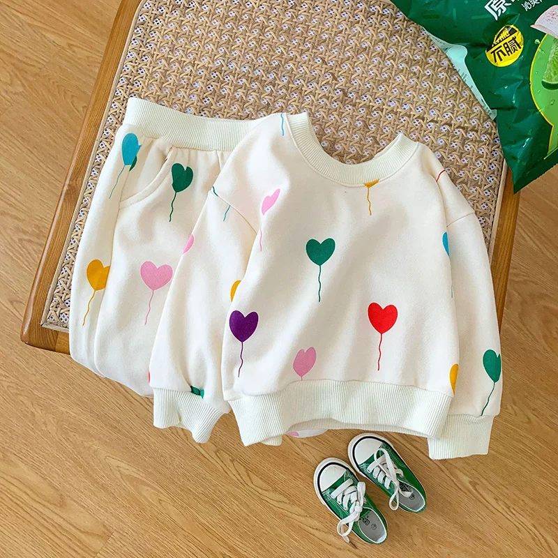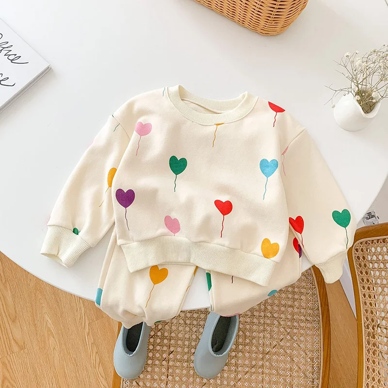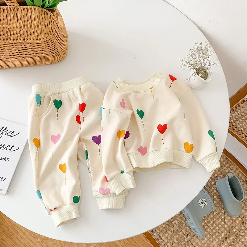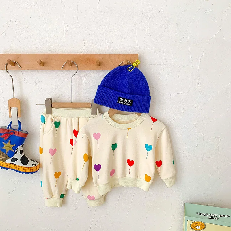 ベビー セットアップ カラフル ハート バルーン スウェット トレーナー パンツ【mh0001135】