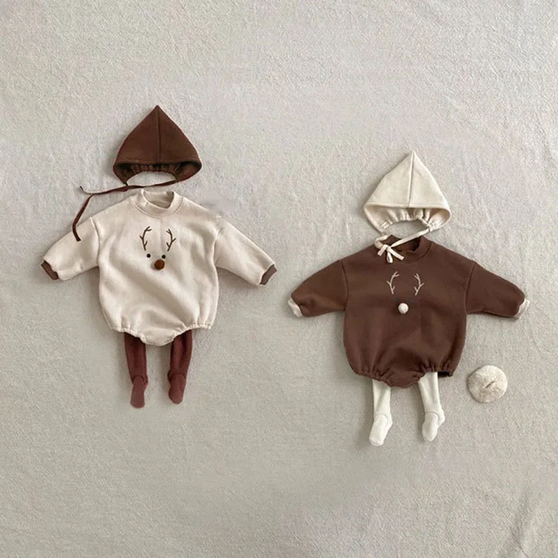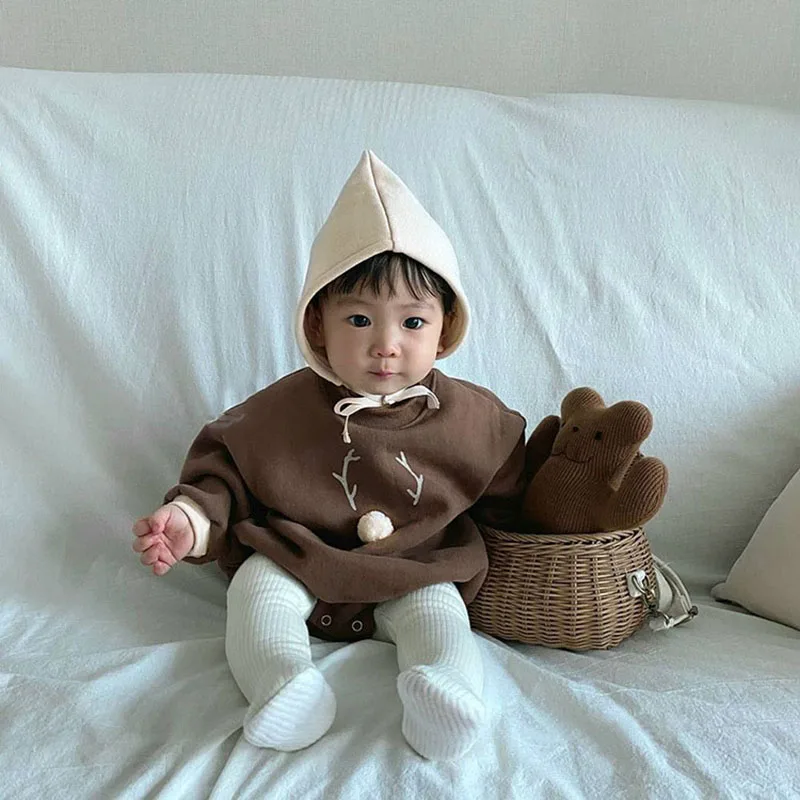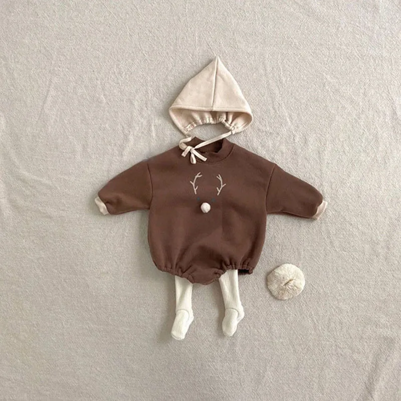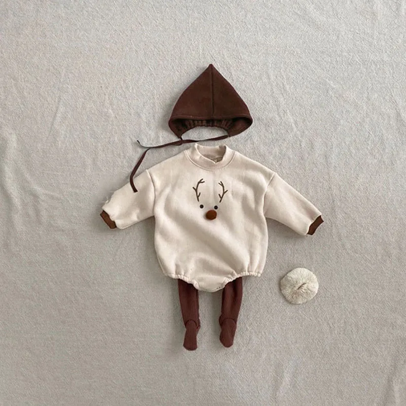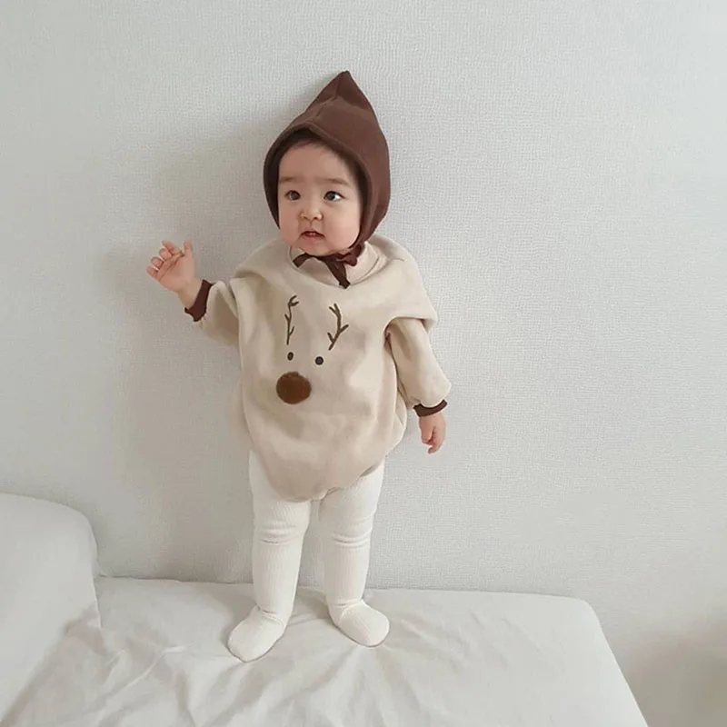 ベビー トナカイ 裏フリース 長袖 ロンパース とんがり 帽子【mh0001176】