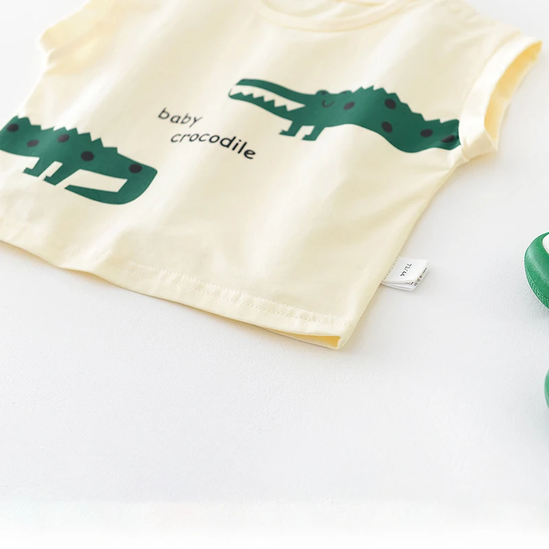 #ベビーセットアップ #夏のベビーウェア #ワニクロコダイル #かわいいプリント #快適な着心地 #ベビーカジュアル #ベビーファッション