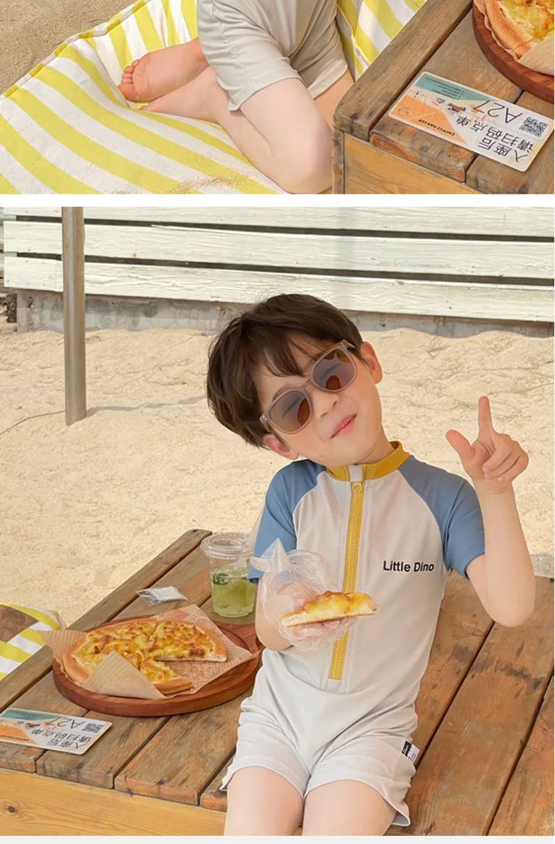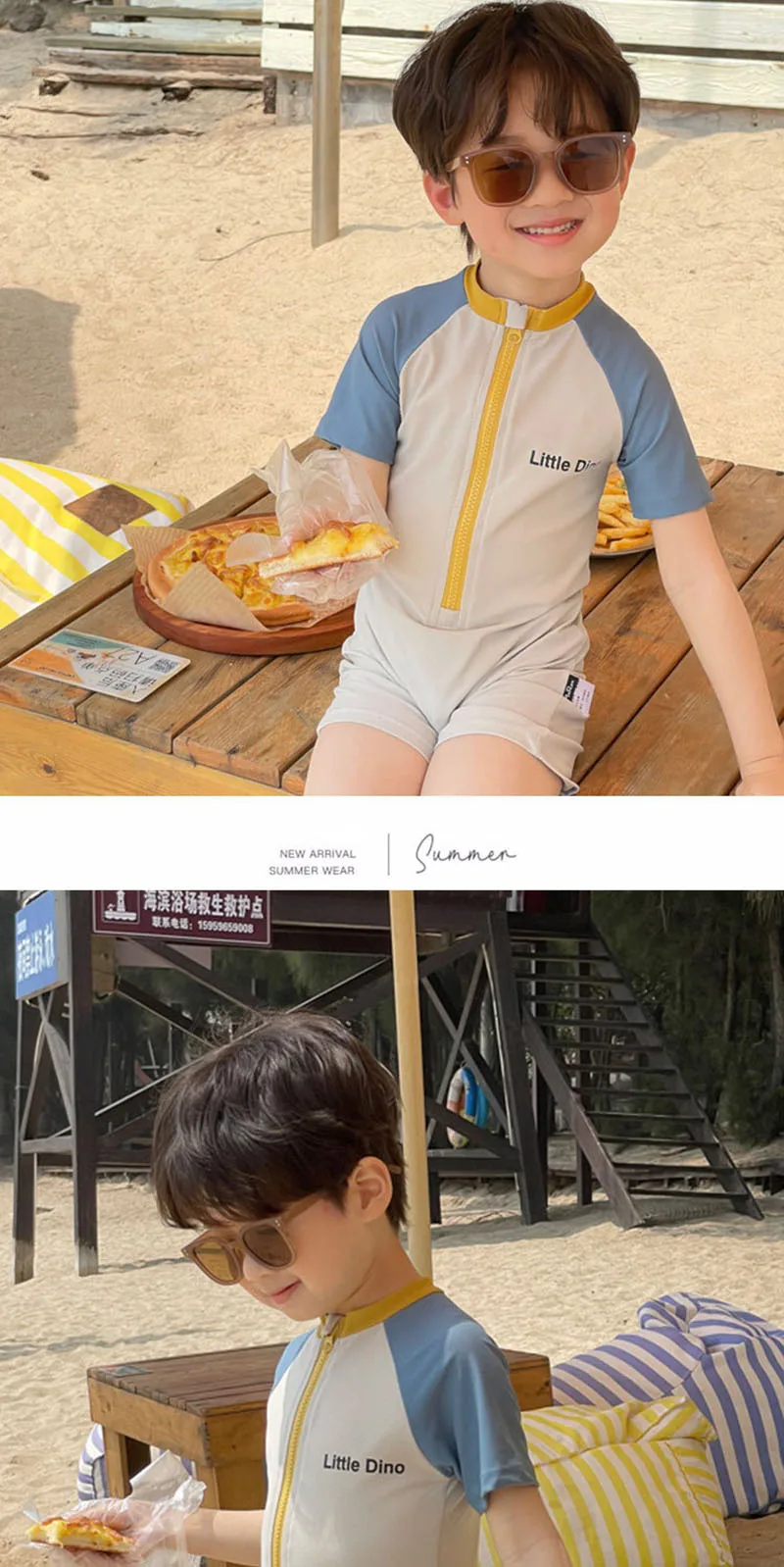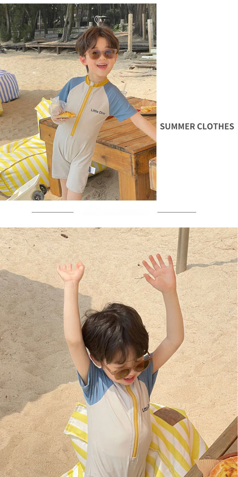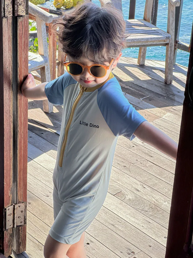 キッズ水着 半袖ラッシュガード つなぎ ワンピース スイムウェア 恐竜ダイナソープリント【mh0005114】