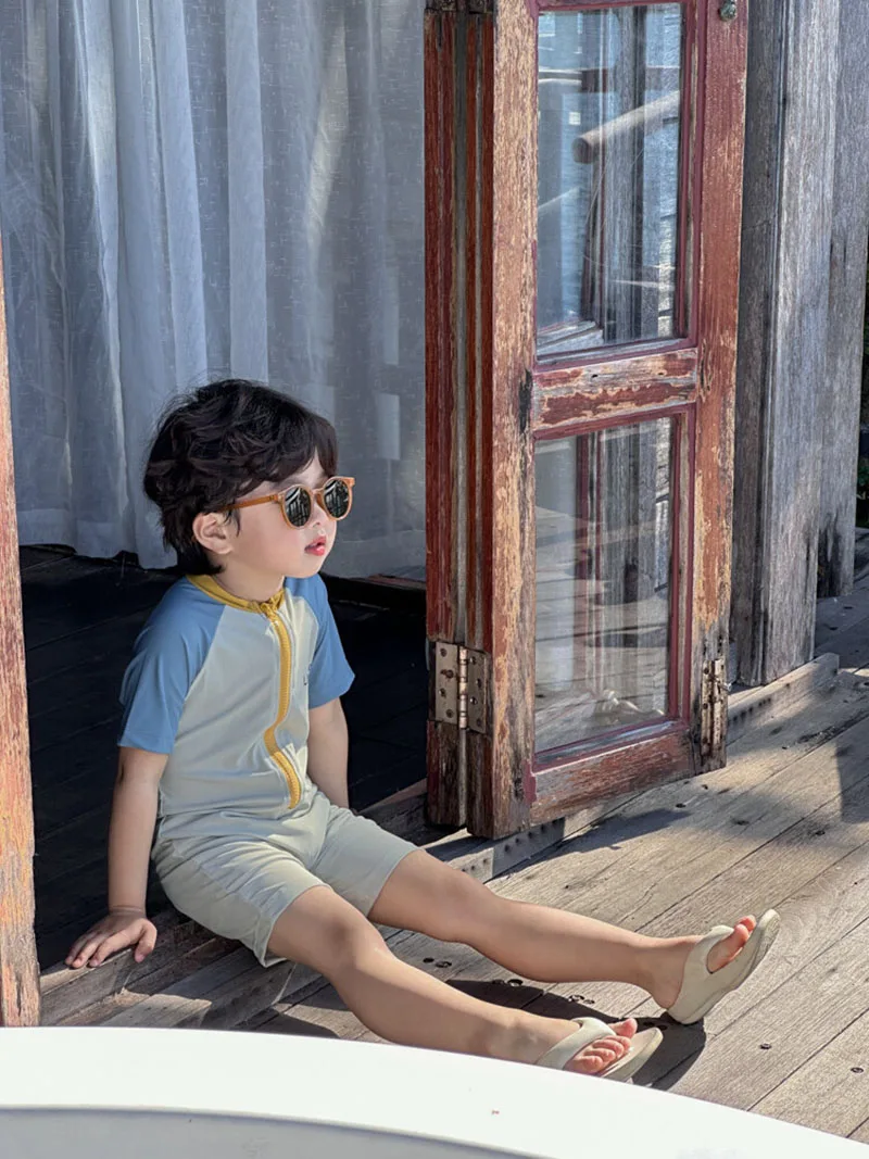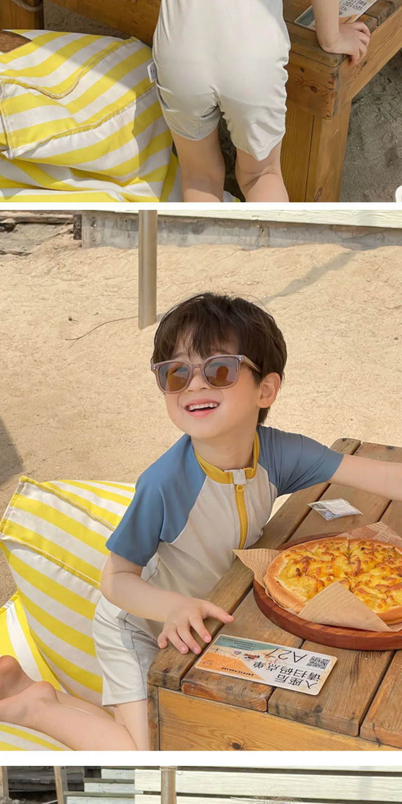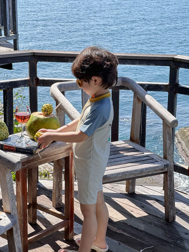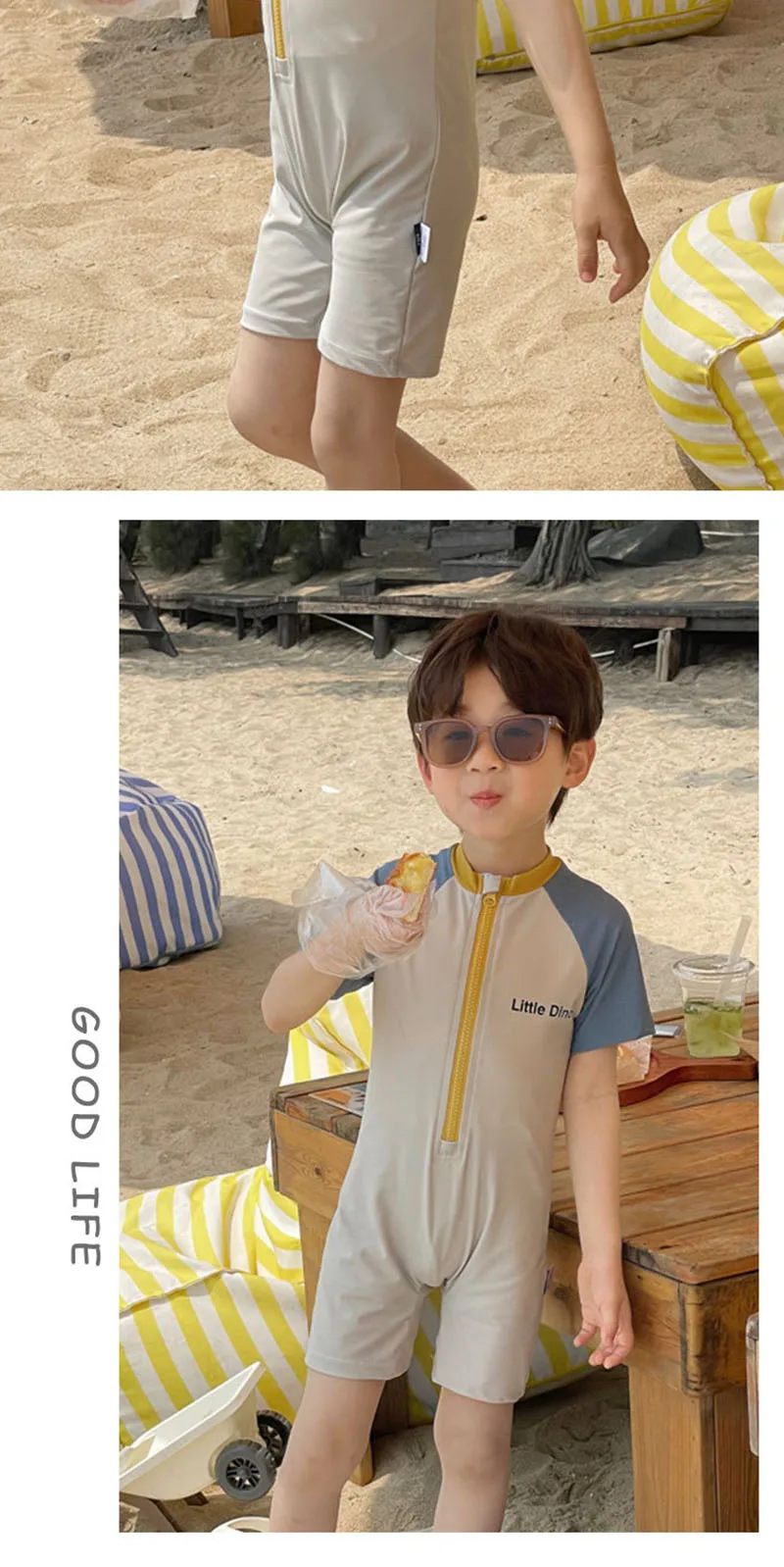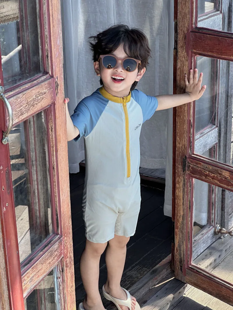 キッズ水着 半袖ラッシュガード つなぎ ワンピース スイムウェア 恐竜ダイナソープリント【mh0005114】