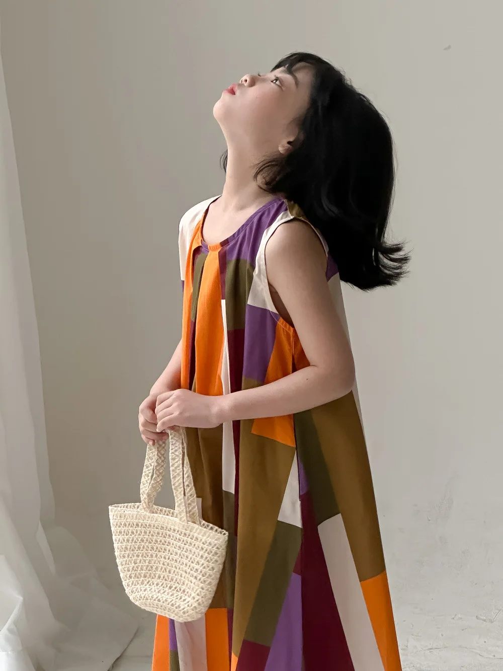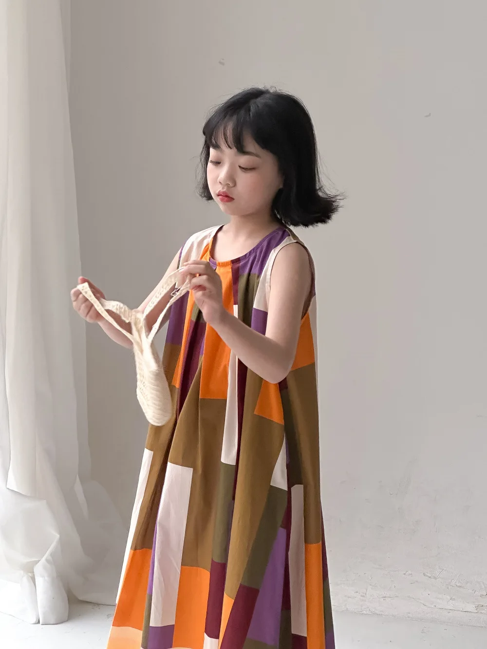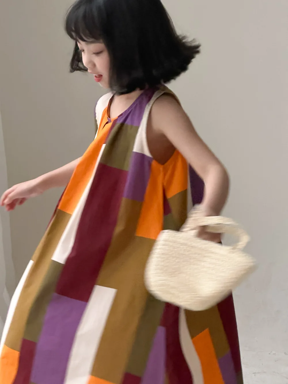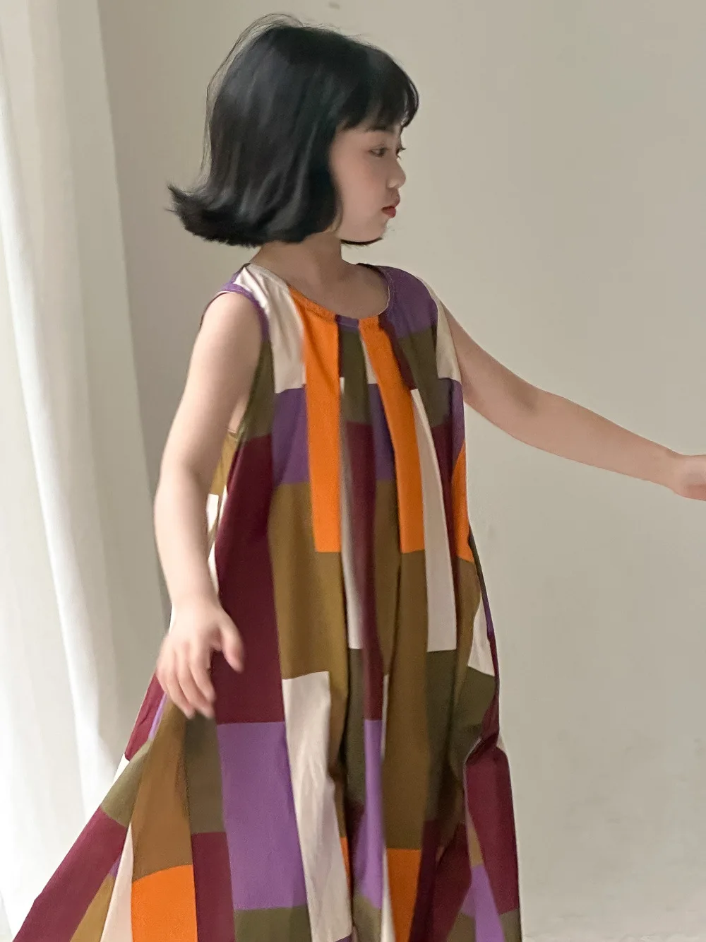 キッズセットアップ 2点セット/ワンピース ボーイズ半袖シャツ+ショートパンツ/ガールズノースリーブワンピース 幾何学チェック リンクコーデ 兄弟姉妹 お揃いコーデ【mh0005179】