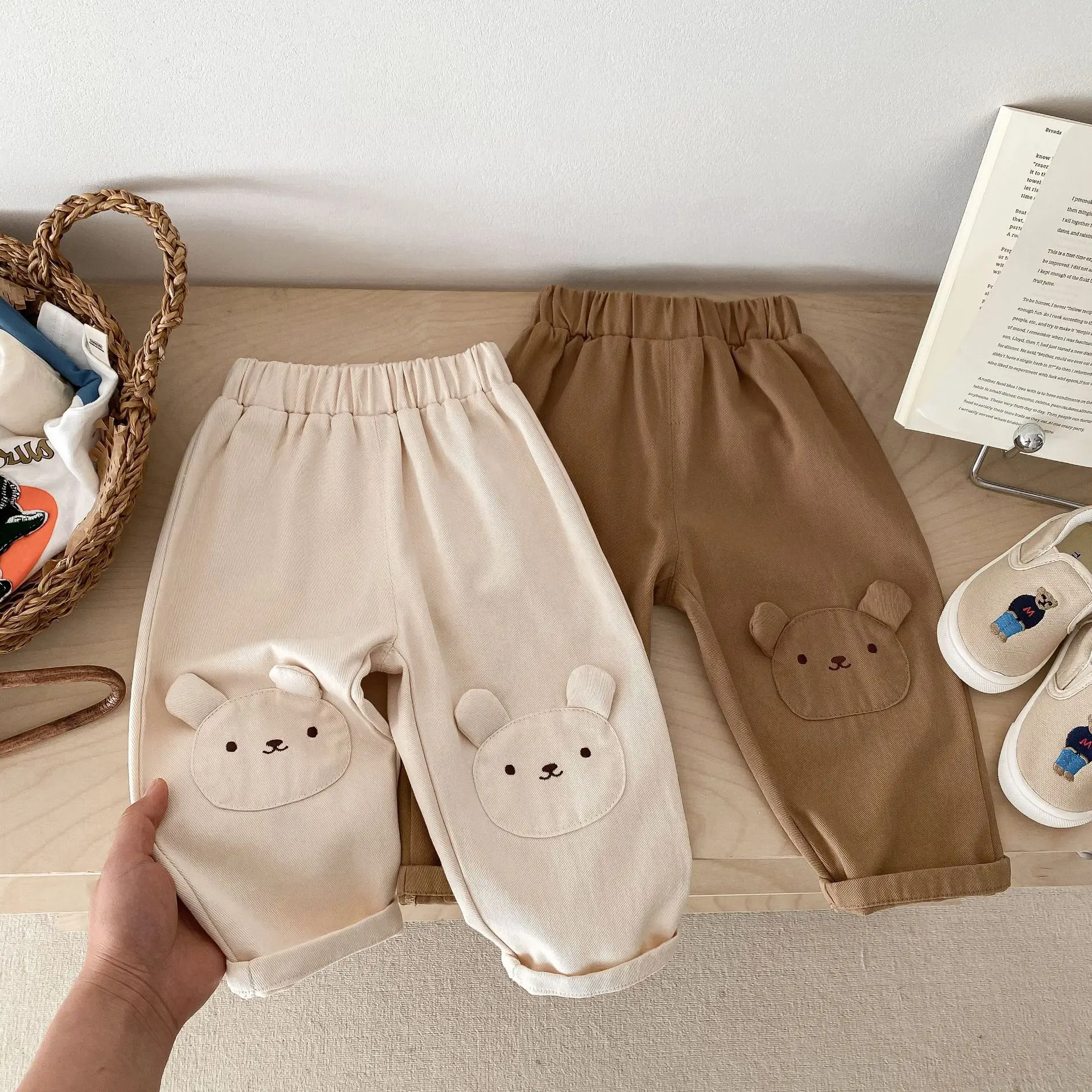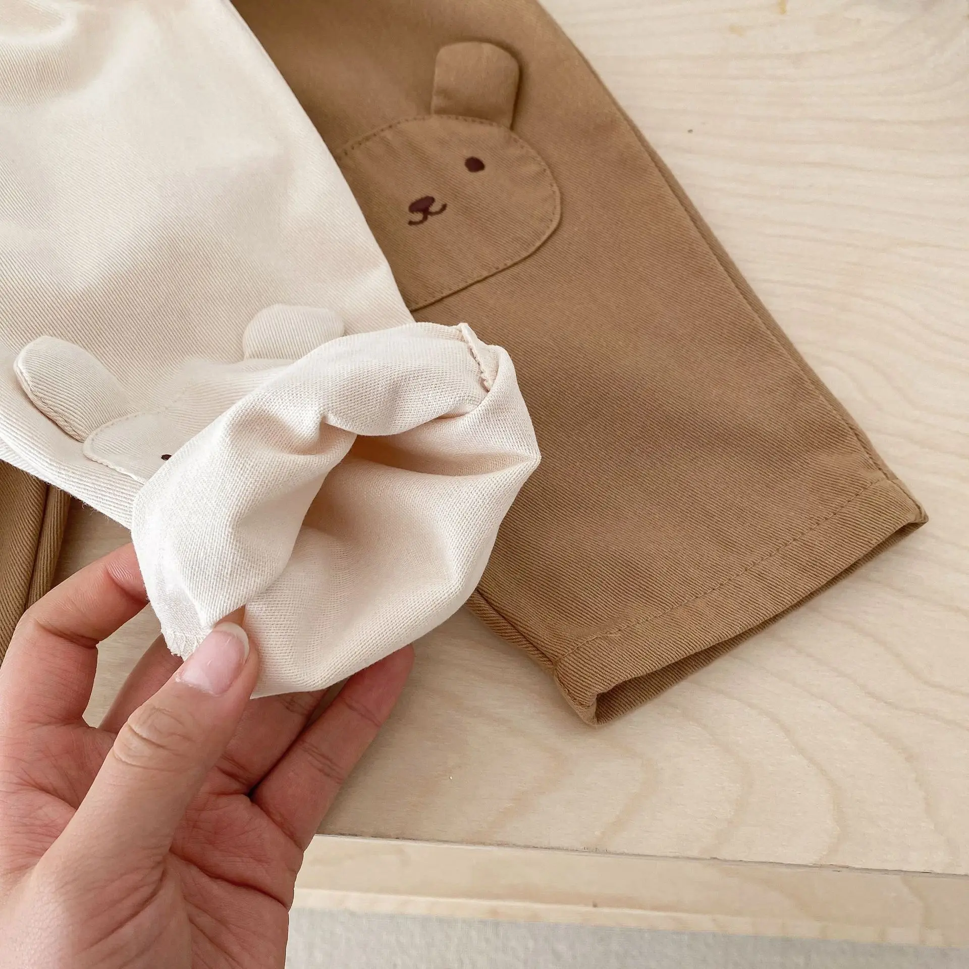 キッズパンツ 膝パッチ ロングルーズパンツ うさぎくまベア 2カラー【mh0005453】