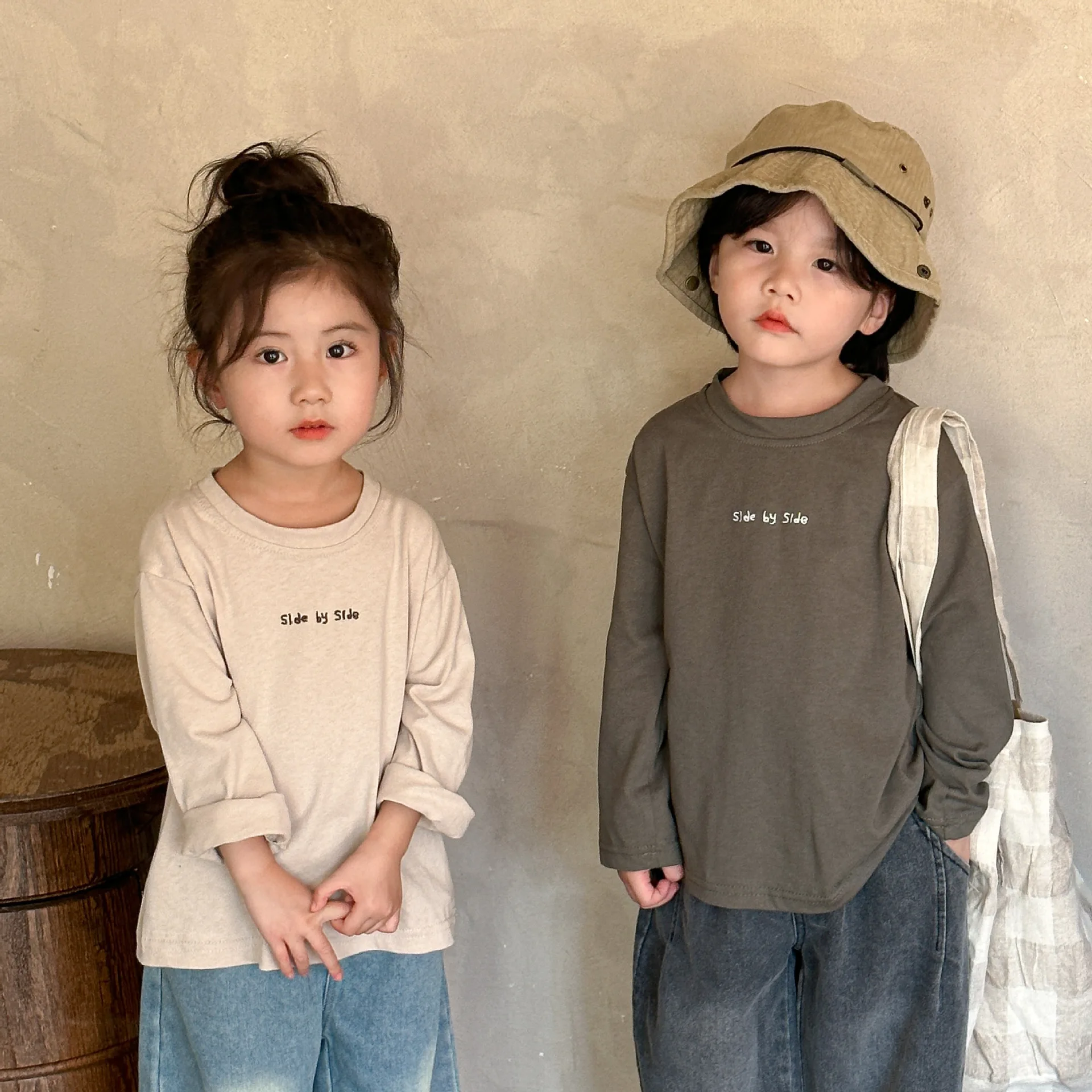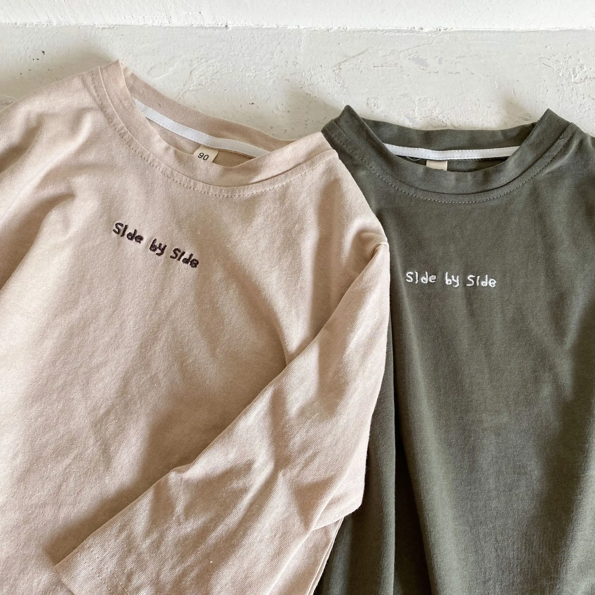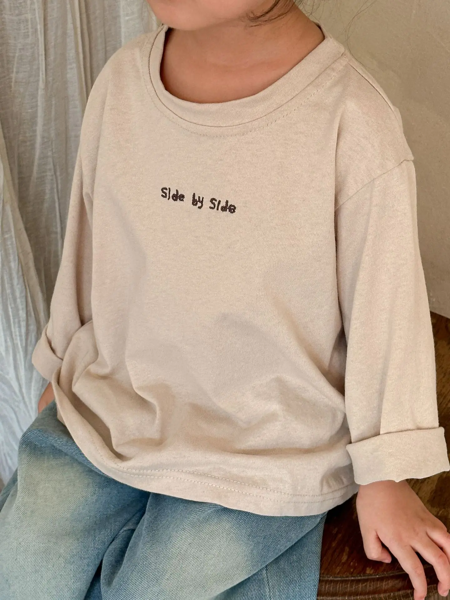 子供たちの秋の必需品!カジュアルでゆったりしたコットン素材の長袖Tシャツ。文字刺繍がワンポイントになった2色展開。お子様のおしゃれなスタイルにぴったり。
