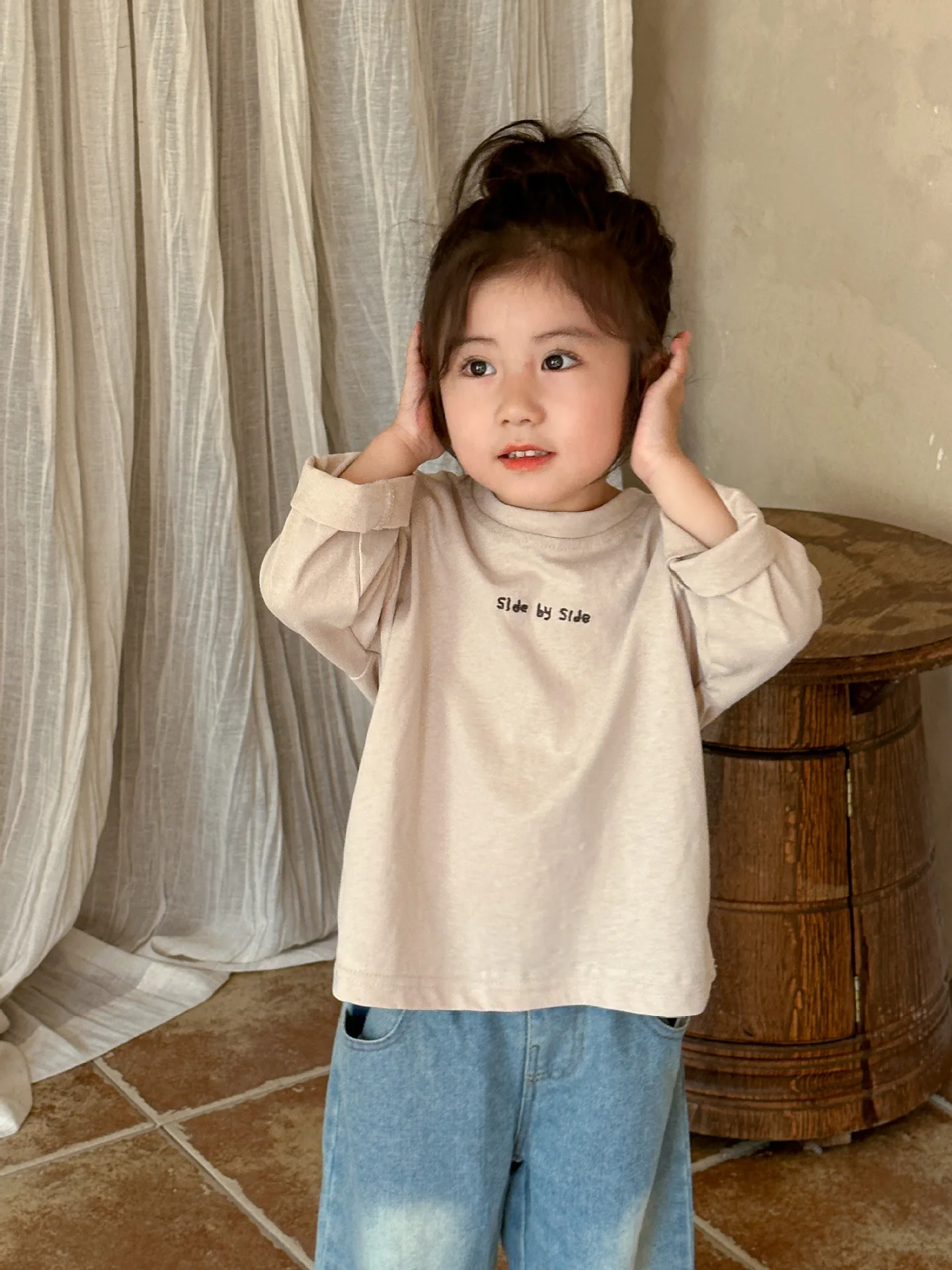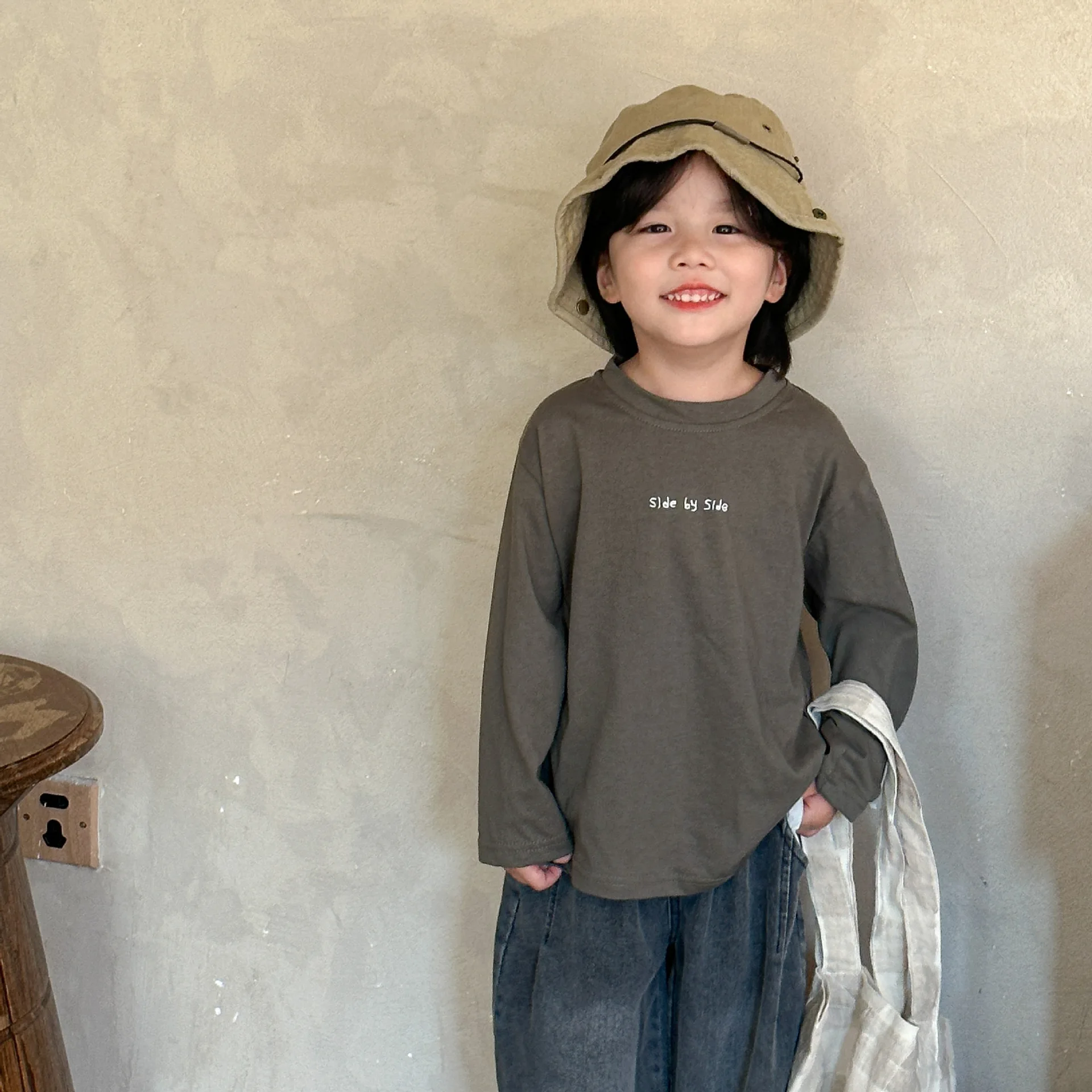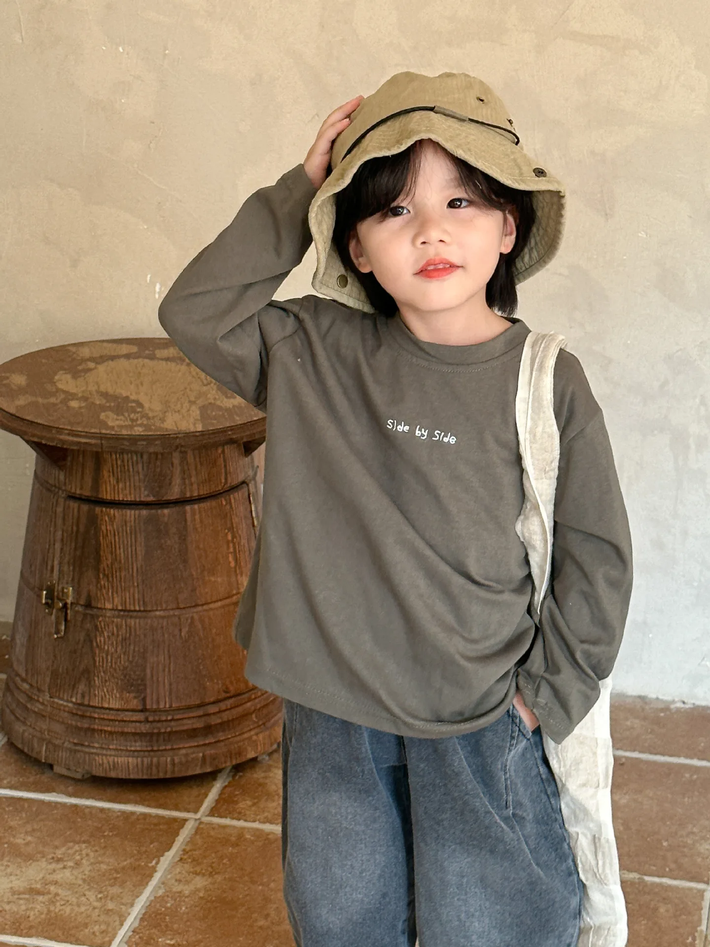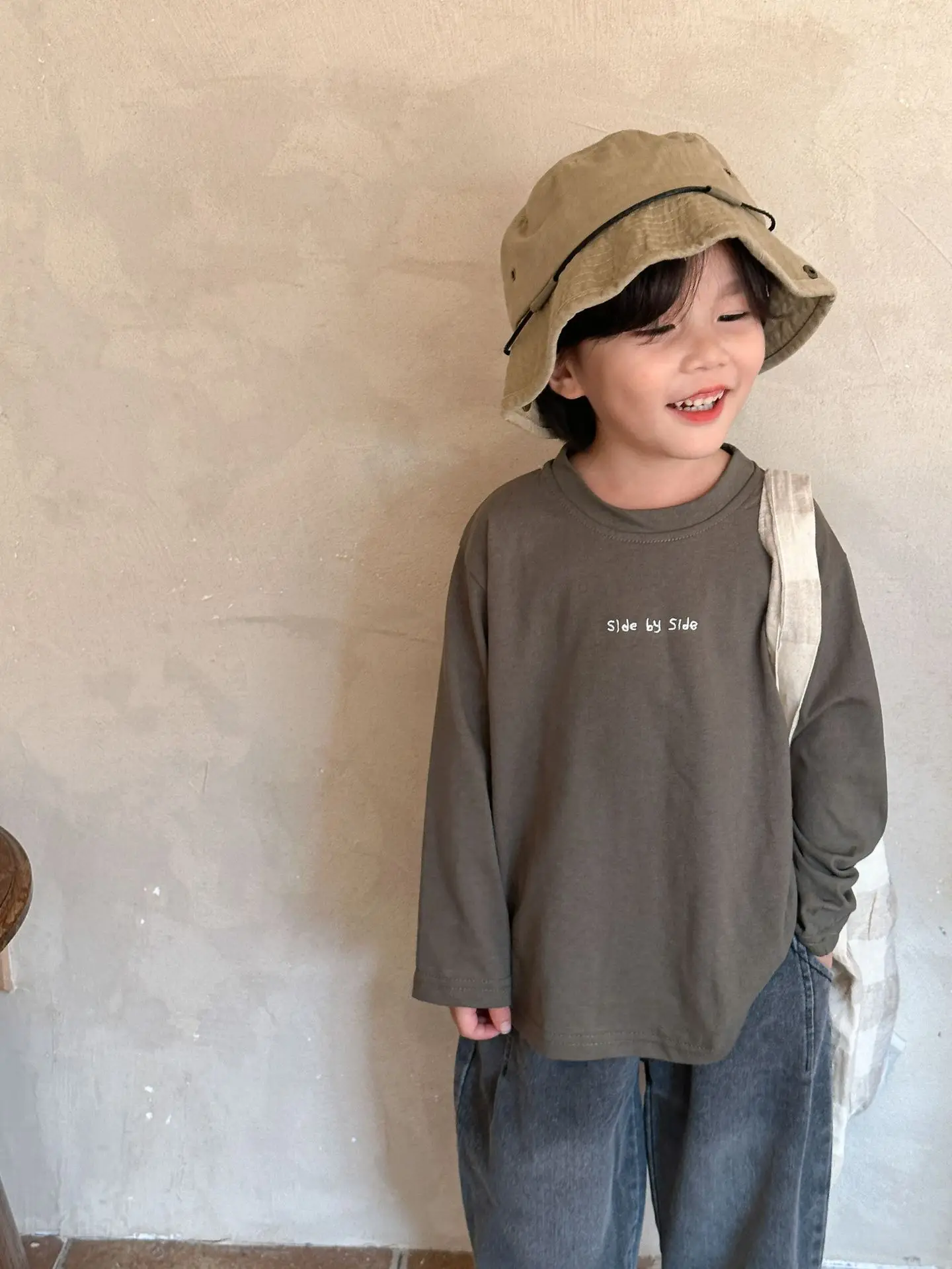 子供たちの秋の必需品!カジュアルでゆったりしたコットン素材の長袖Tシャツ。文字刺繍がワンポイントになった2色展開。お子様のおしゃれなスタイルにぴったり。