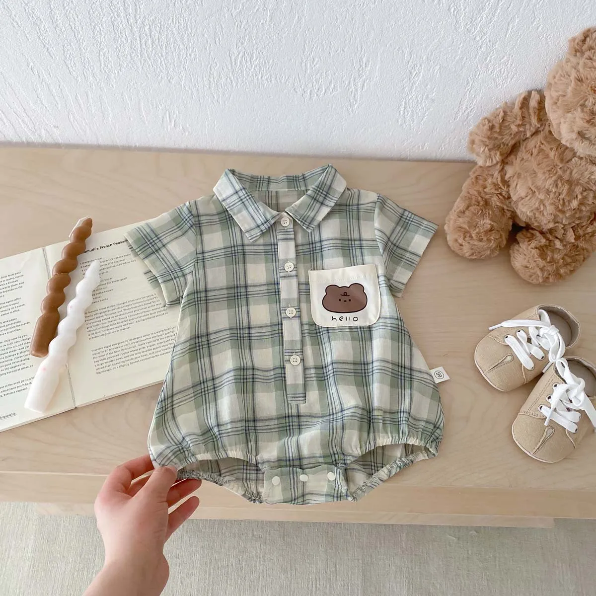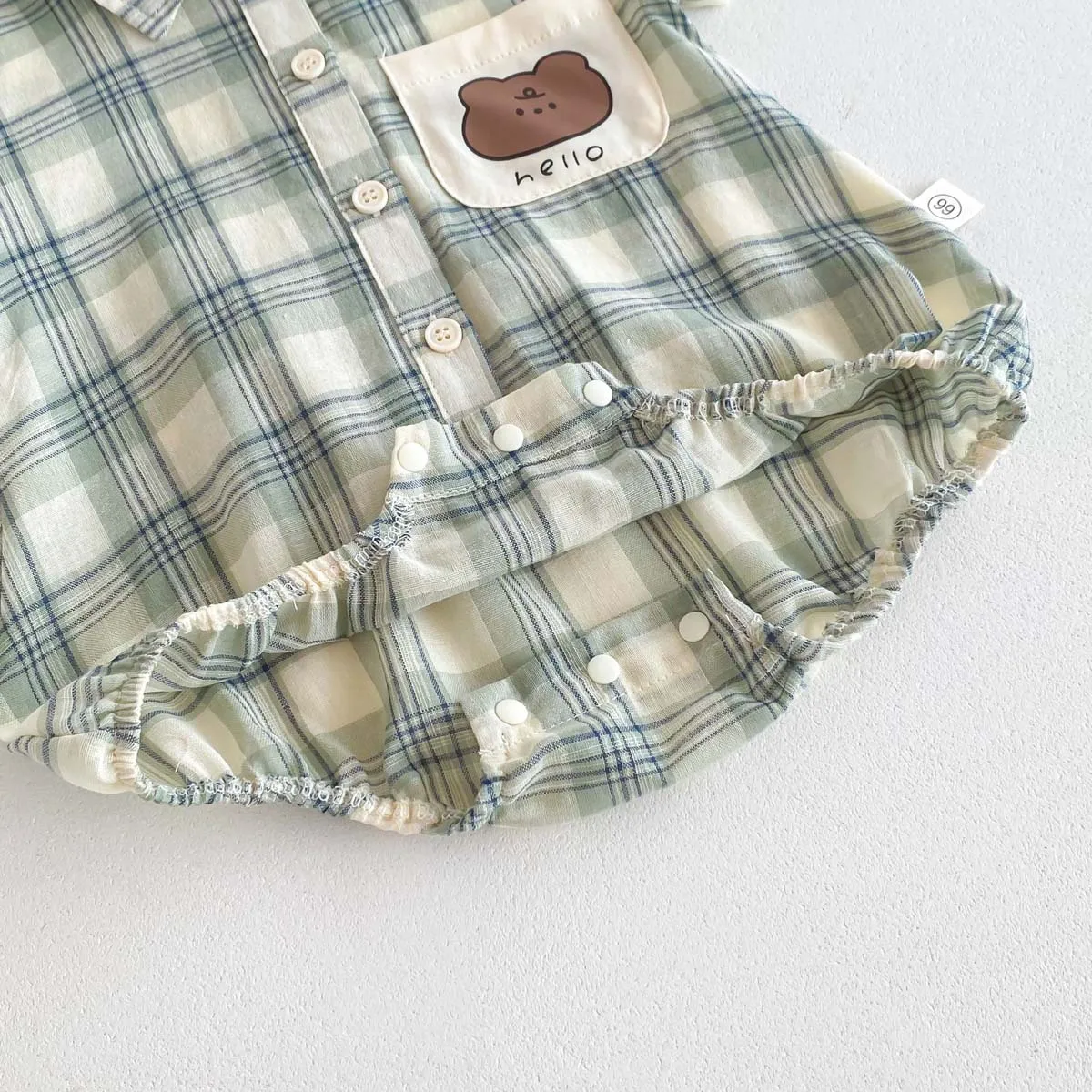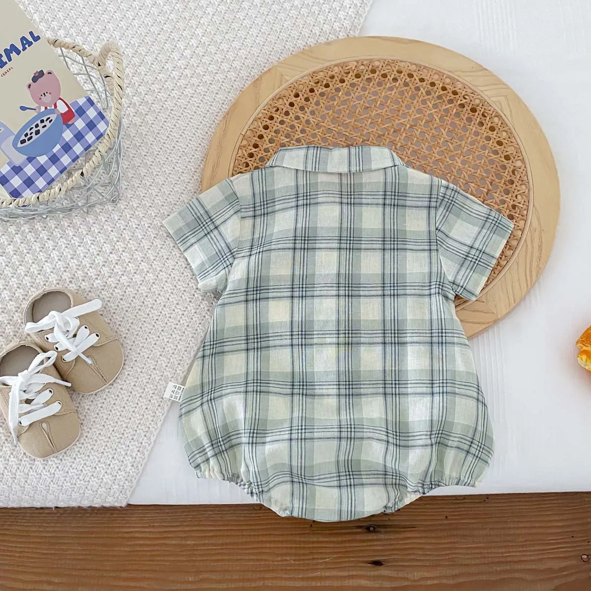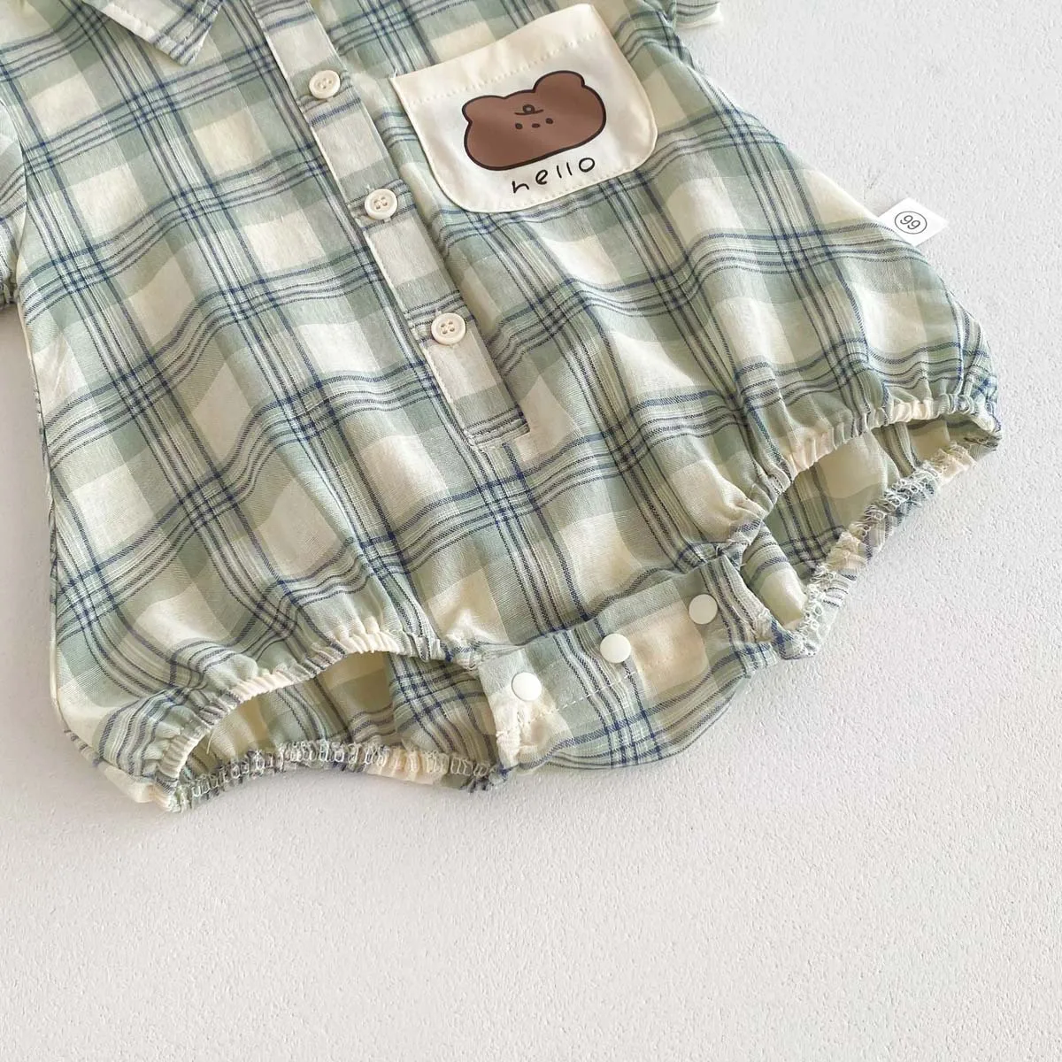 ベビーロンパース 半袖シャツボディスーツ レトロチェック【mh0006271】