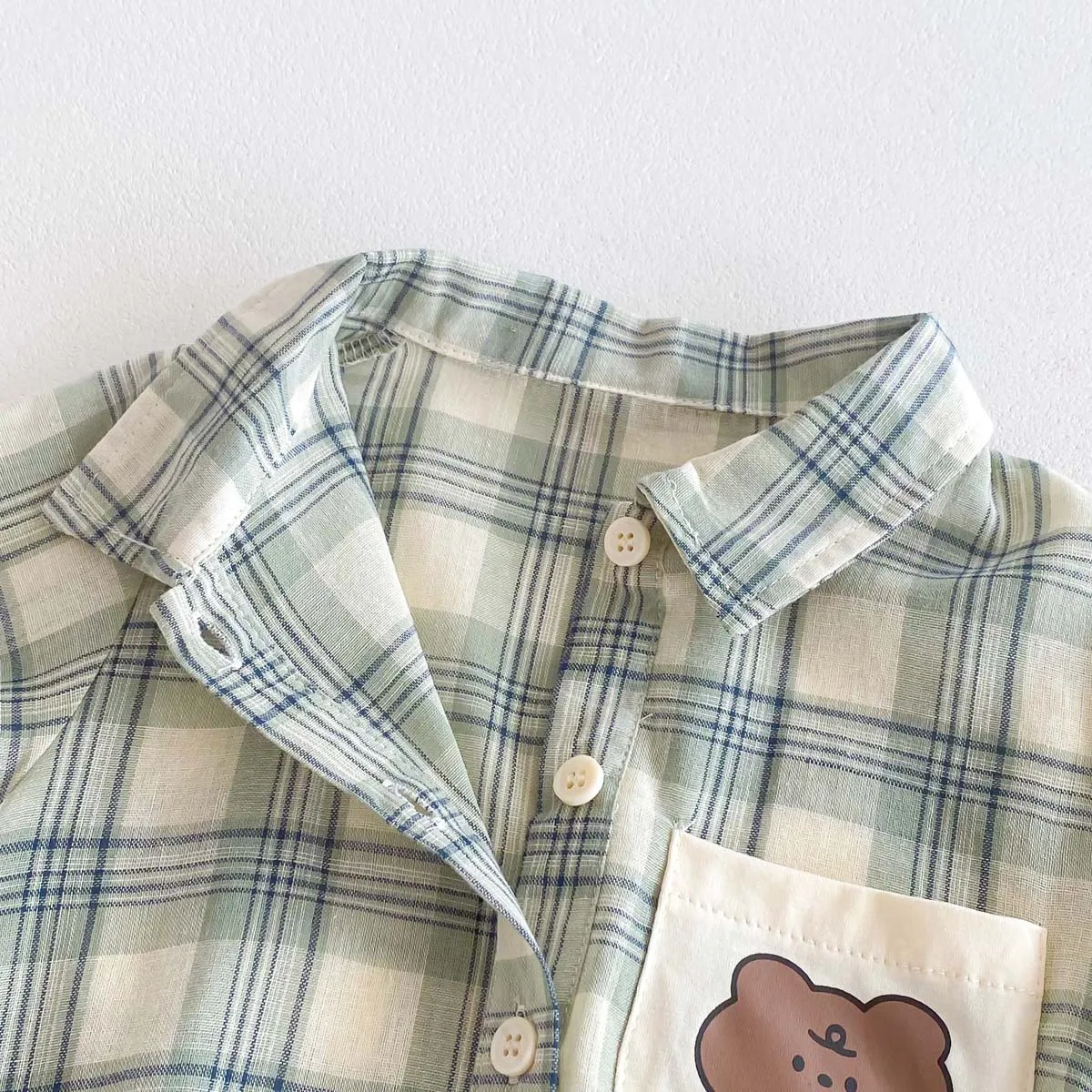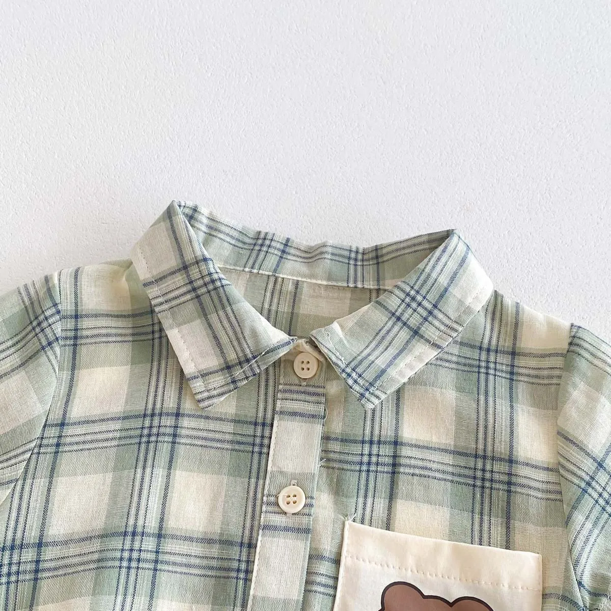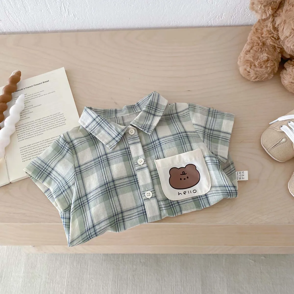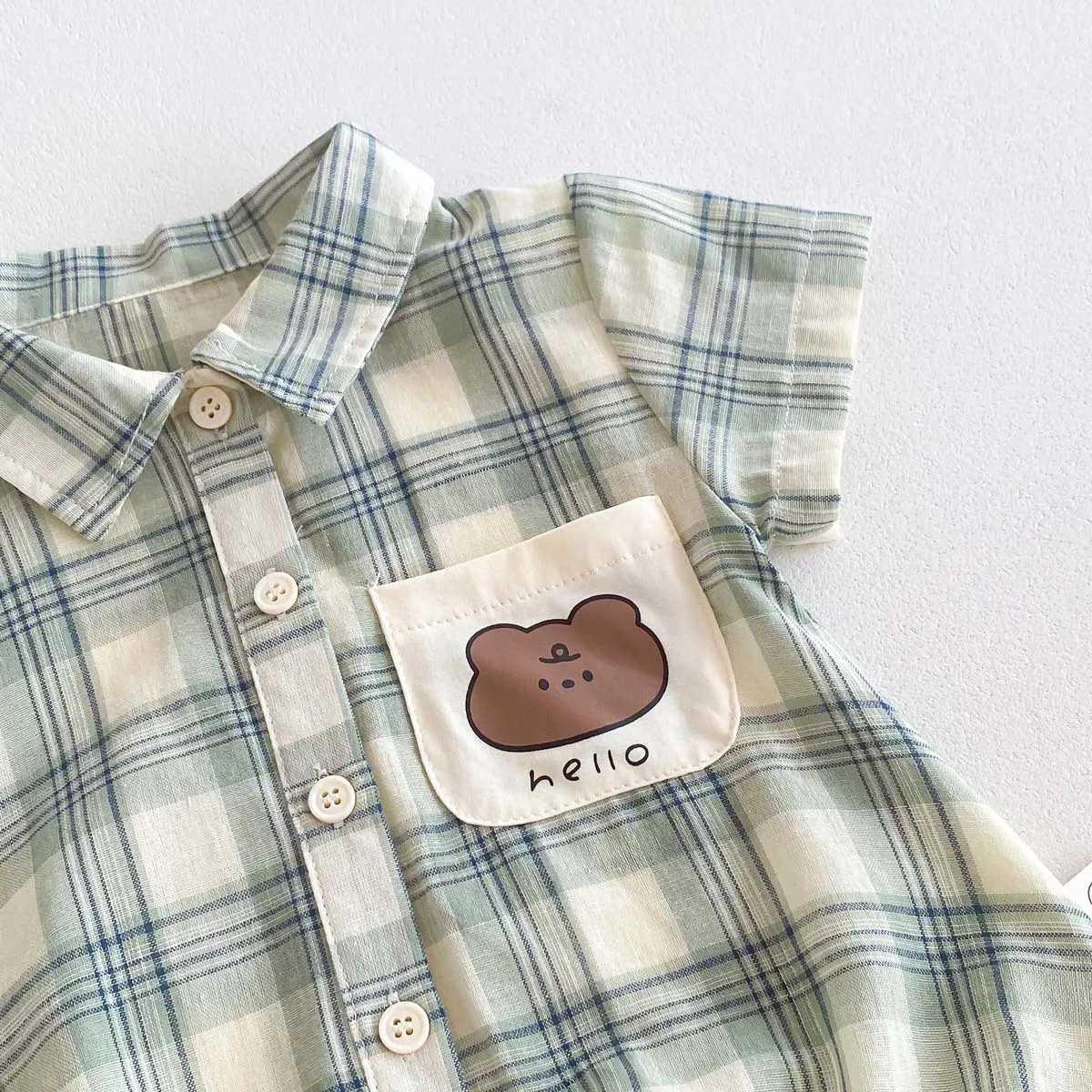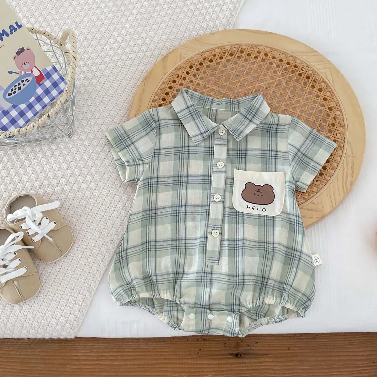 ベビーロンパース 半袖シャツボディスーツ レトロチェック【mh0006271】
