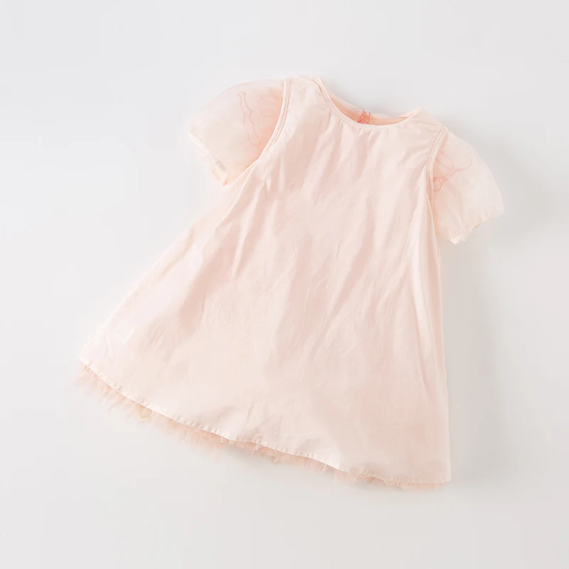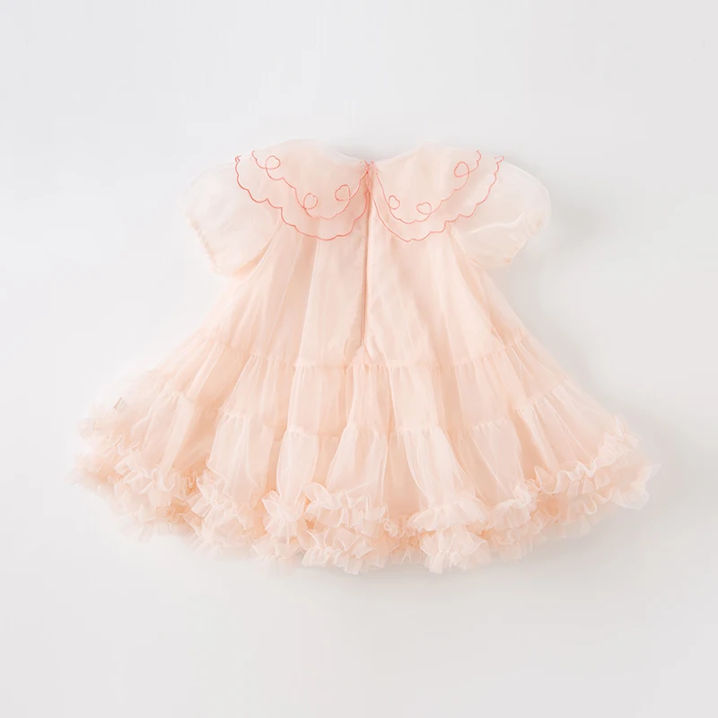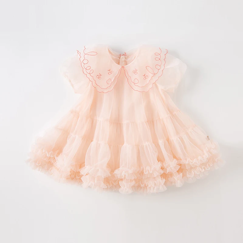 【dave & bella】キッズワンピース チェリーハート刺繍 襟付き プリンセスドレス オレンジピンク【mh0006280】