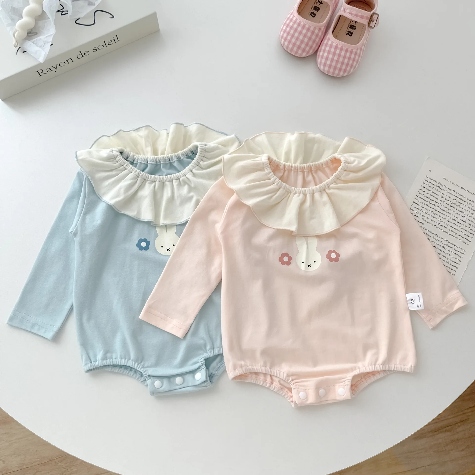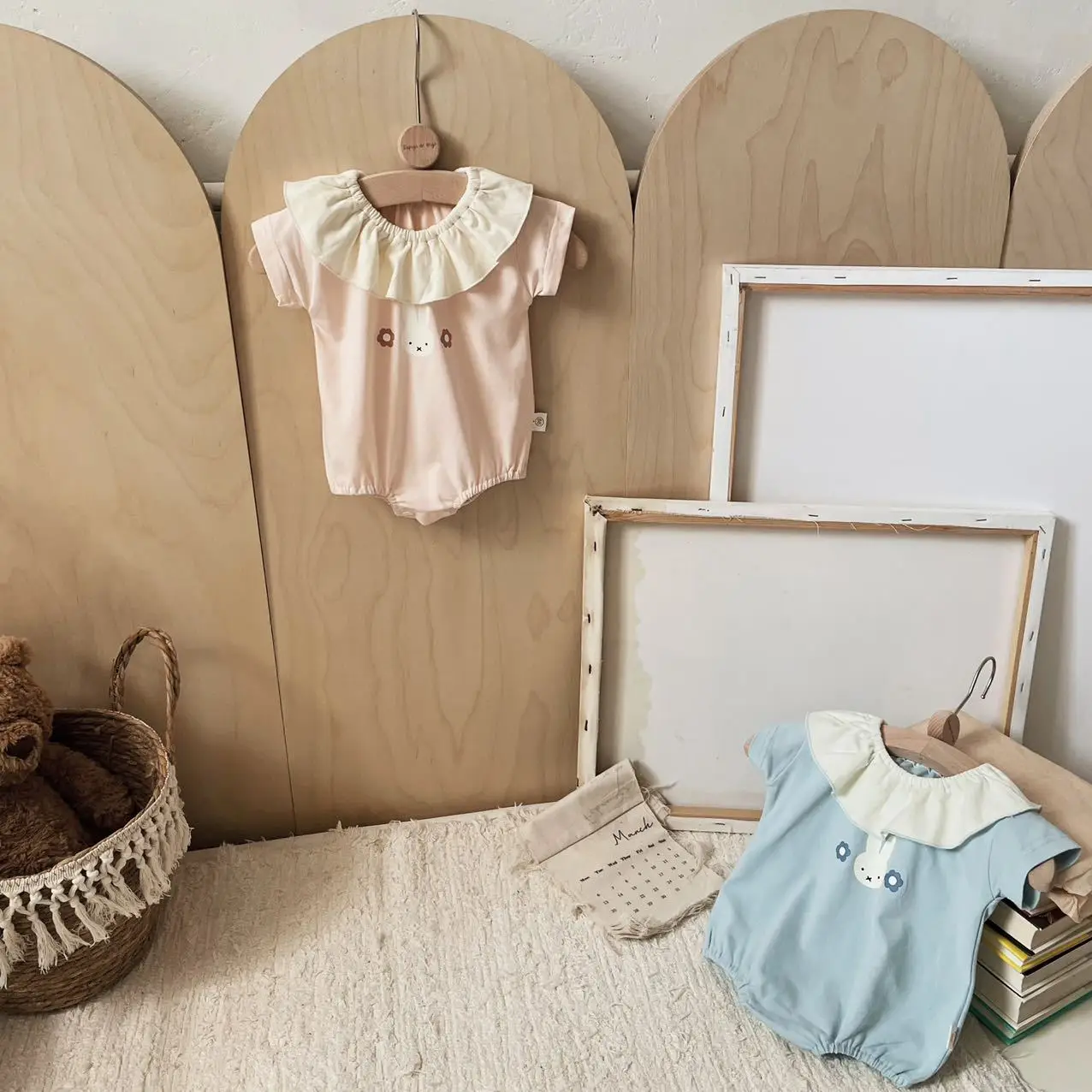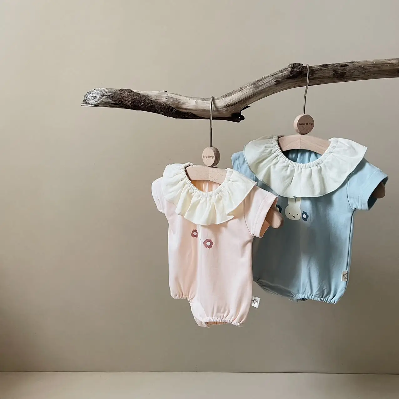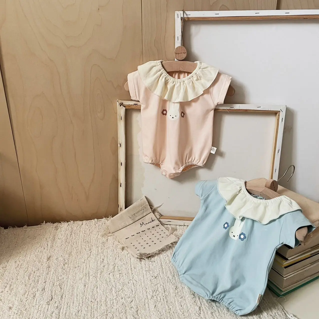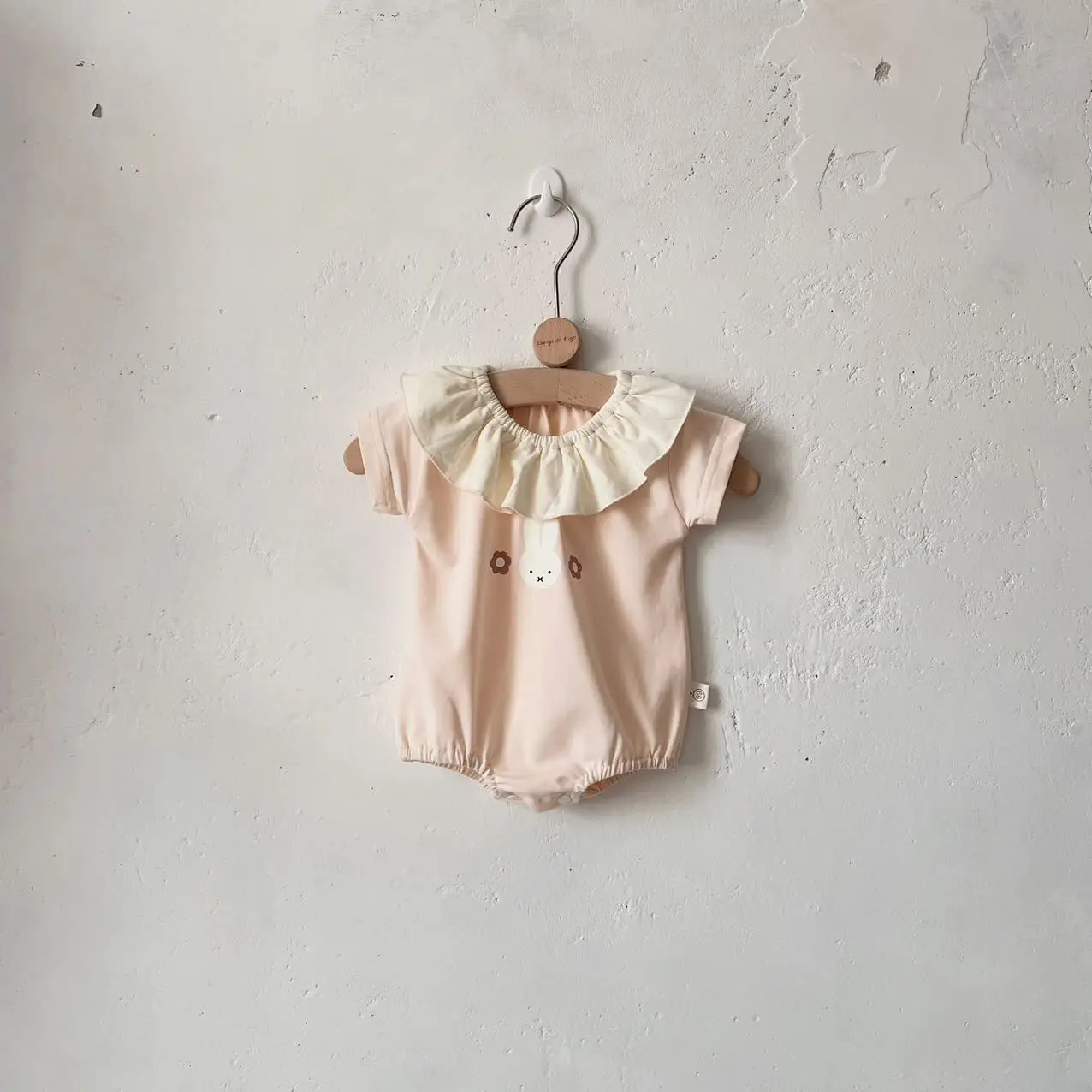 赤ちゃんの夏の新しいお洋服です。かわいいミッフィー風びうさぎがデザインされたロンパースは、サークル襟と半袖で涼しく、おしゃれに着こなせます。赤ちゃんの肌に優しいコットン素材で作られ、ご家族の特別な思い出づくりにお役立ていただけます。女の子がおしゃれにコーディネートでき、2つのカラーからお選びいただけます。