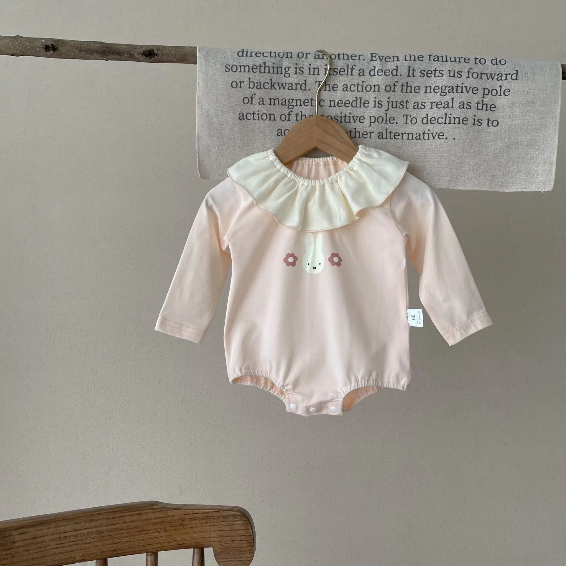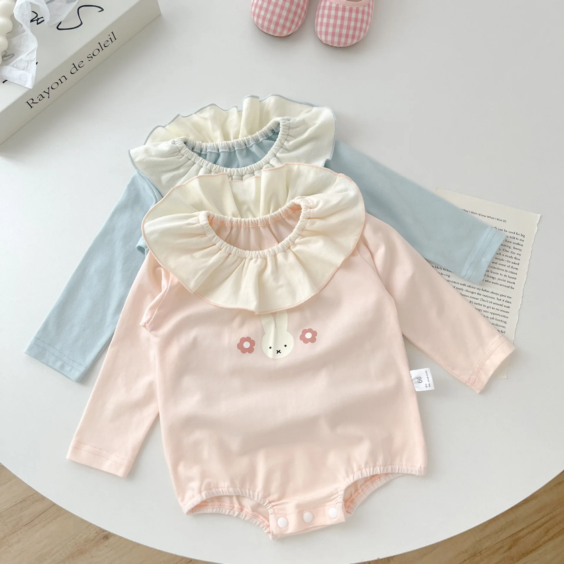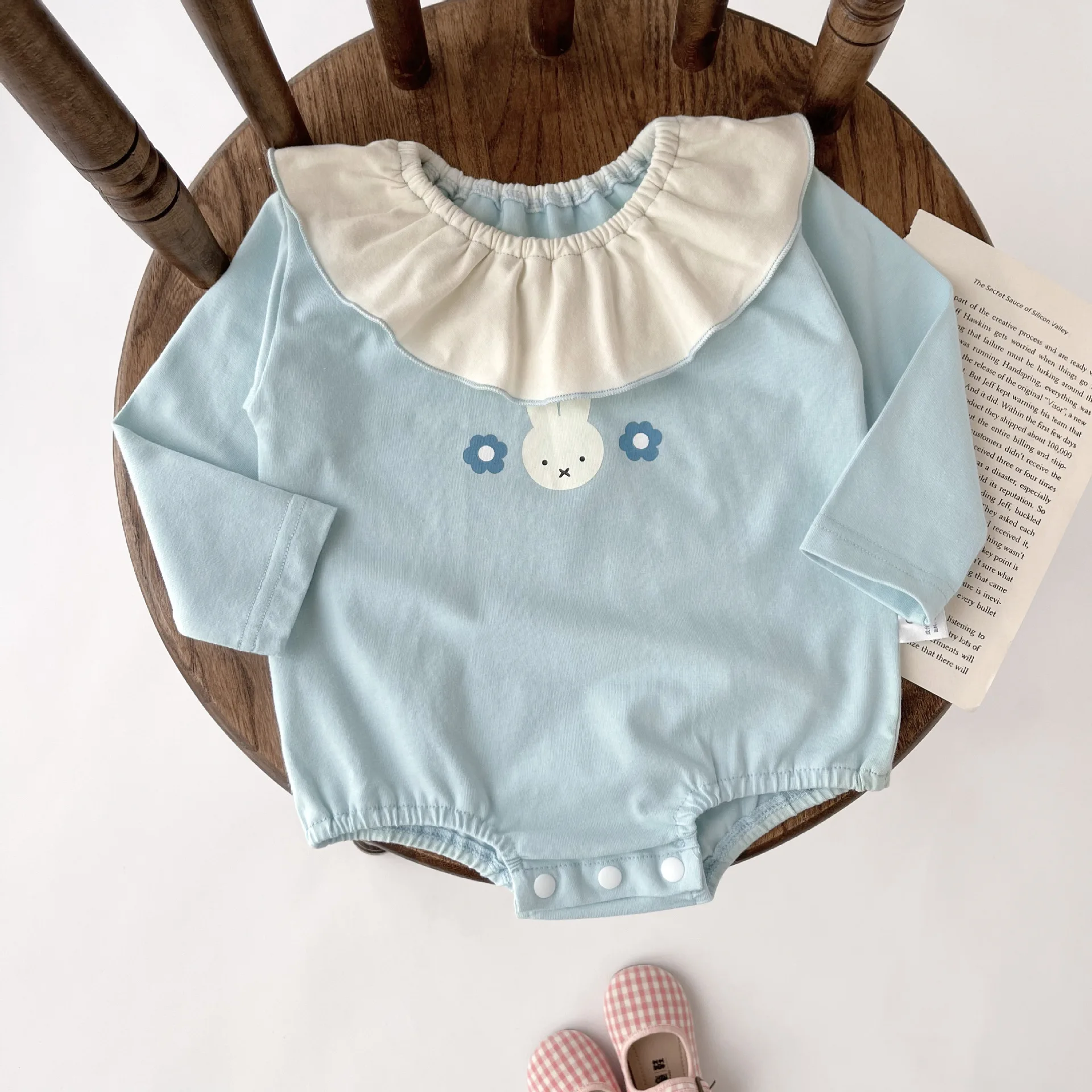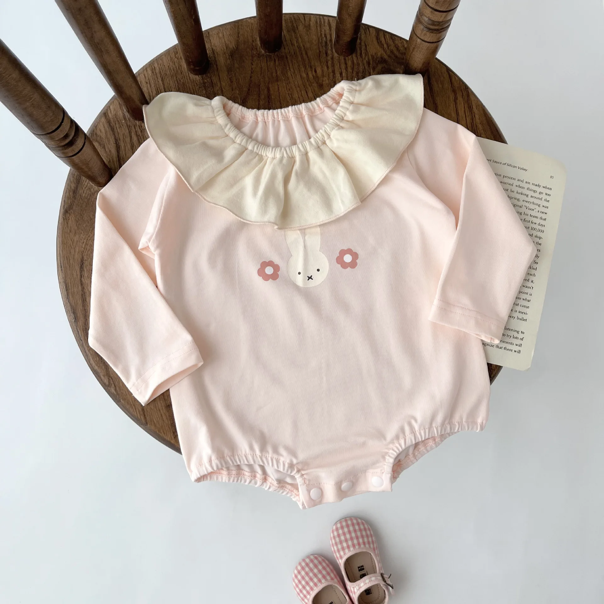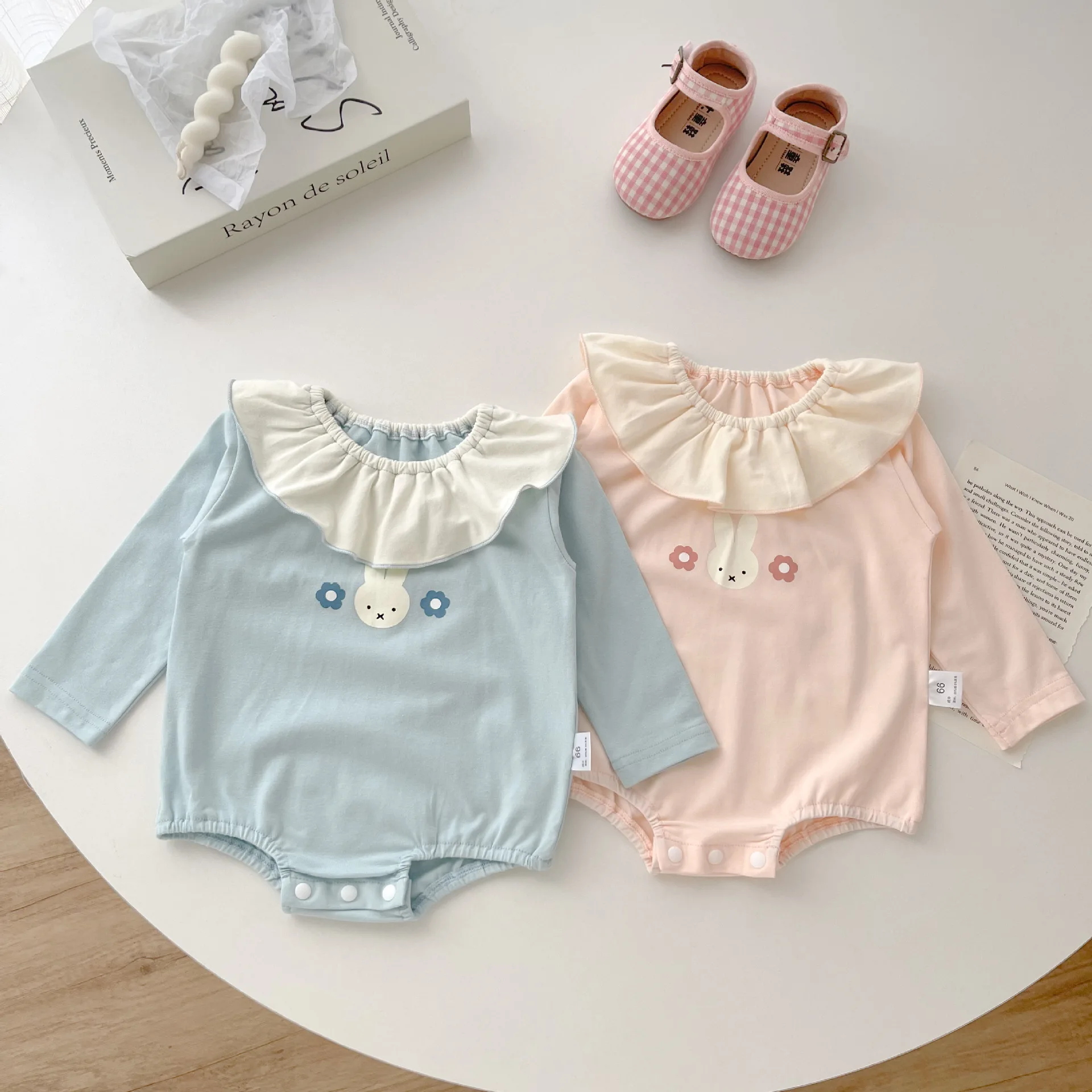 赤ちゃんの夏の新しいお洋服です。かわいいミッフィー風びうさぎがデザインされたロンパースは、サークル襟と半袖で涼しく、おしゃれに着こなせます。赤ちゃんの肌に優しいコットン素材で作られ、ご家族の特別な思い出づくりにお役立ていただけます。女の子がおしゃれにコーディネートでき、2つのカラーからお選びいただけます。