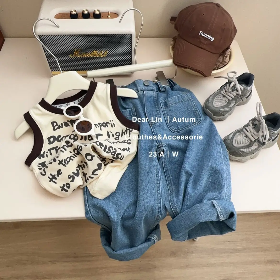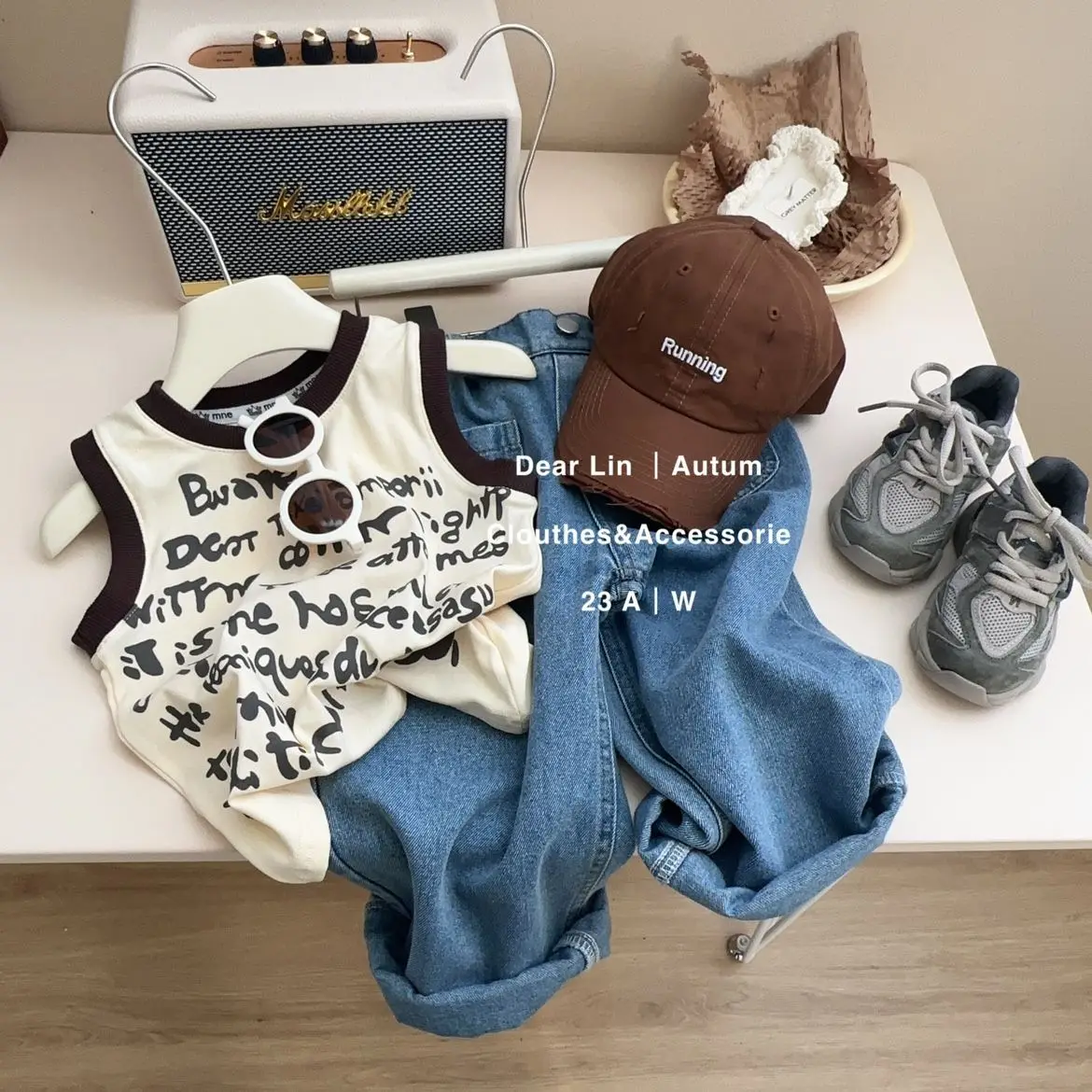 リラックスした夏のファッションスタイルをお楽しみください。 子供たちに合わせたルーズシルエットのタンクトップです。レターロゴとグラフィティプリントがポップな印象を与え、活動的なお子様にぴったり。コットン素材で涼しく快適に着用でき、カジュアルなスポーツスタイルや普段着に最適です。
