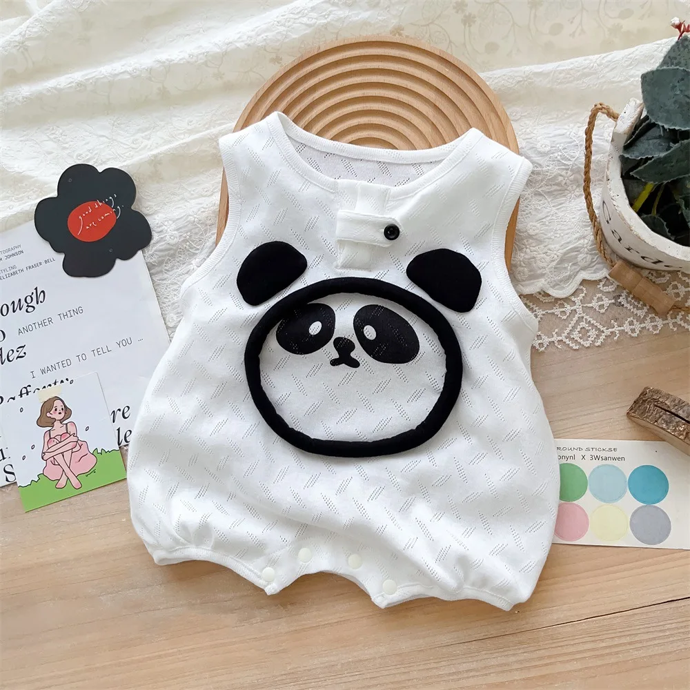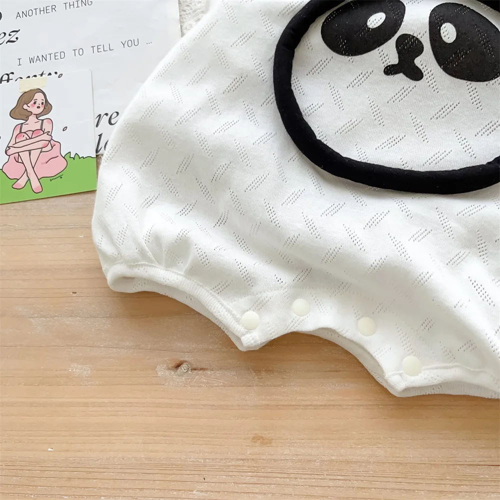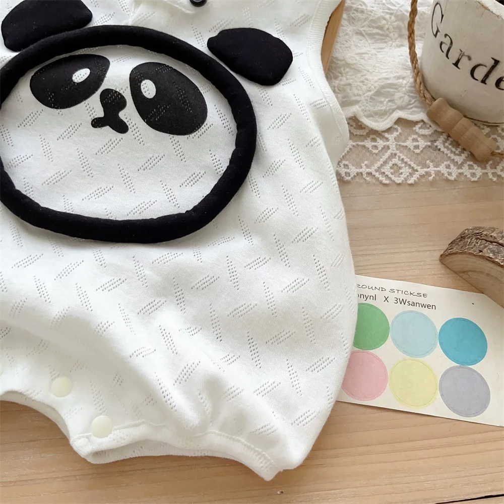 ベビーロンパース ノースリーブボディスーツ レースニット パンダアップリケ【mh0006541】