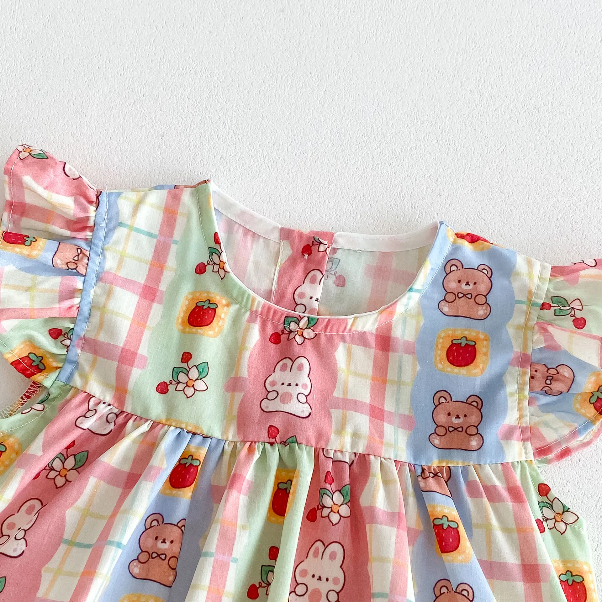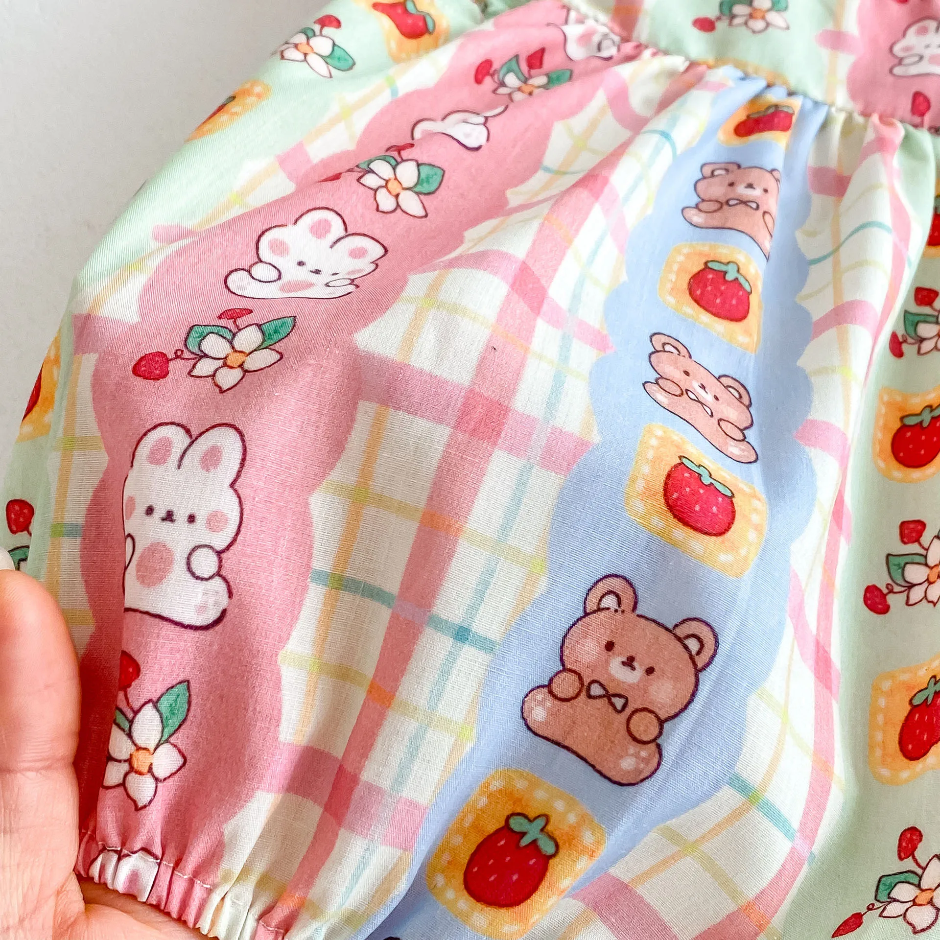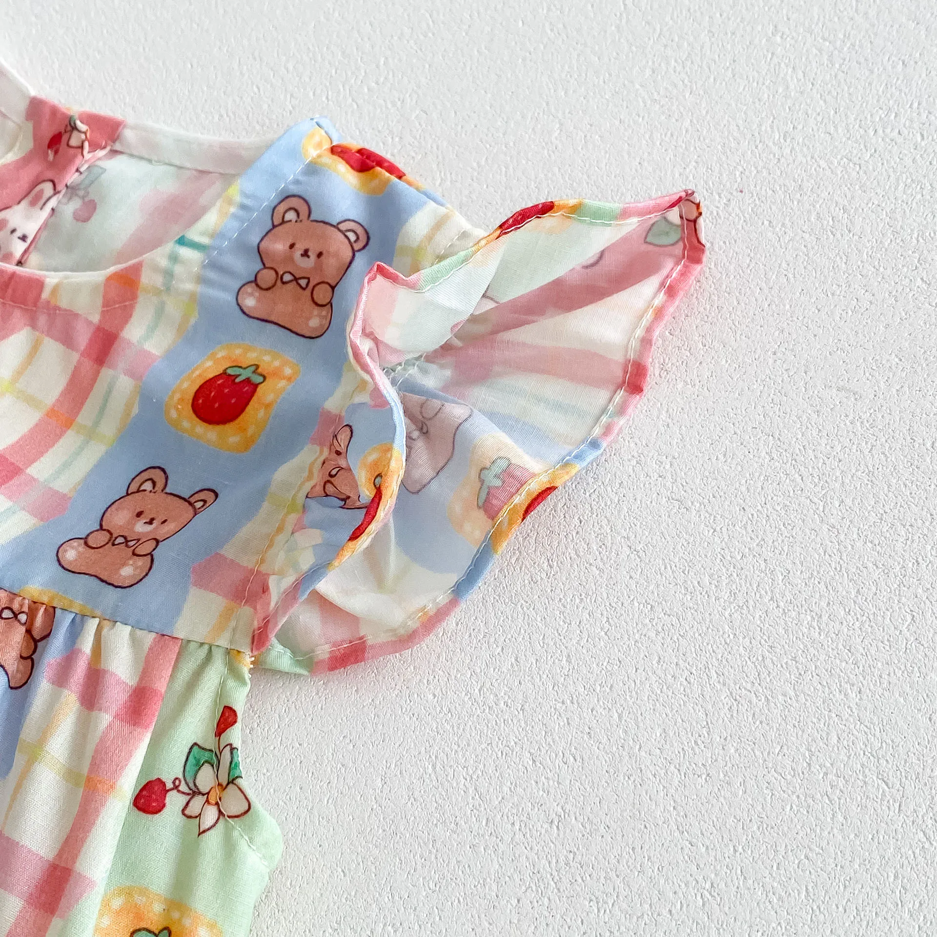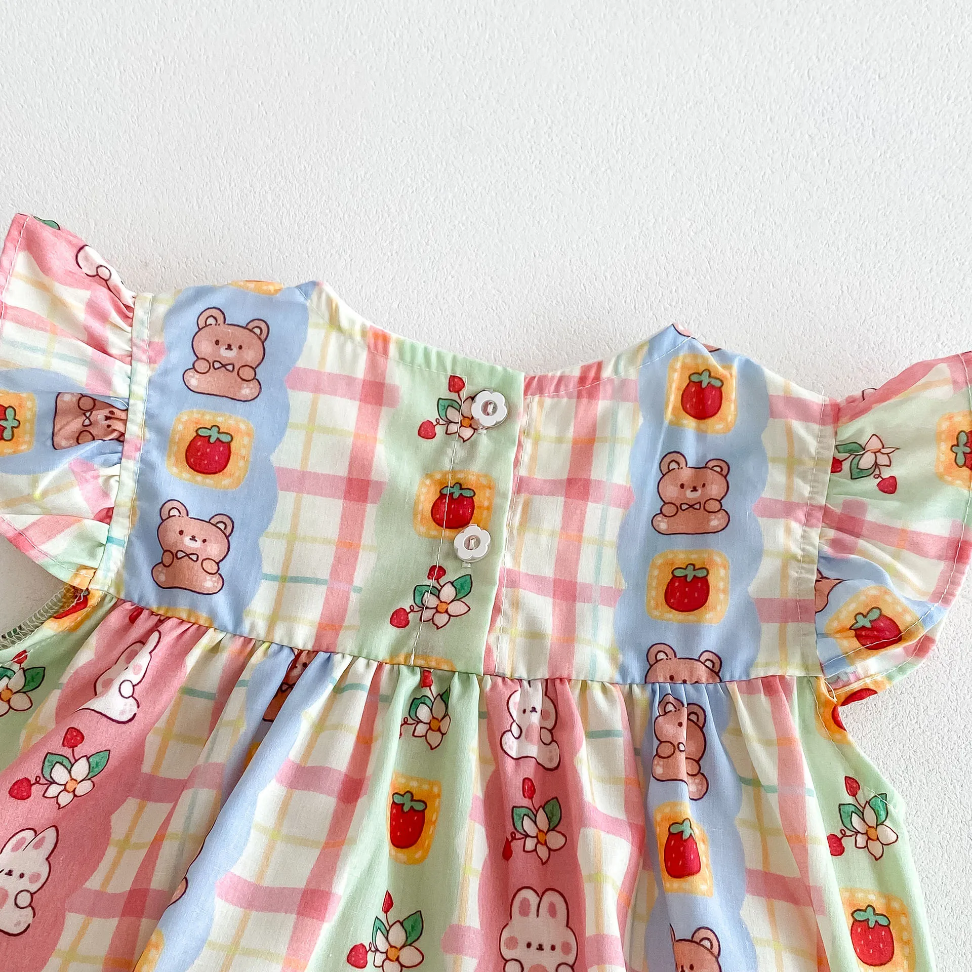 可愛らしいくまベアとうさぎのストライプレトロプリントが特徴のベビーロンパースです。フリルスリーブが女の子らしい華やかさを引き立て、デザインもおしゃれでキュート。柔らかなコットン素材で、赤ちゃんの肌に優しく、快適な着心地を提供します。スナップボタン付きで着脱もスムーズ。デイリーユースから特別な日まで、あらゆるシーンで活躍するロンパースをお楽しみください。