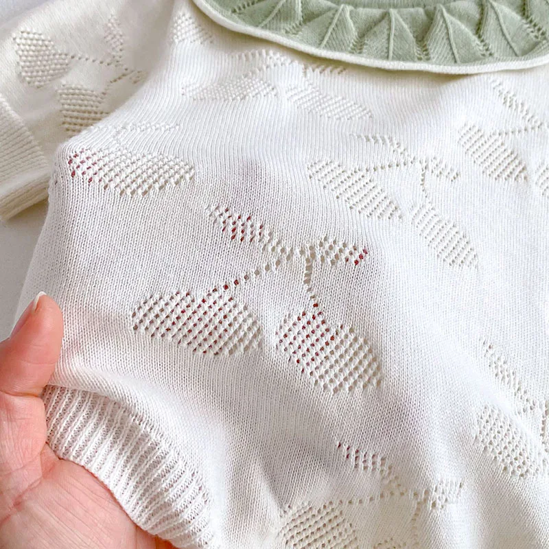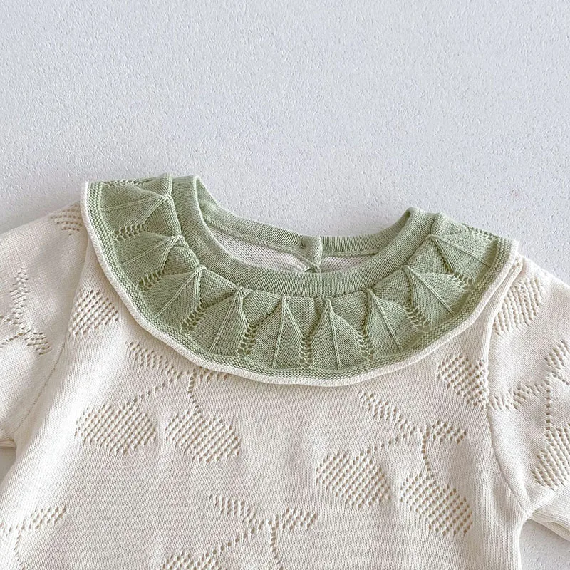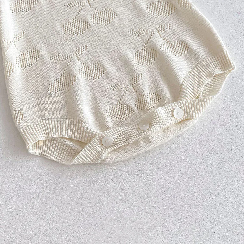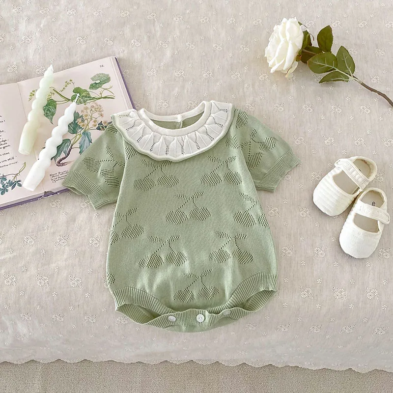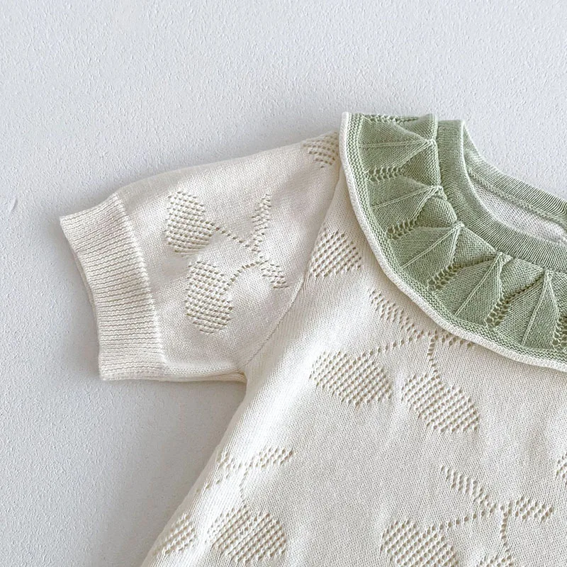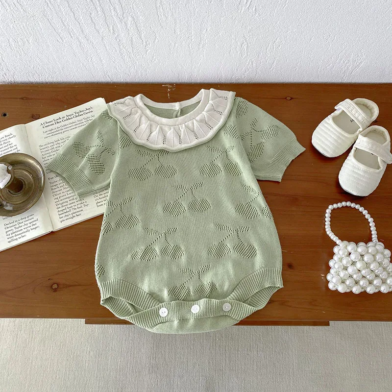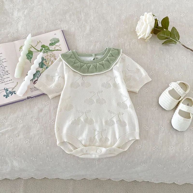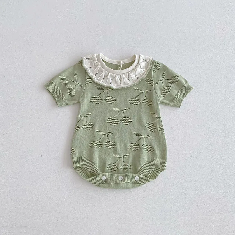 ベビーロンパース ニット 半袖ボディスーツ フリル襟 チェリー 2カラー【mh0006550】