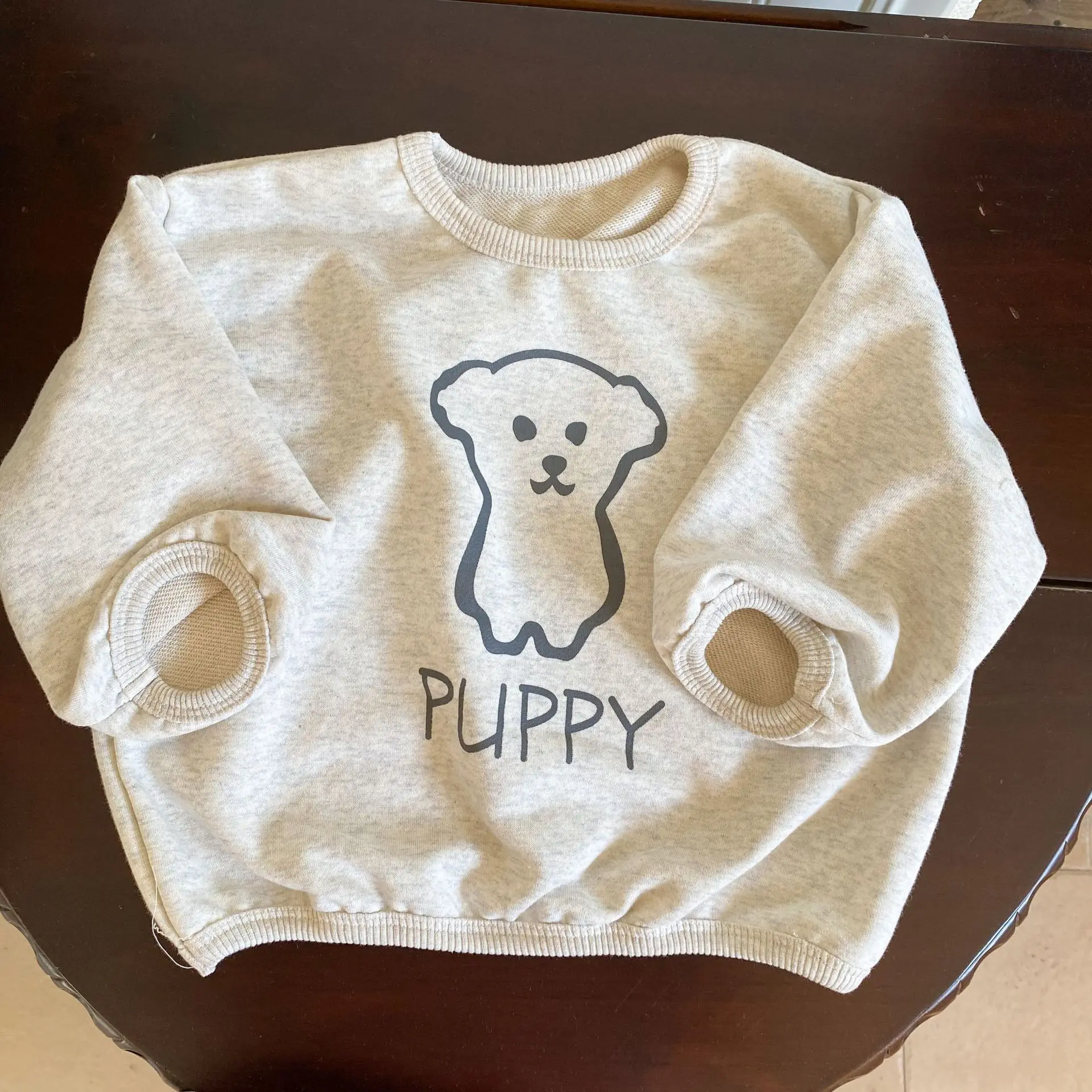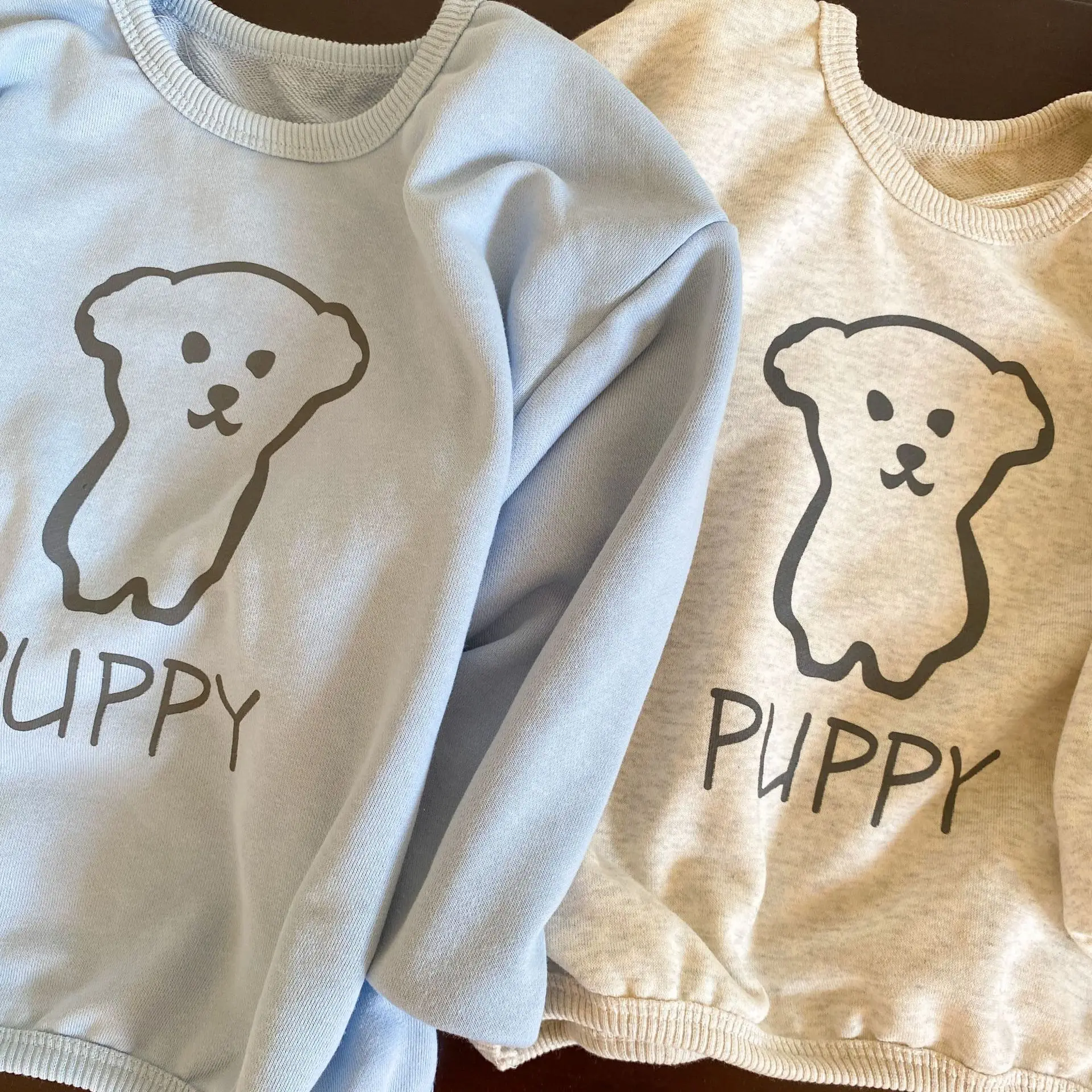 キッズトップス 長袖PUPPY犬プリントスウェットTシャツ 2カラー【mh0006688】