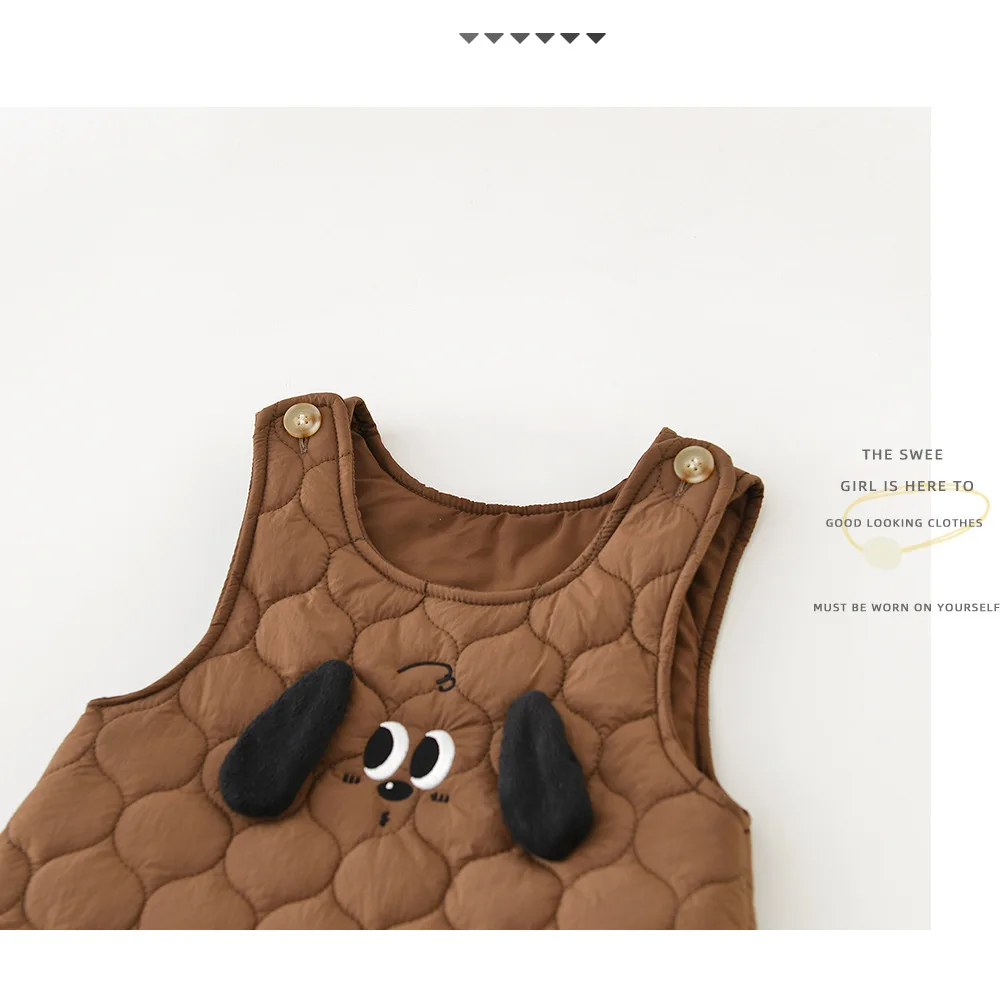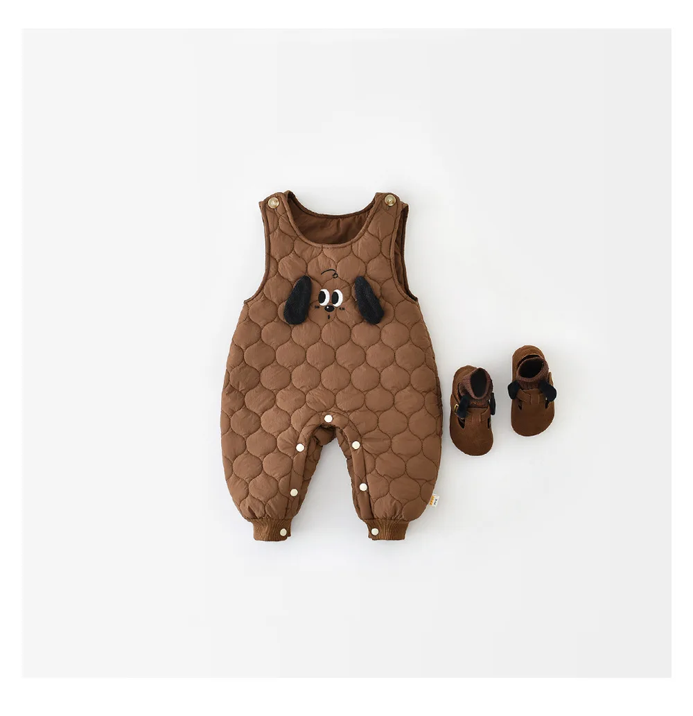 ベビージャンプスーツ 犬ドッグアップリケキルティングノースリーブロンパース【mh0007790】