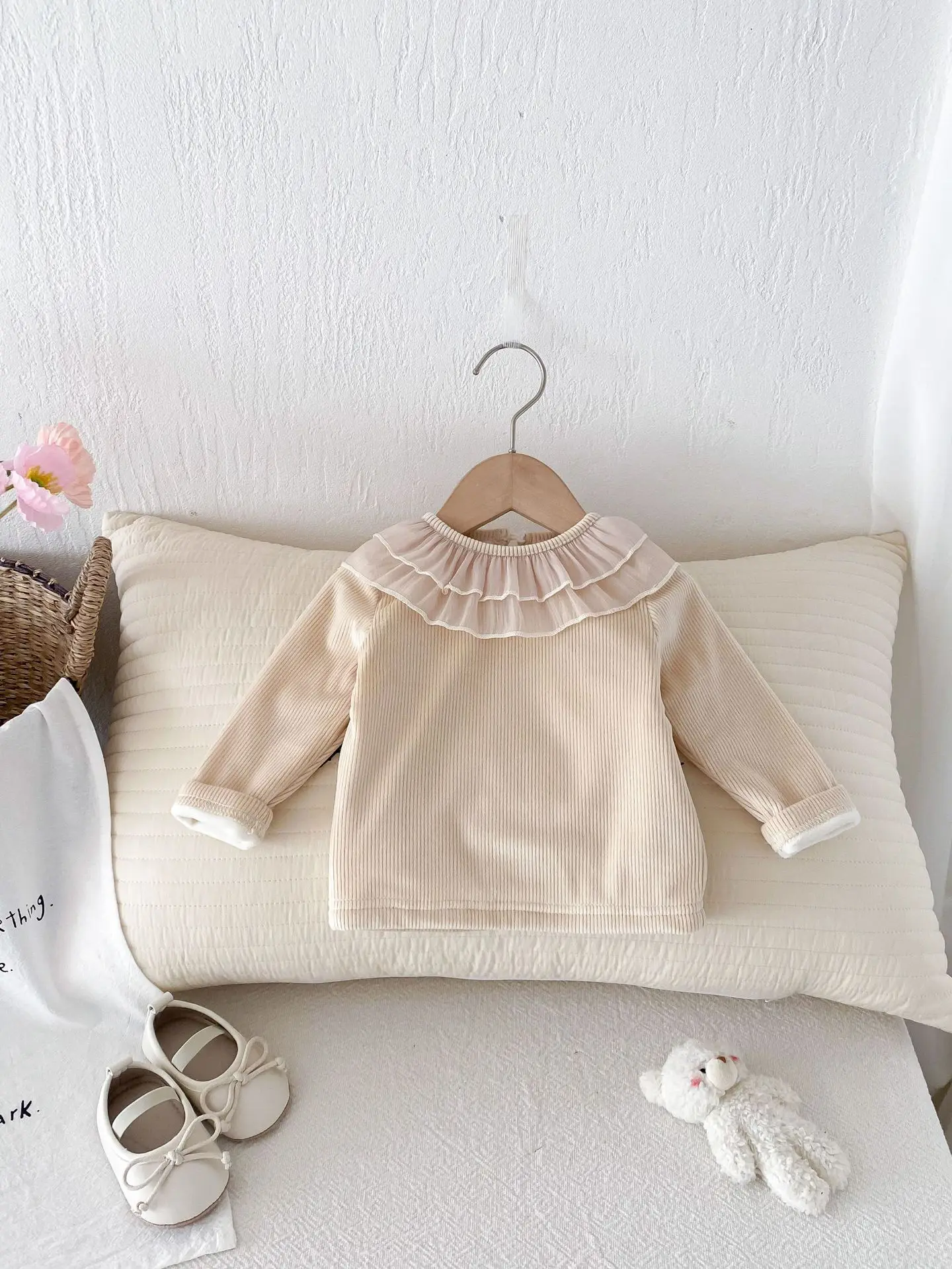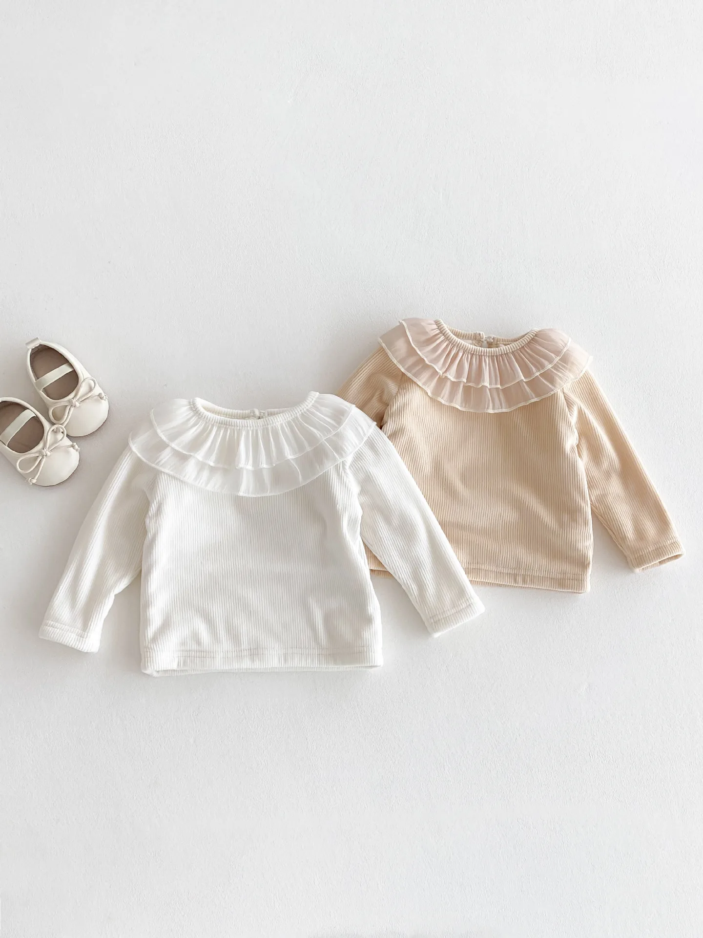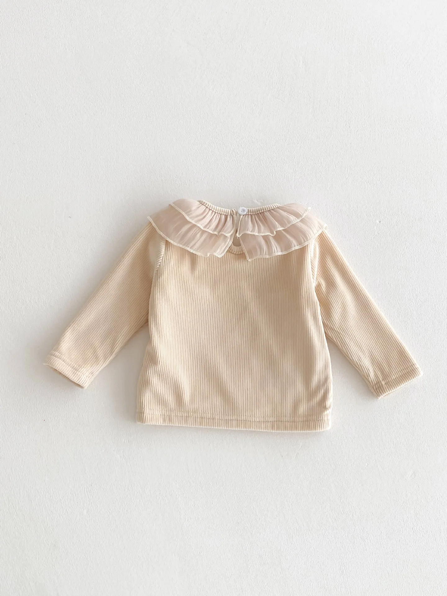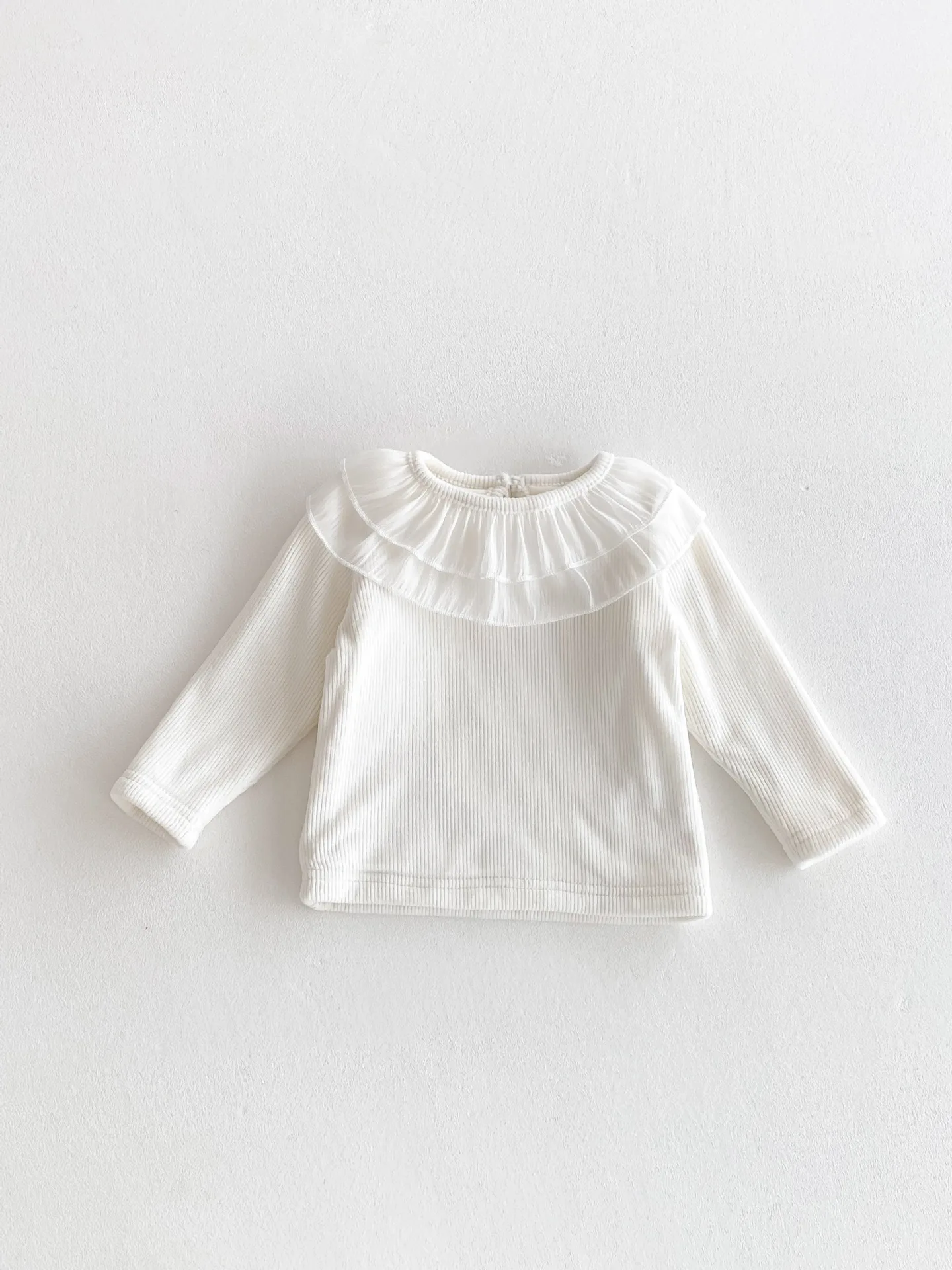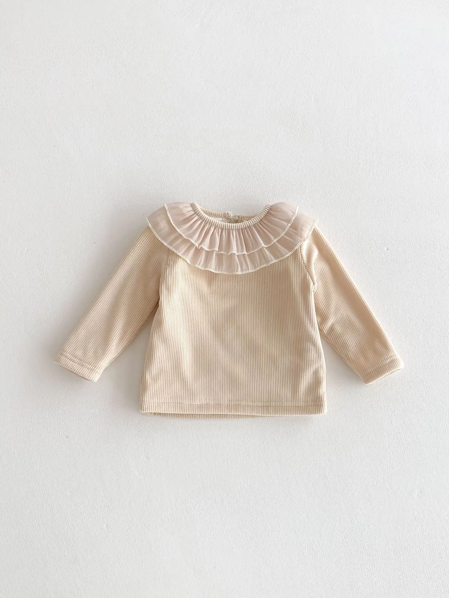 ベビートップス ダブルラッフル襟裏フリース長袖Tシャツブラウス【mh0008206】