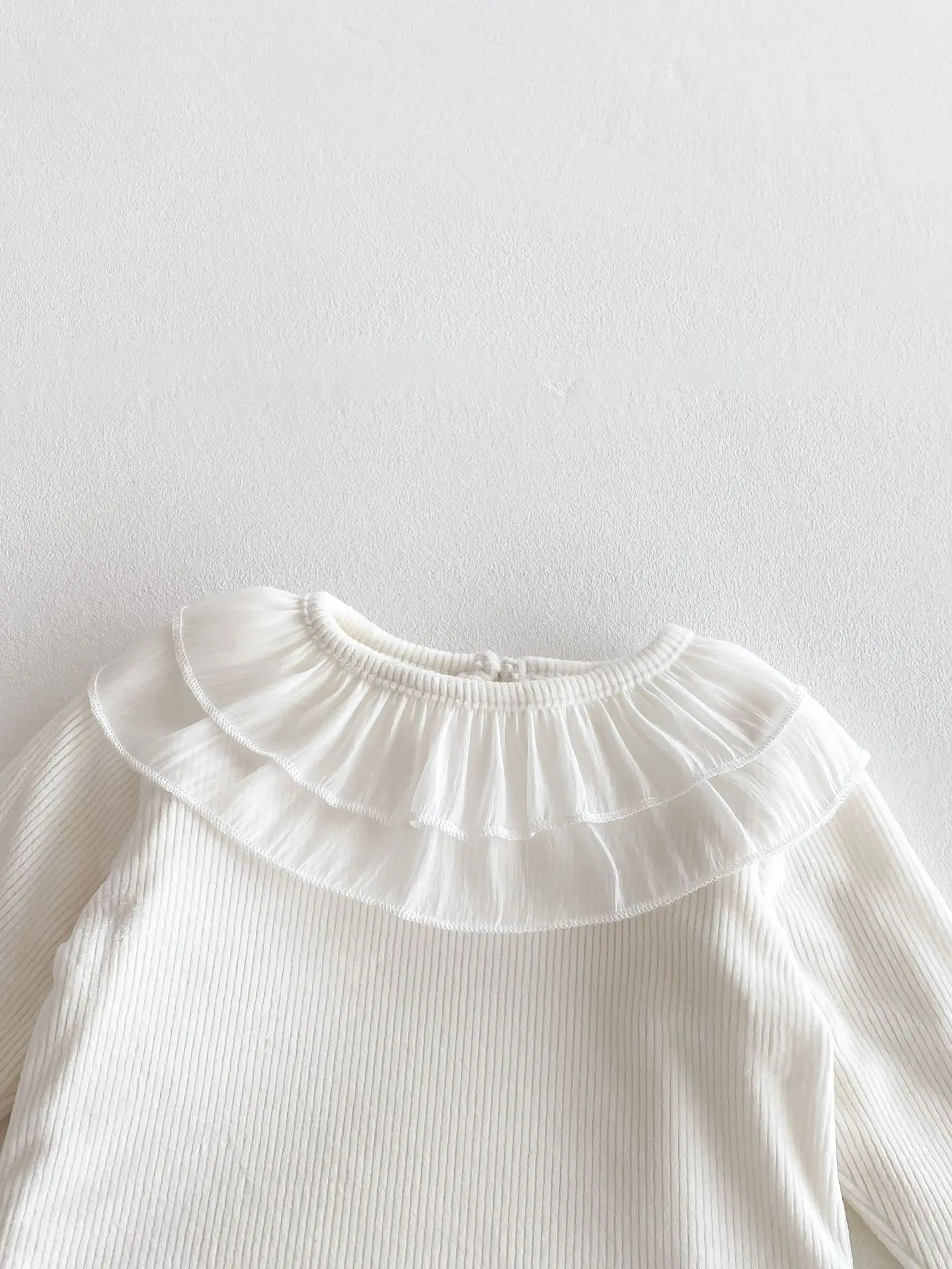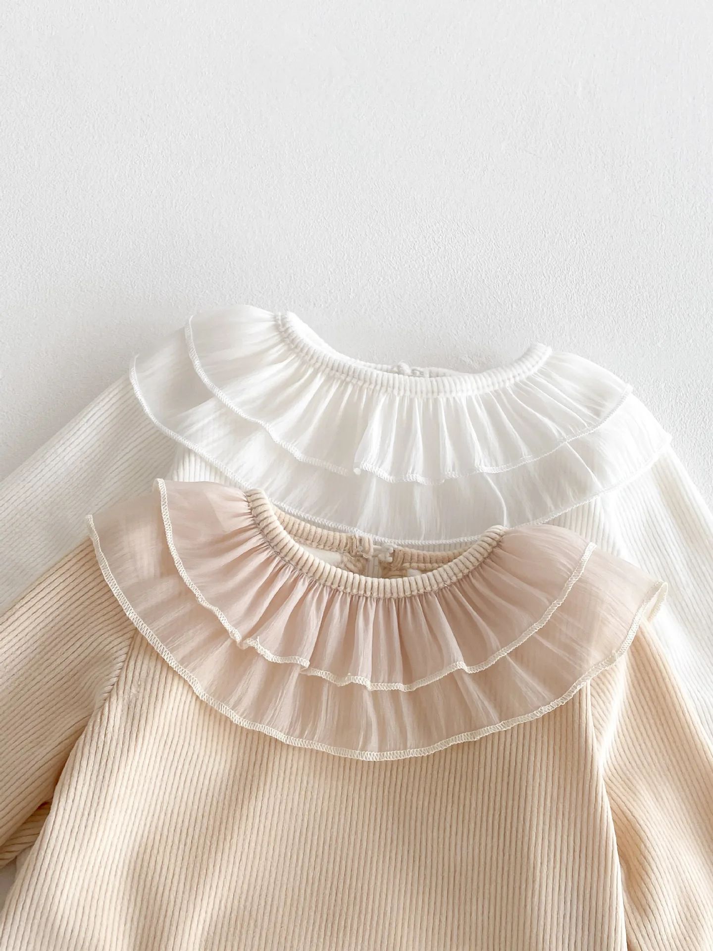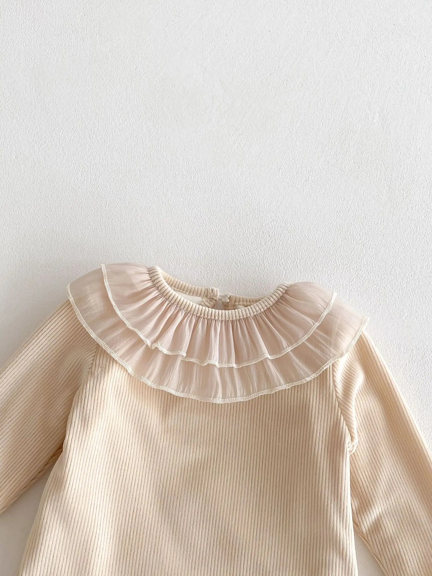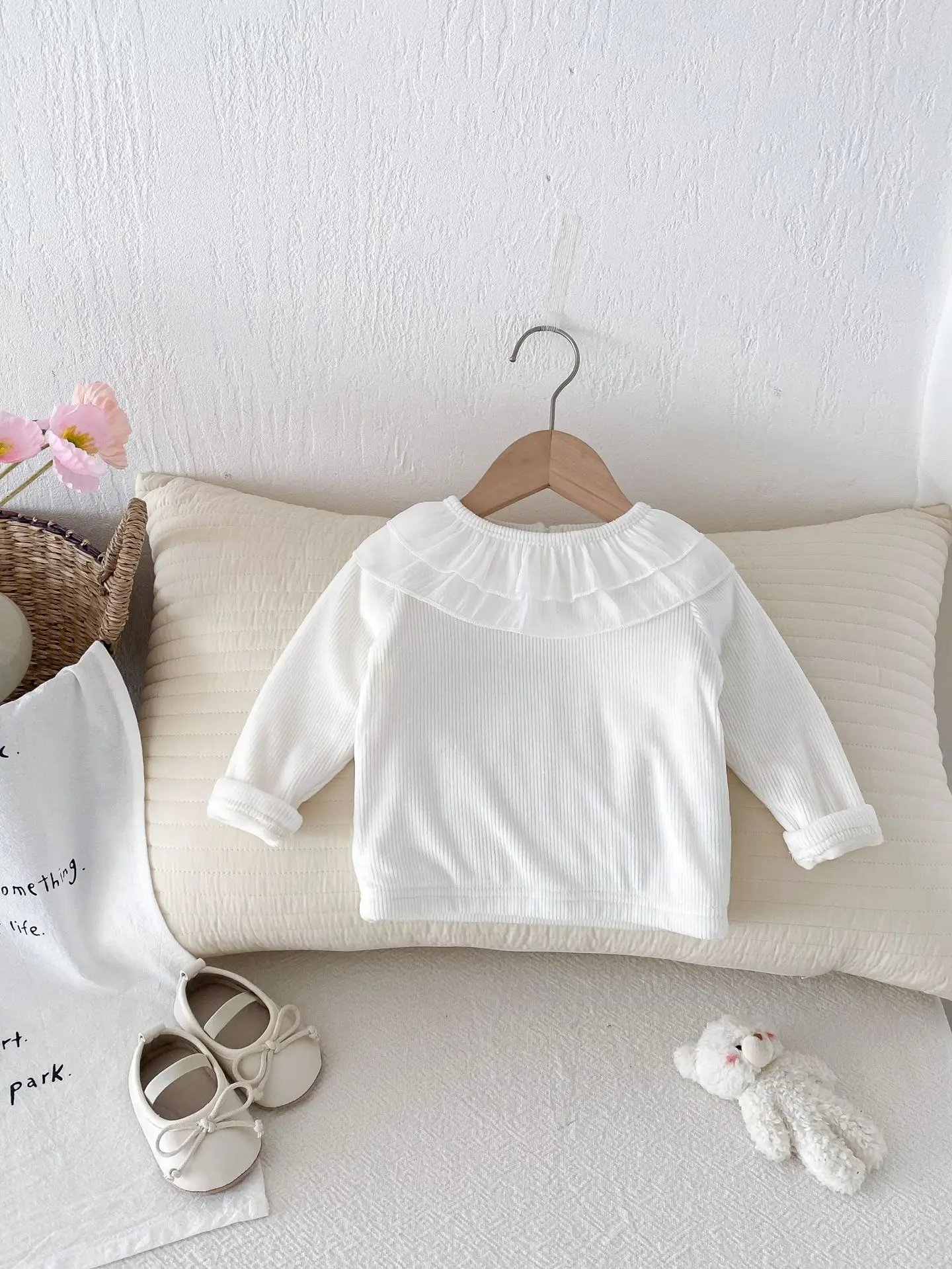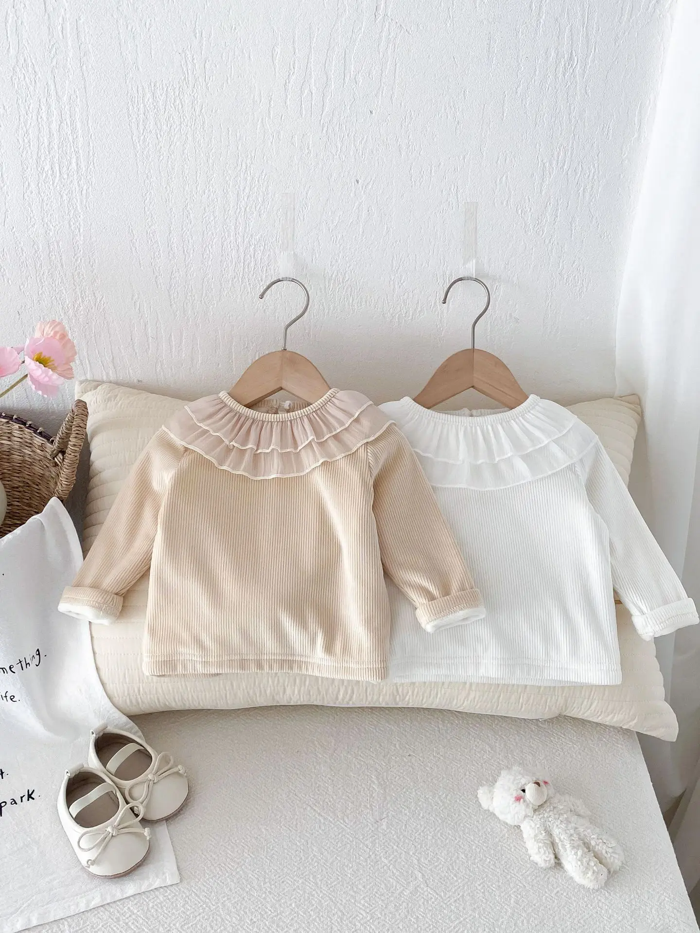 ベビートップス ダブルラッフル襟裏フリース長袖Tシャツブラウス【mh0008206】