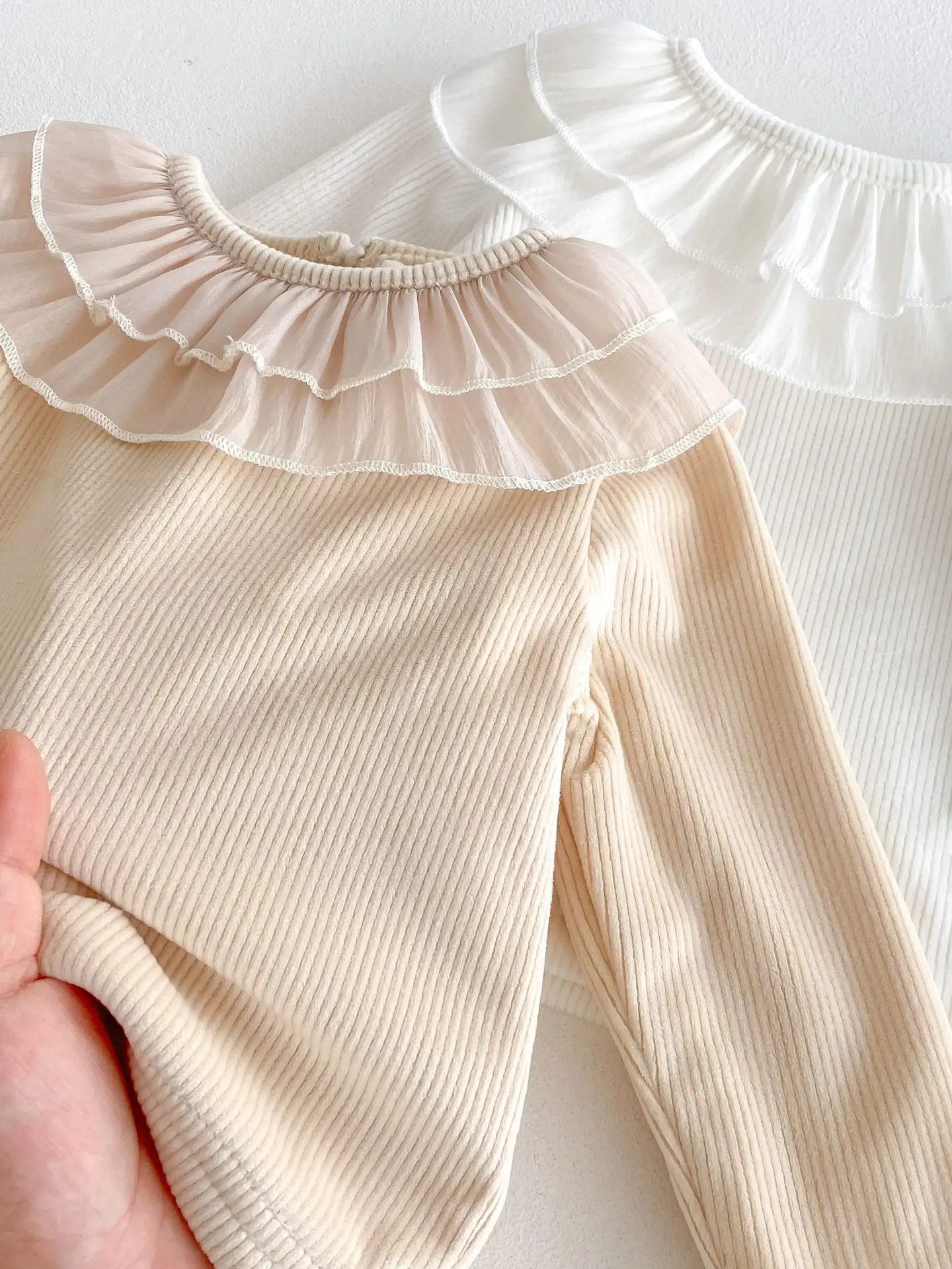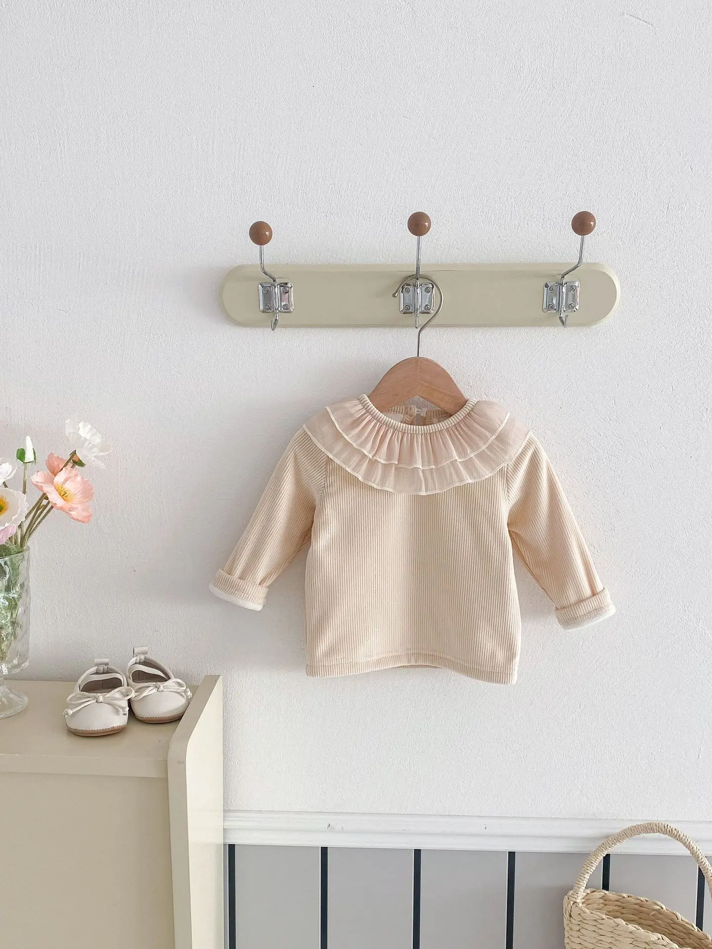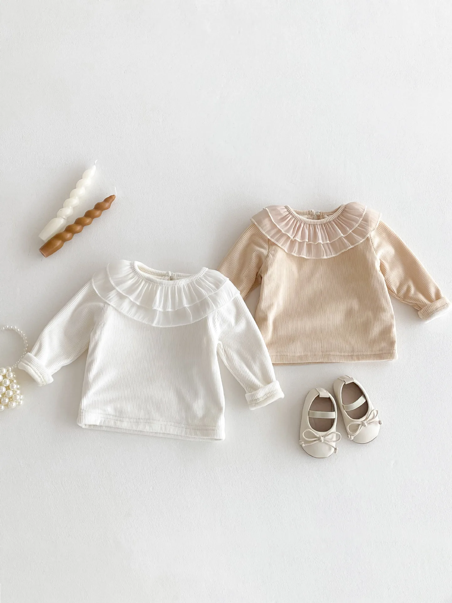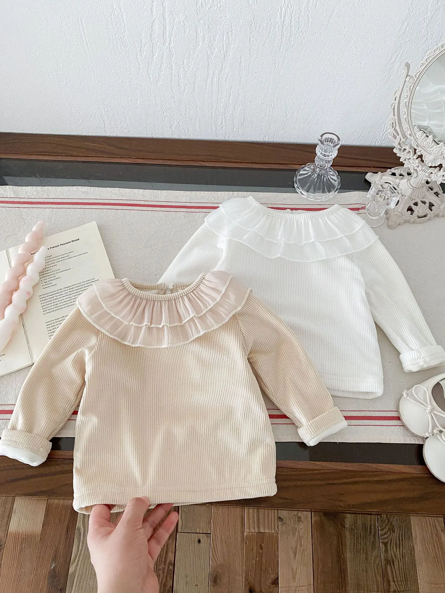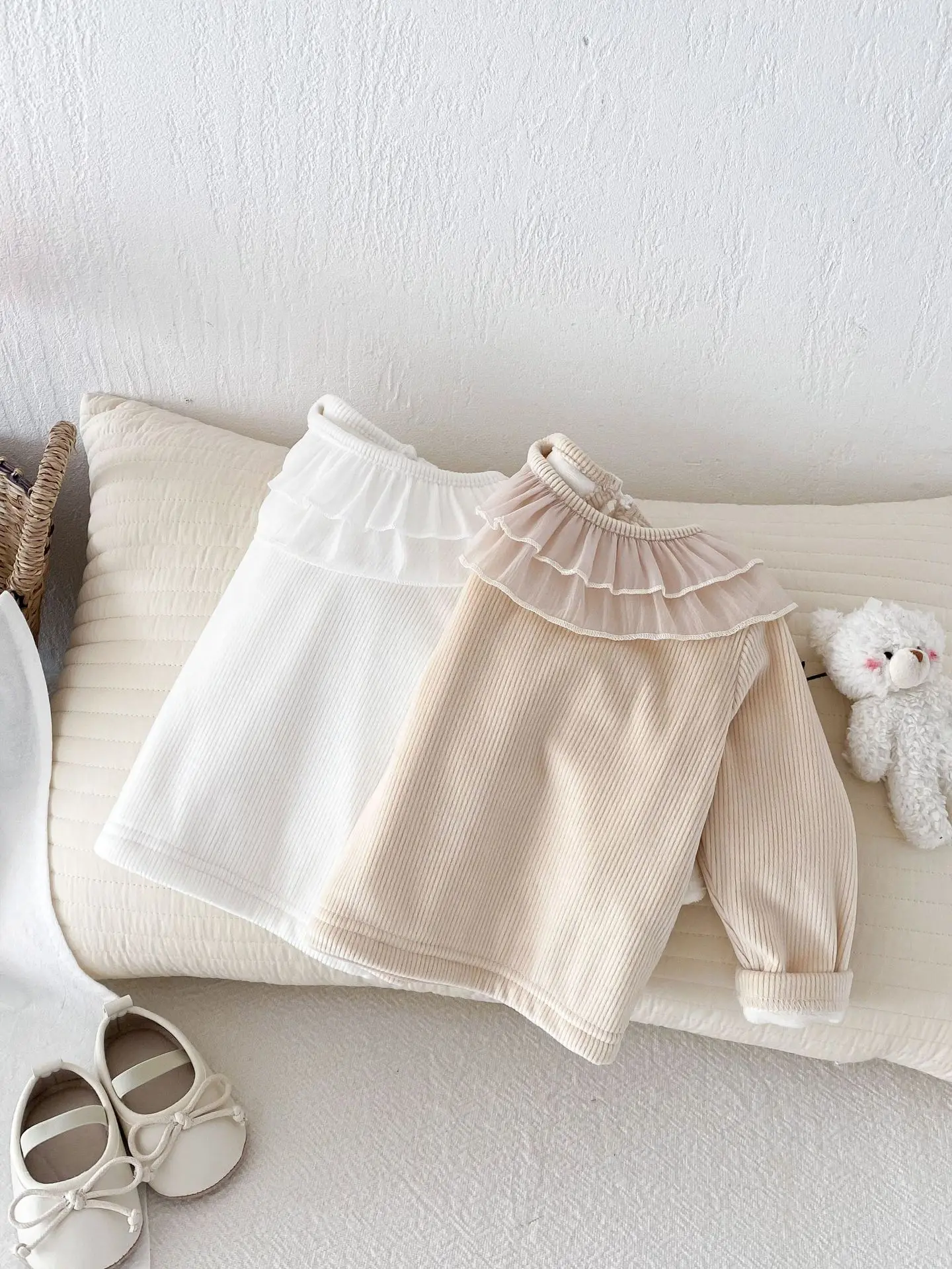 ベビートップス ダブルラッフル襟裏フリース長袖Tシャツブラウス【mh0008206】