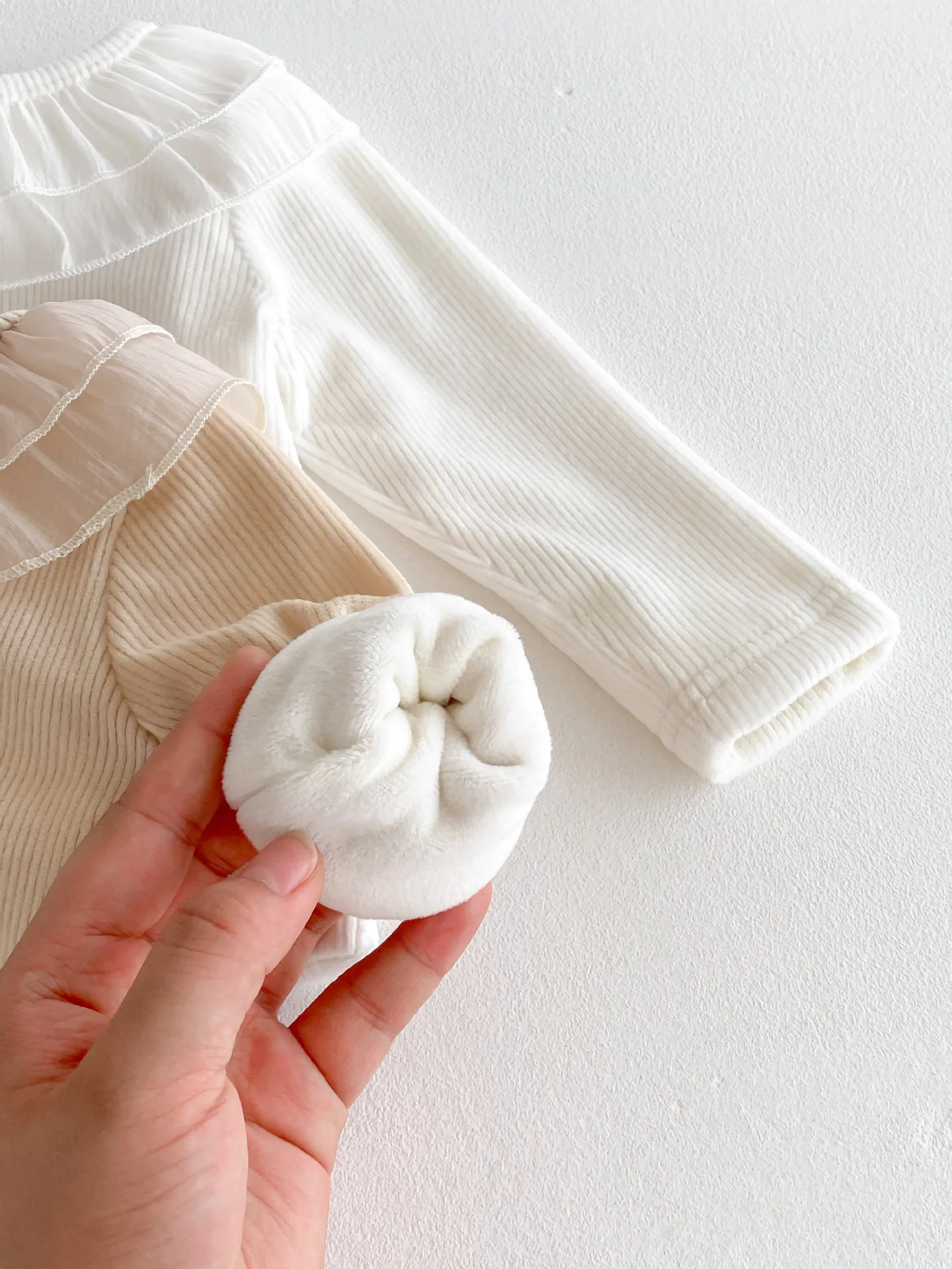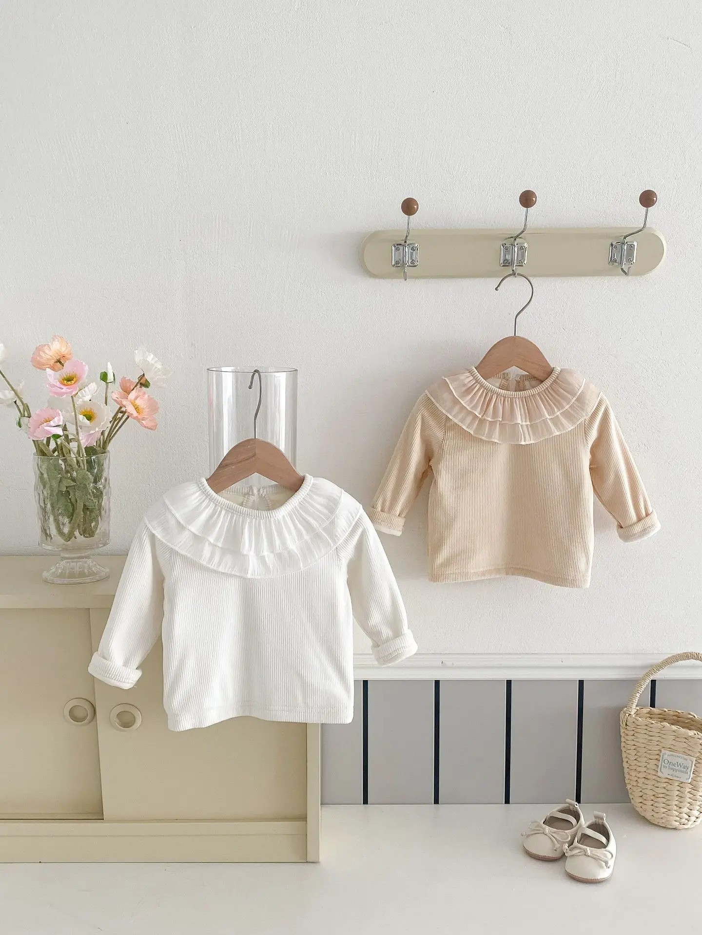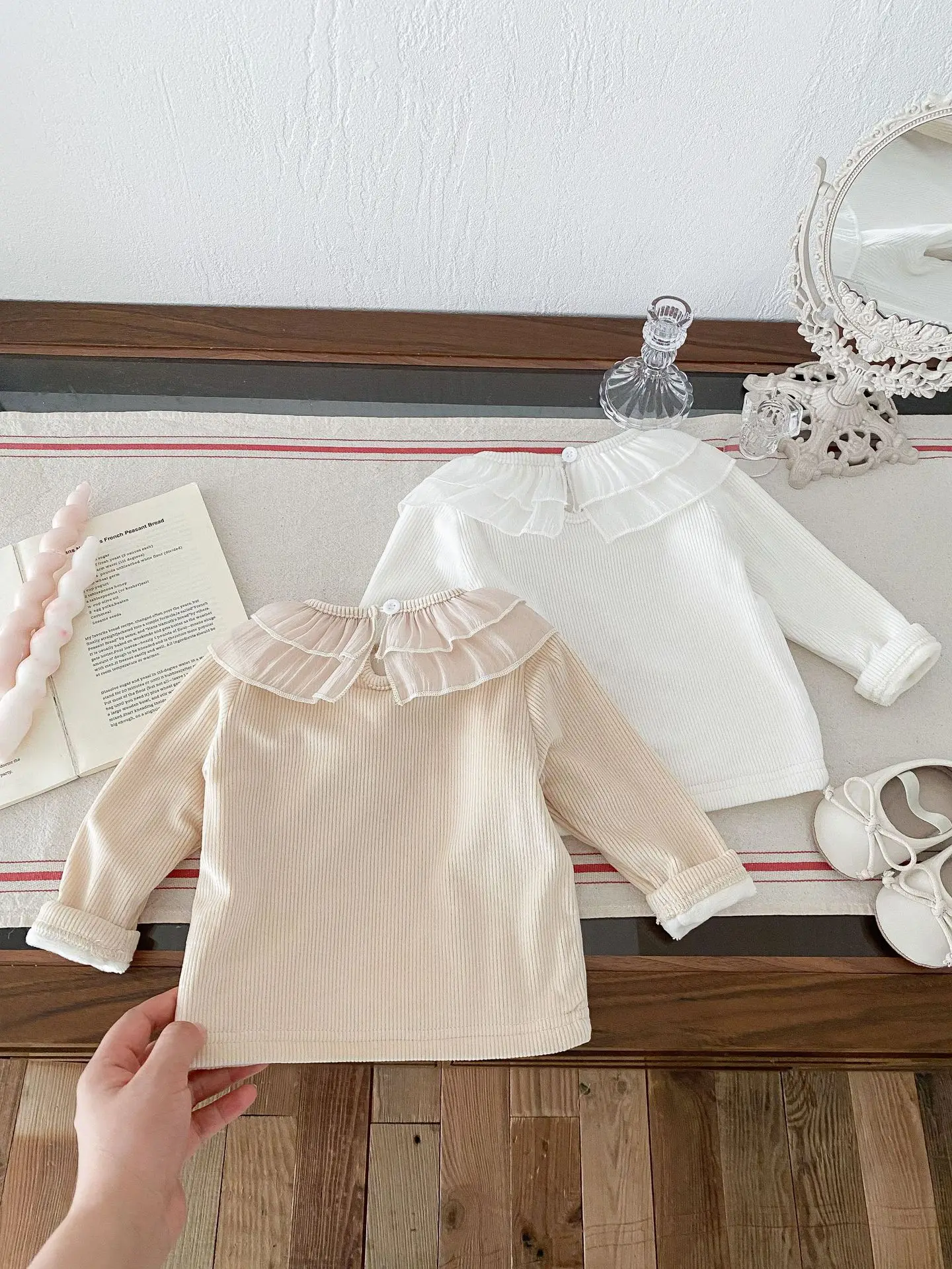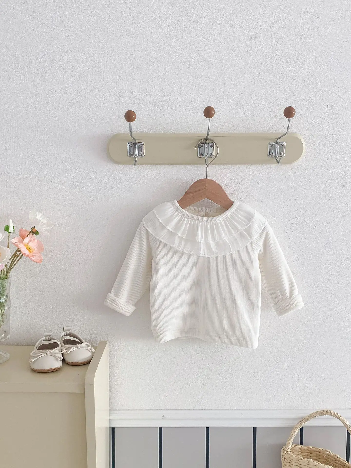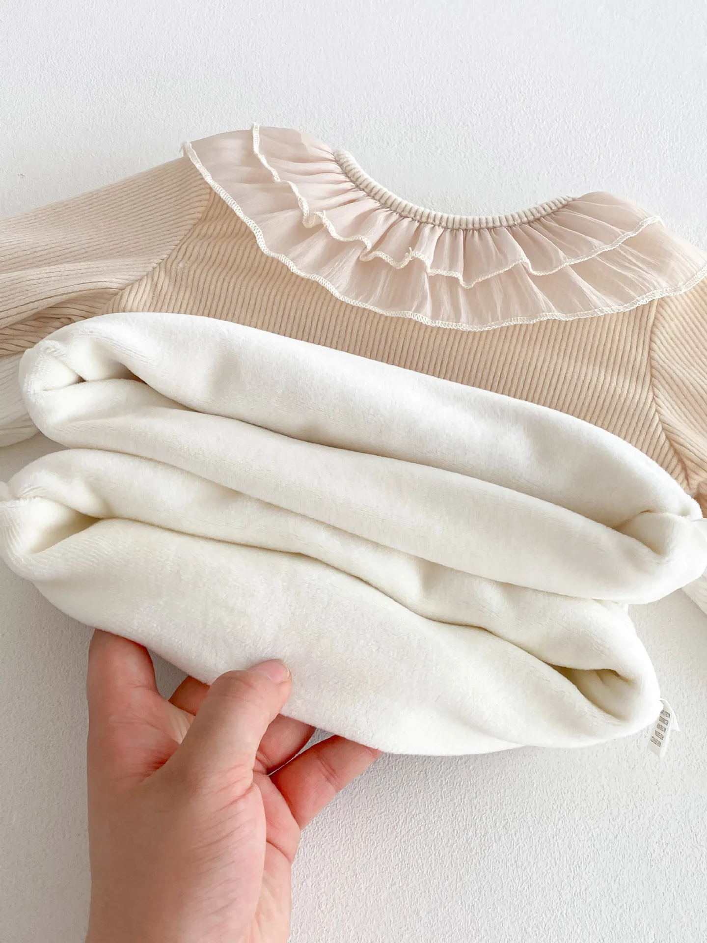 ベビートップス ダブルラッフル襟裏フリース長袖Tシャツブラウス【mh0008206】