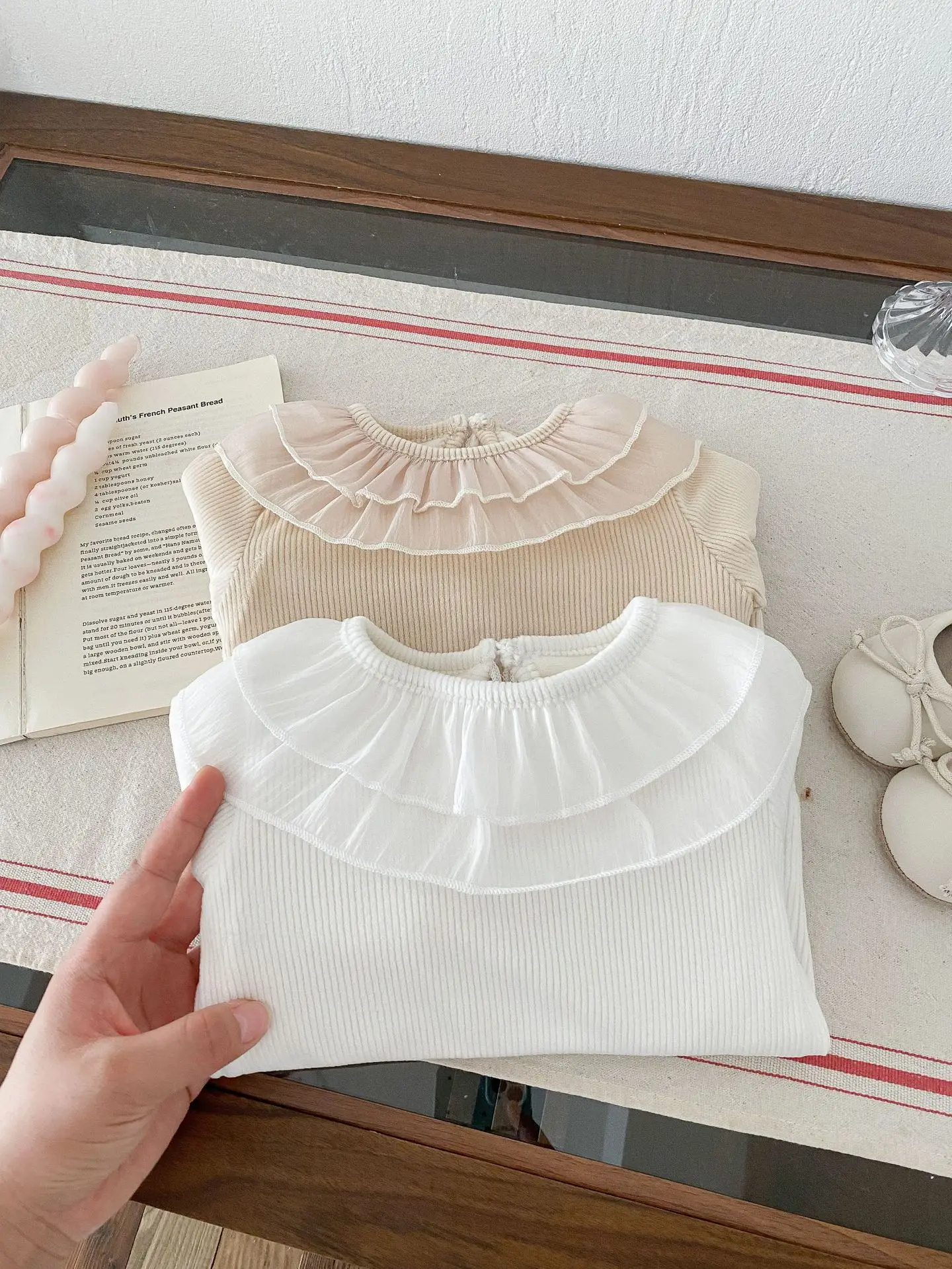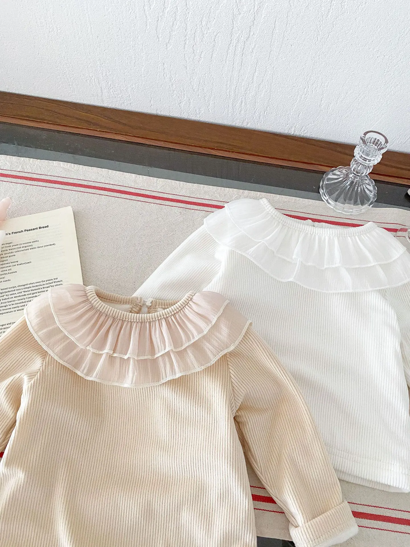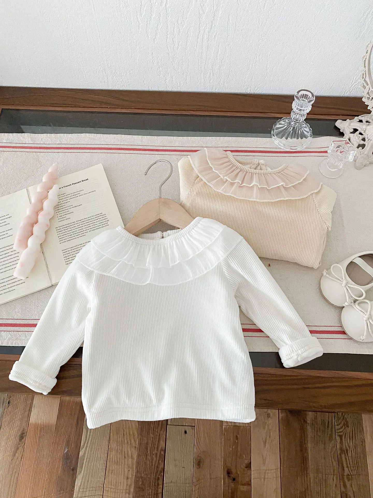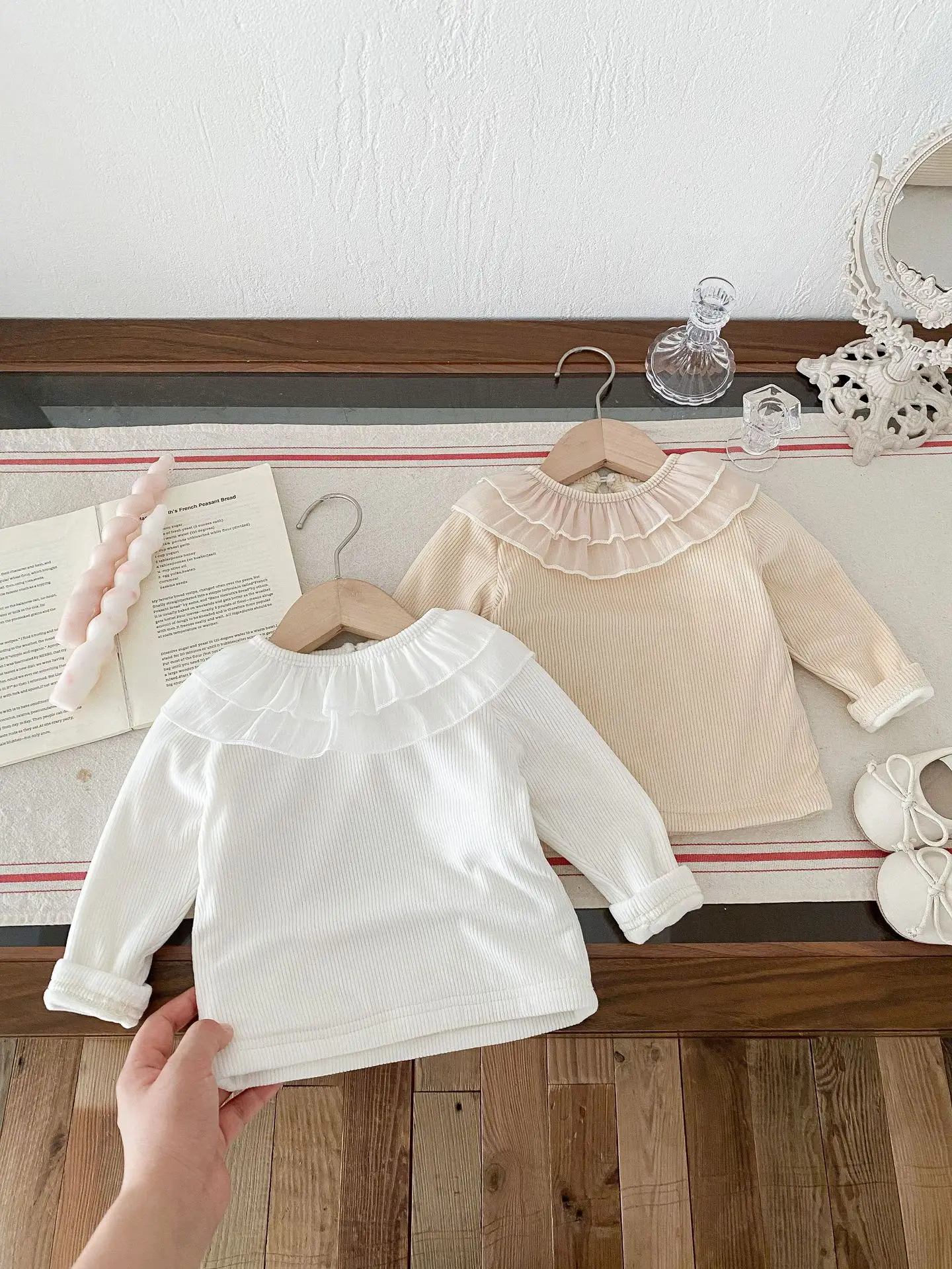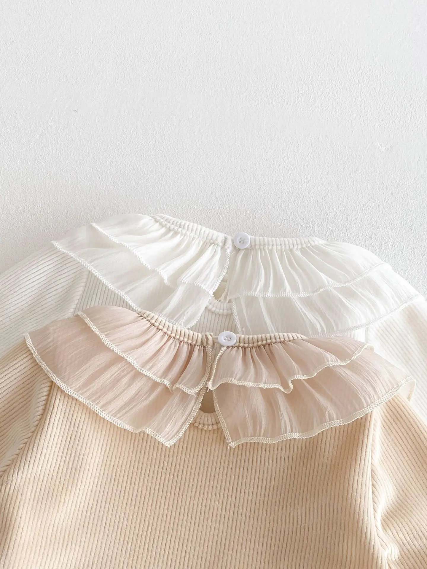 ベビートップス ダブルラッフル襟裏フリース長袖Tシャツブラウス【mh0008206】