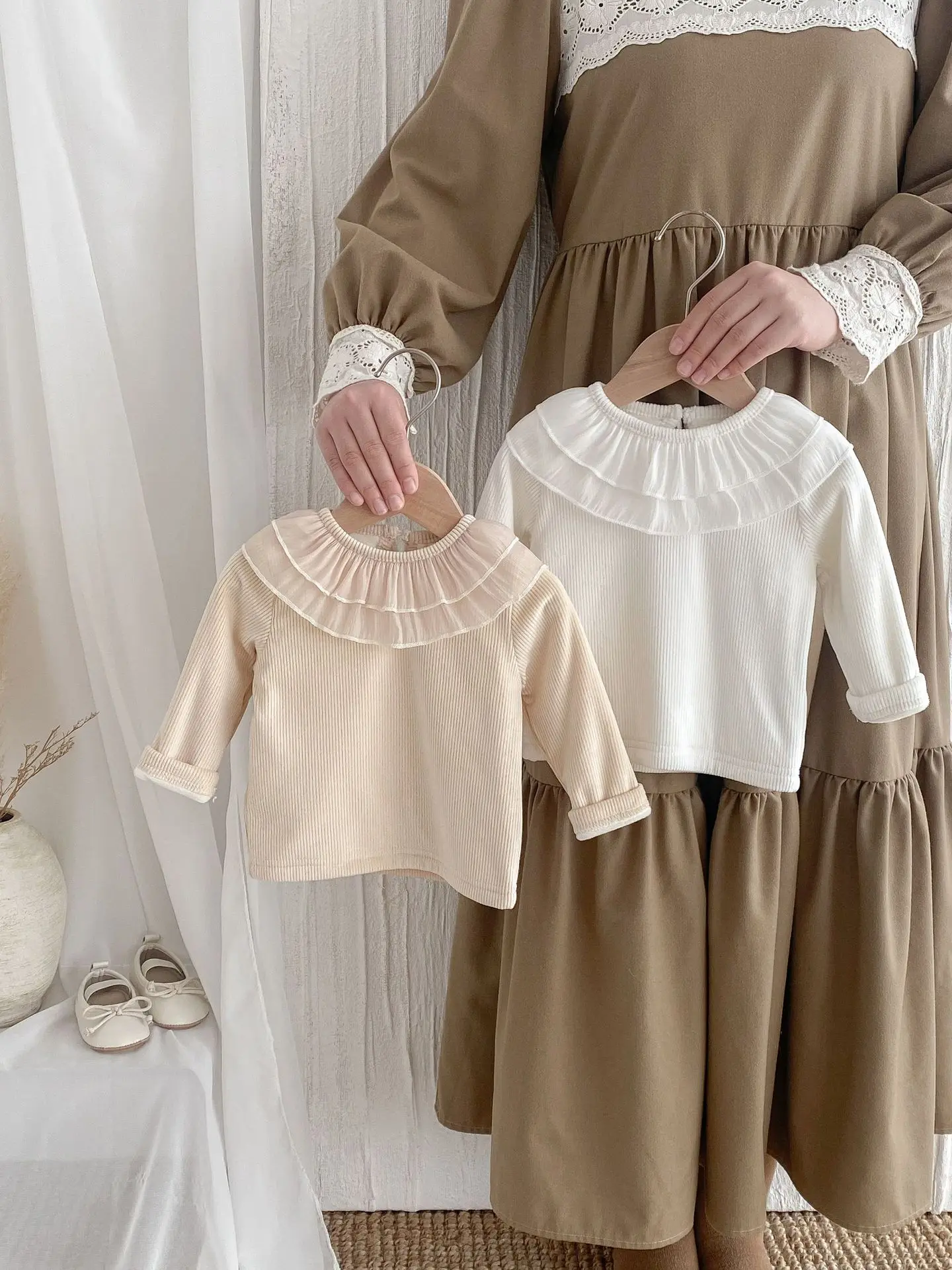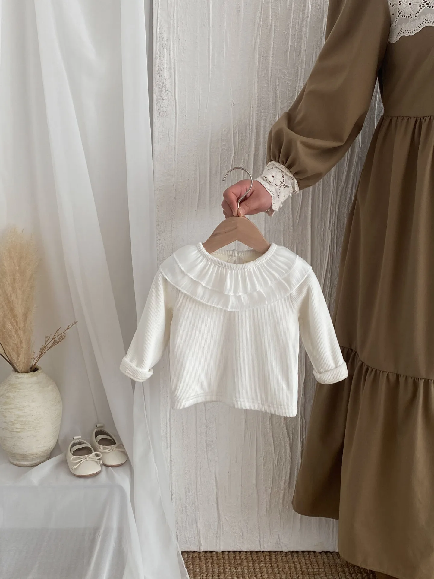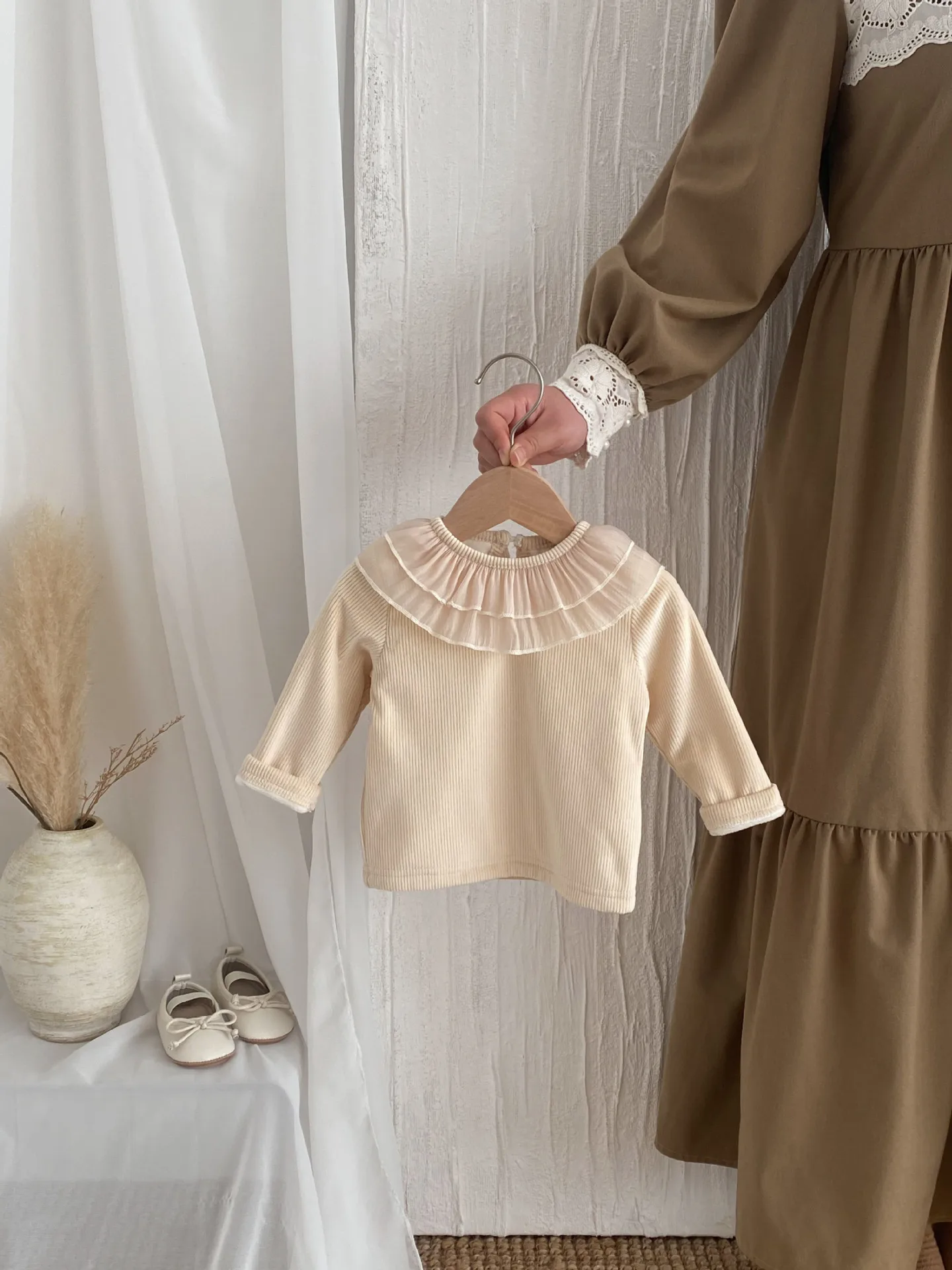 #ベビートップス #ラッフル襟 #フリース #長袖Tシャツ #暖かい #子供服 #冬コーデ
