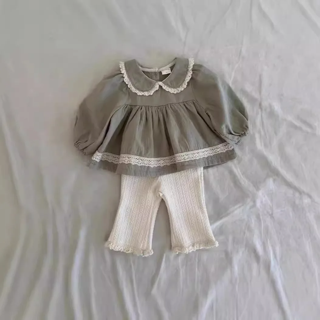 #ベビーファッション #レースデザイン #丸襟ブラウス #裾レースレギンス #赤ちゃん用服 #おしゃれベビー #韓国子供服