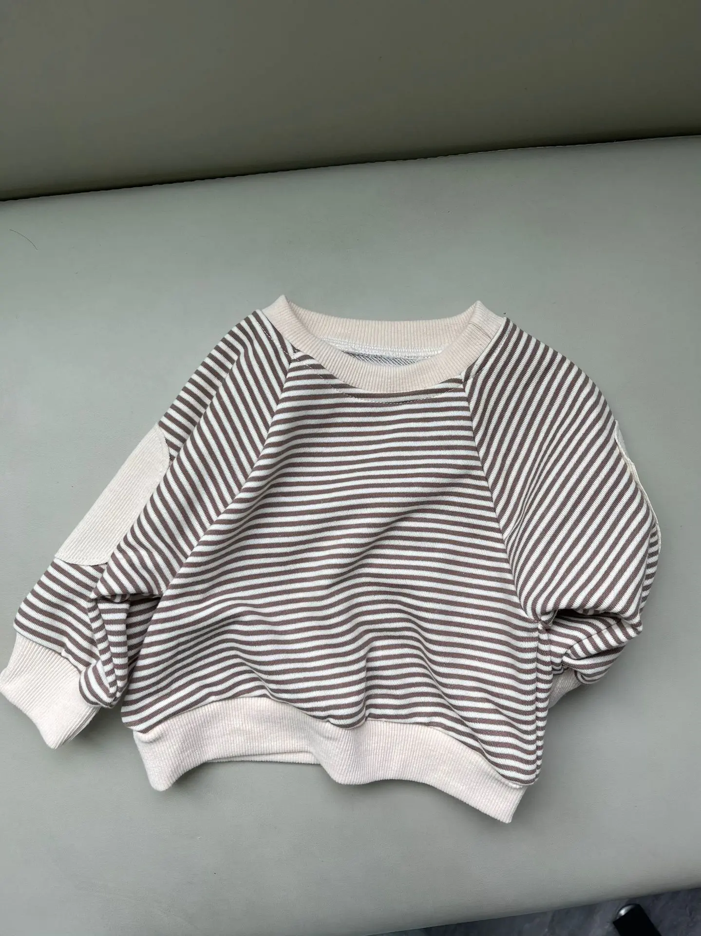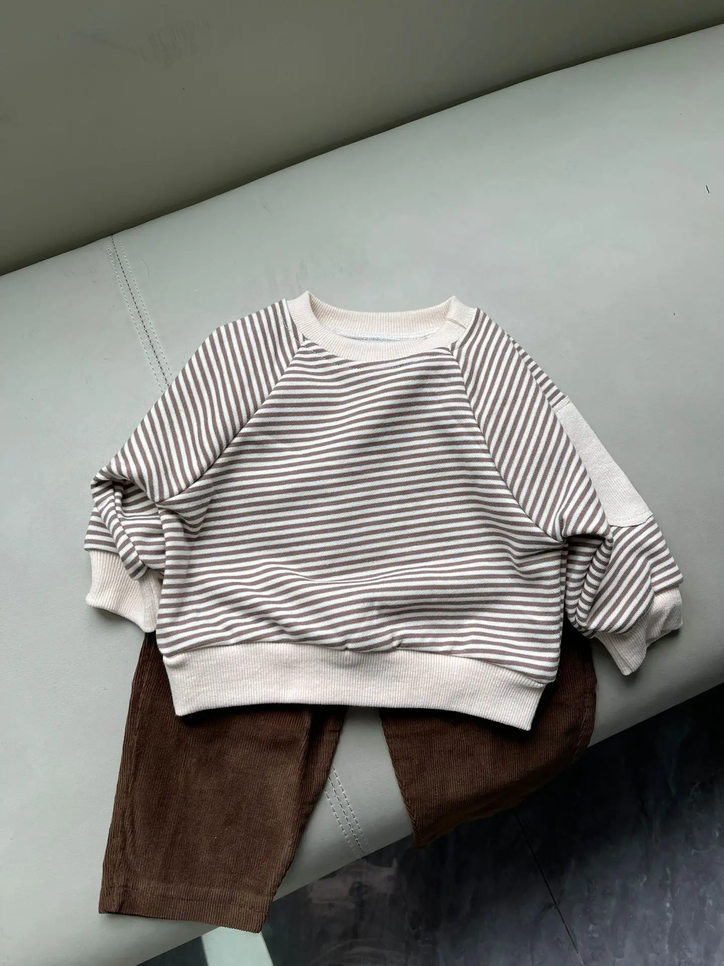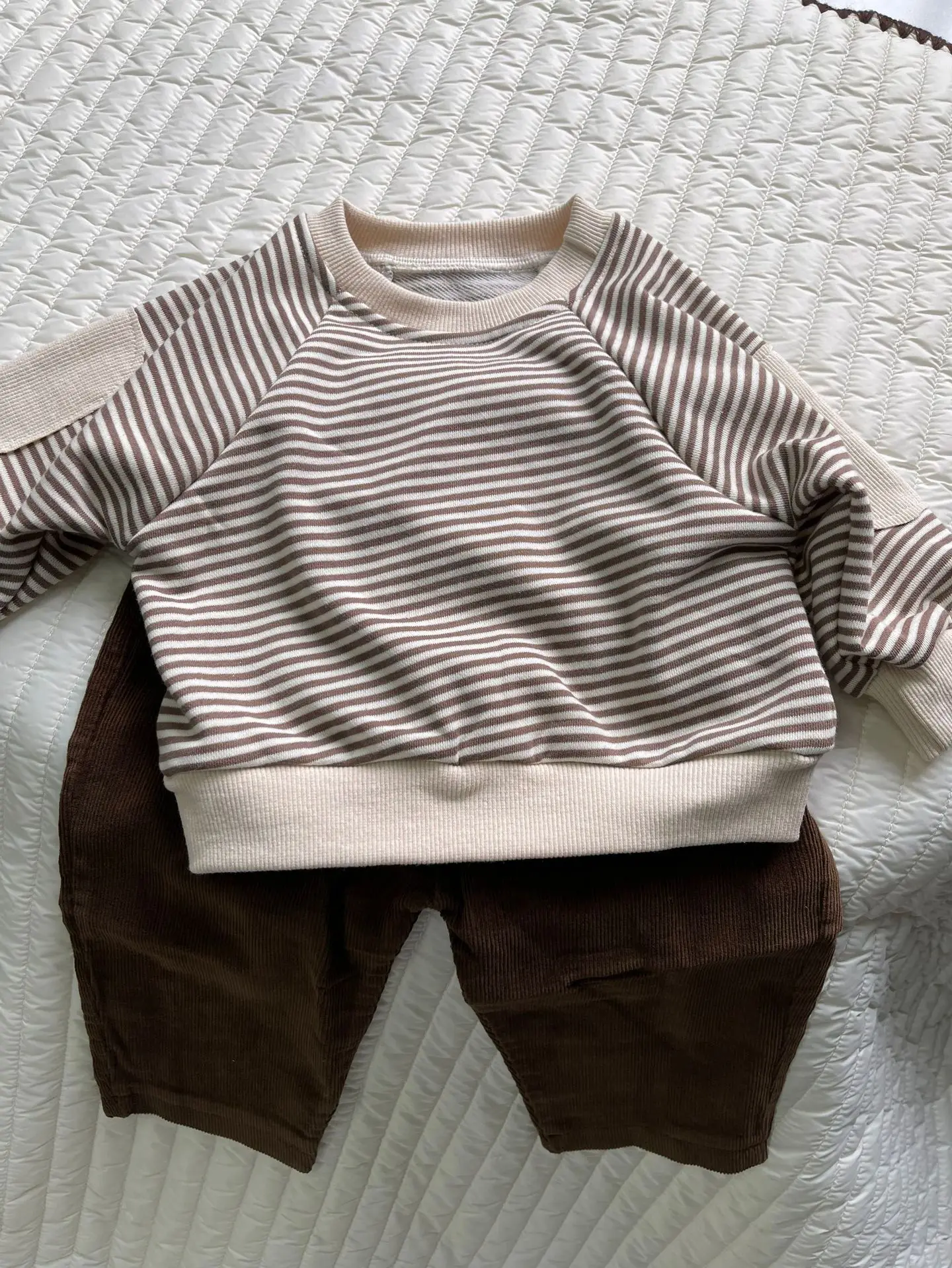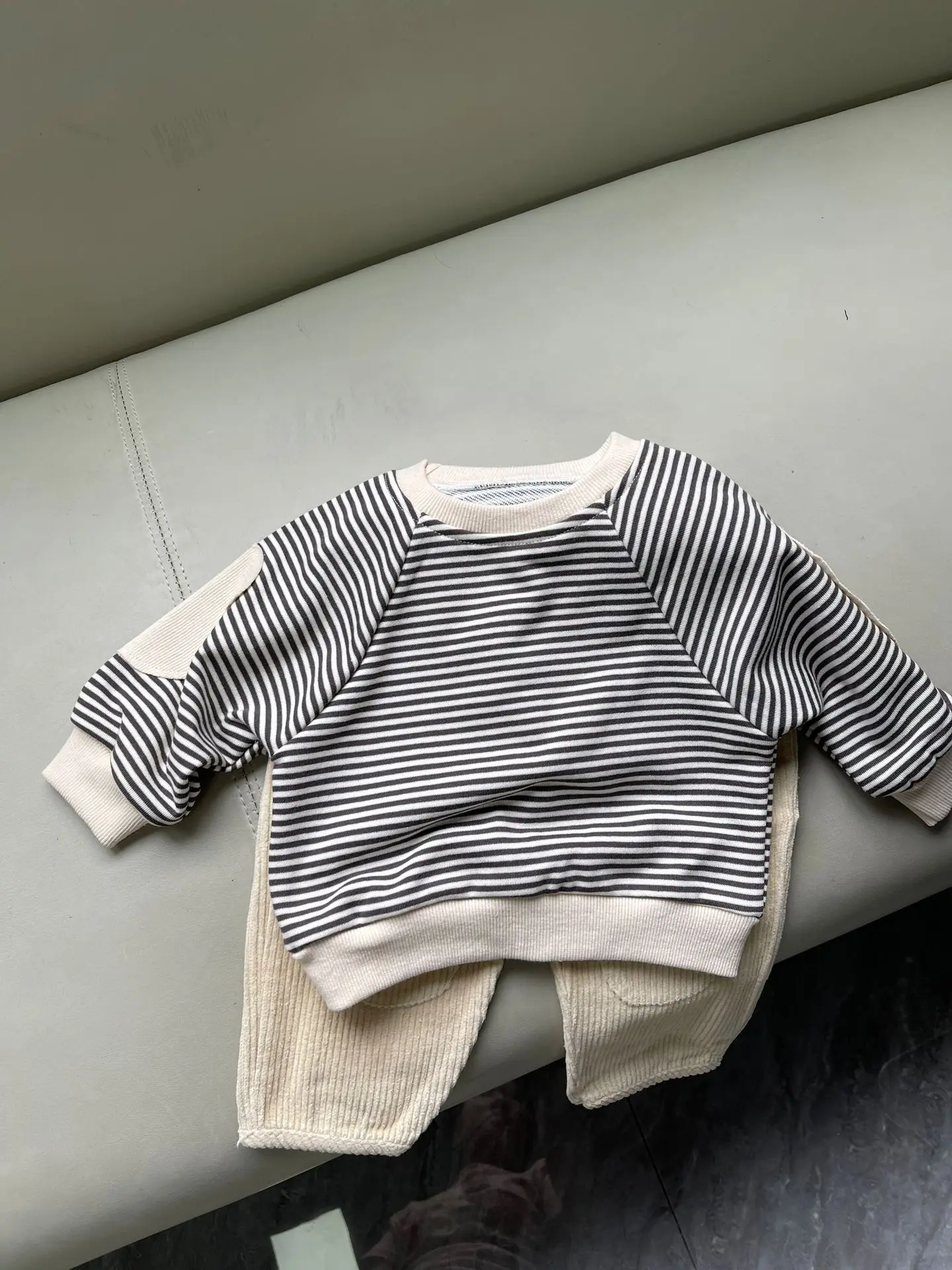 #ベビーファッション #ボーダーTシャツ #肘パッチ #長袖トップス #カジュアルスタイル #赤ちゃん用服 #韓国子供服
