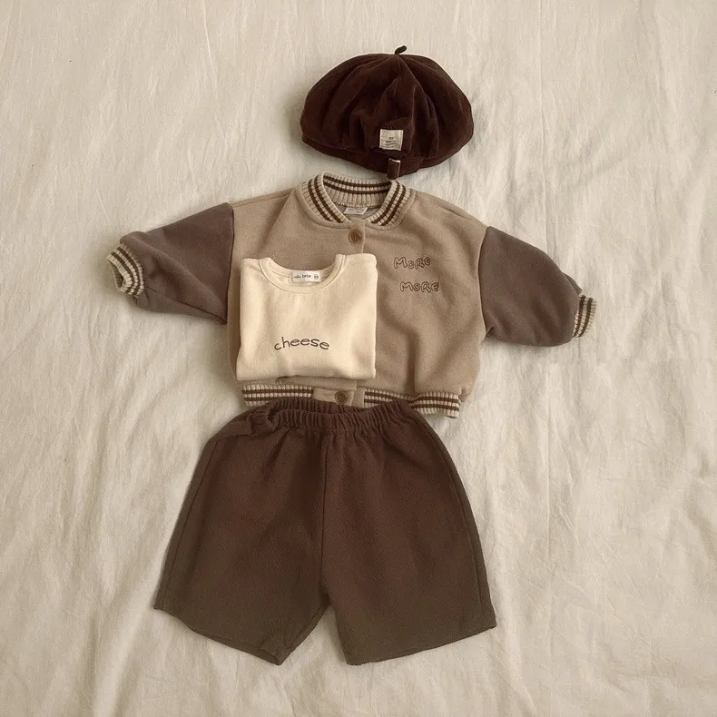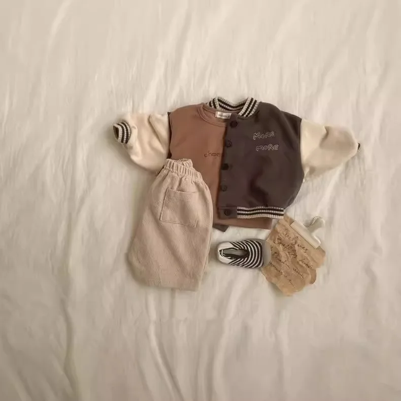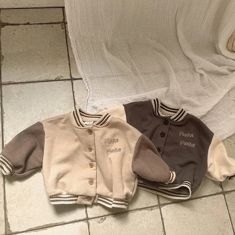 #ベビーアウター #スタジアムジャンパー #レターロゴ #カジュアルブルゾン #赤ちゃん服 #軽やかアウター #コットン素材