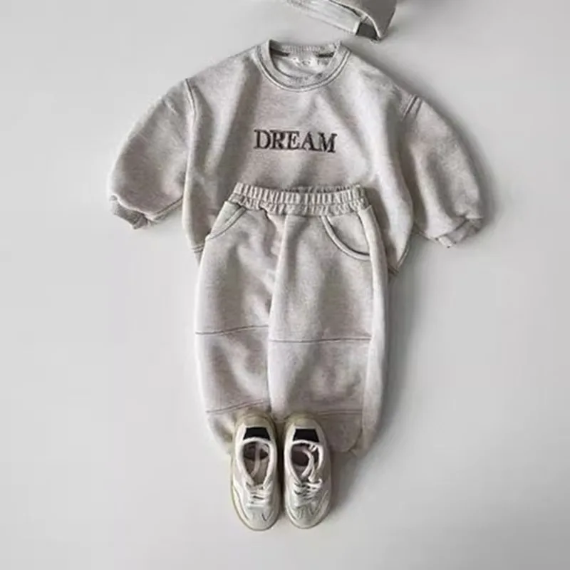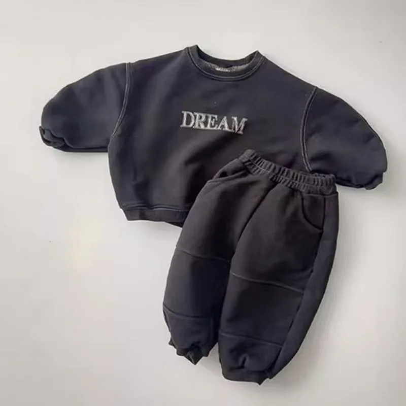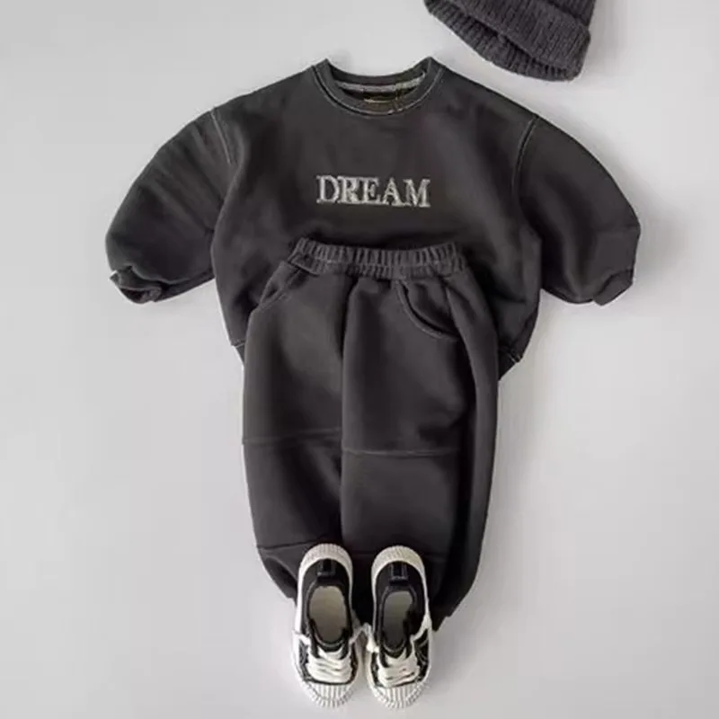 キッズセットアップ 2点セット レターロゴプリント長袖スウェットシャツ+ロングスウェットパンツ【mh0008329】