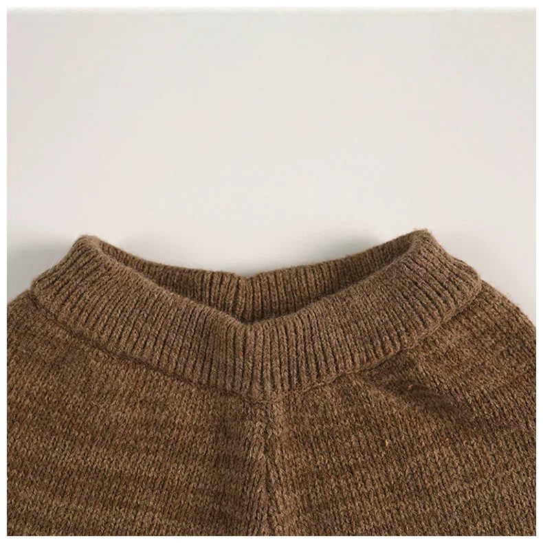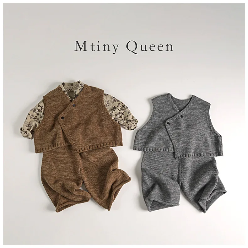 アシンメトリーデザインのニットベストとニットワイドパンツのセットアップです。柔らかな素材で作られており、肌触りが良く、子どもたちにとって快適な着心地を提供します。ベストはVネックデザインで、シンプルながらもファッション性が高く、カジュアルにも少しドレッシーにも着こなせます。パンツはゆったりとしたシルエットで、動きやすさとリラックス感を兼ね備えています。秋冬のコーディネートにぴったりなアイテムです。