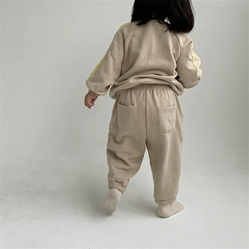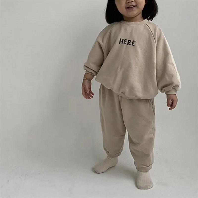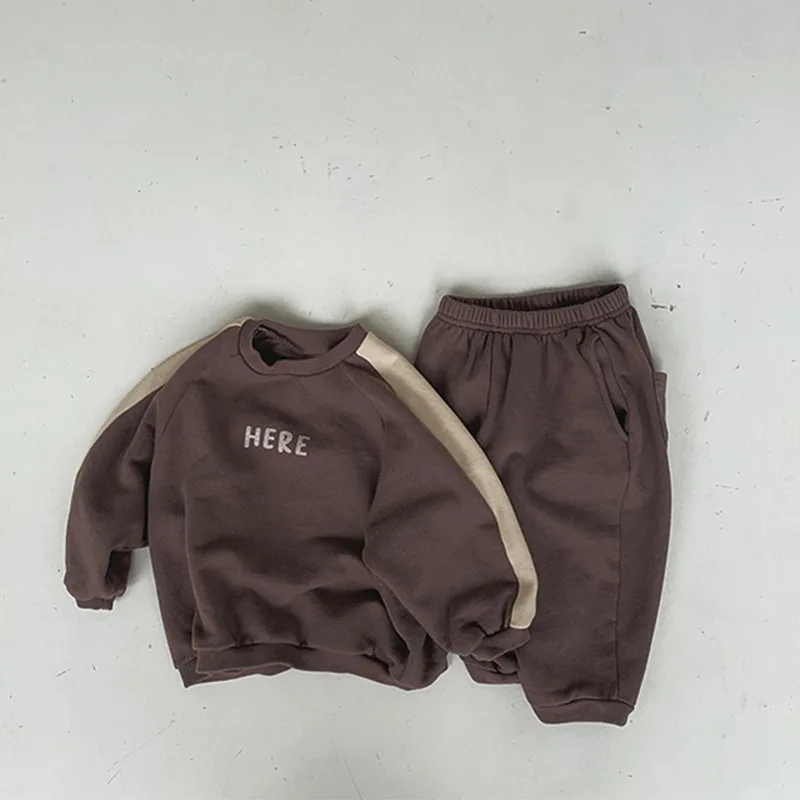 キッズセットアップ 2点セット レターロゴプリント長袖スウェットトレーナー+スウェットロングパンツ【mh0008355】